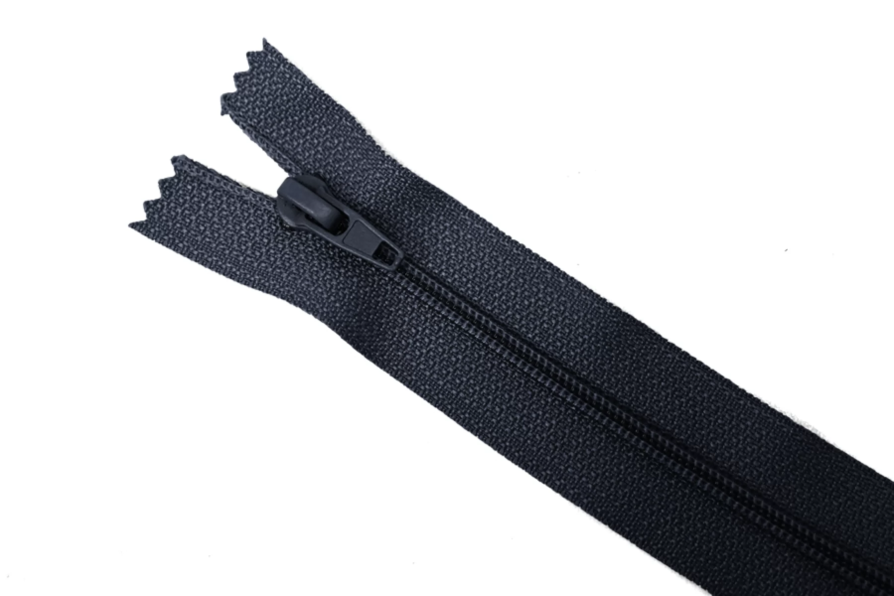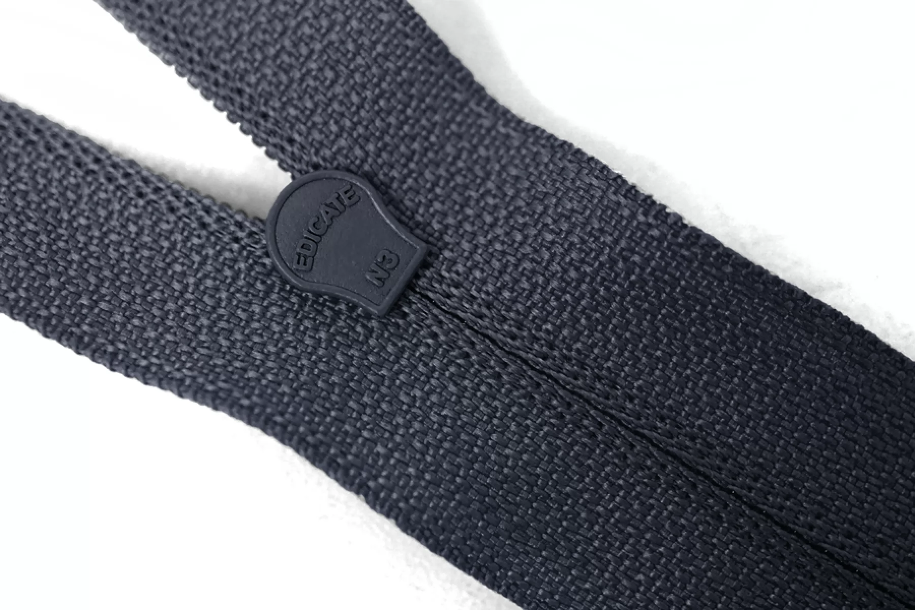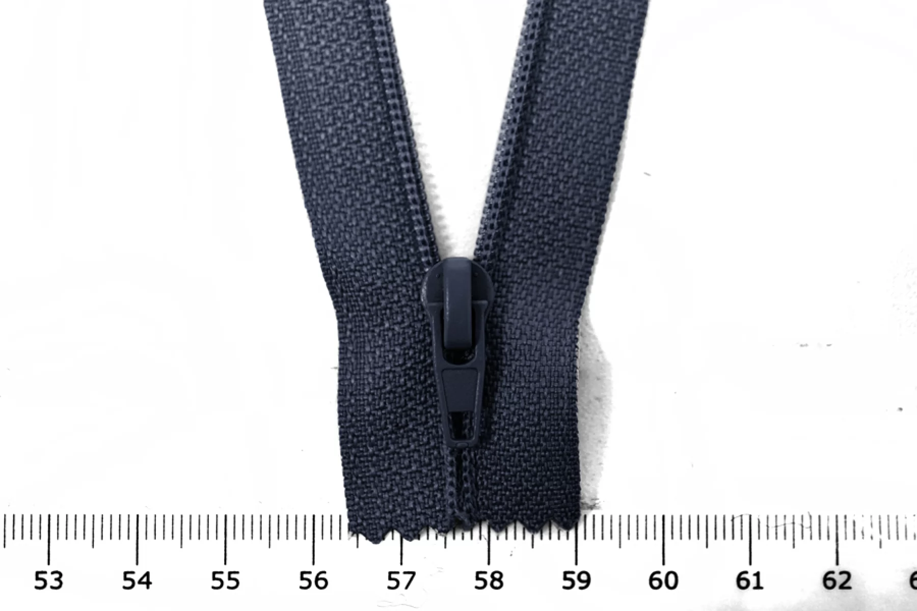 Молния от EDICATE неразъемная, темно-синего цвета, Зубцы пластиковые, пуллер и слайдер -металлический. Длина 15 см. Ширина 2,5 м. Ширина зубцов 4 мм.