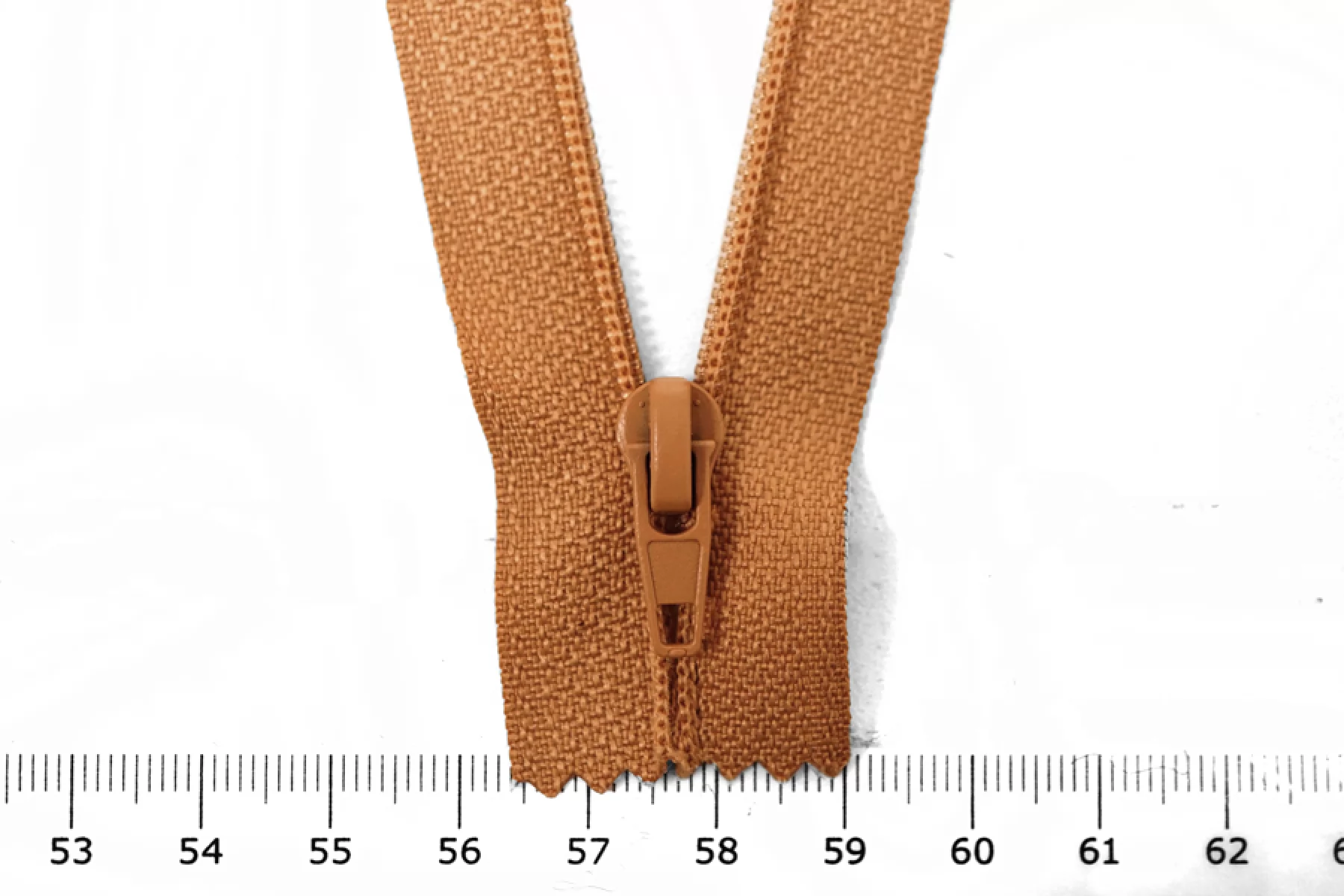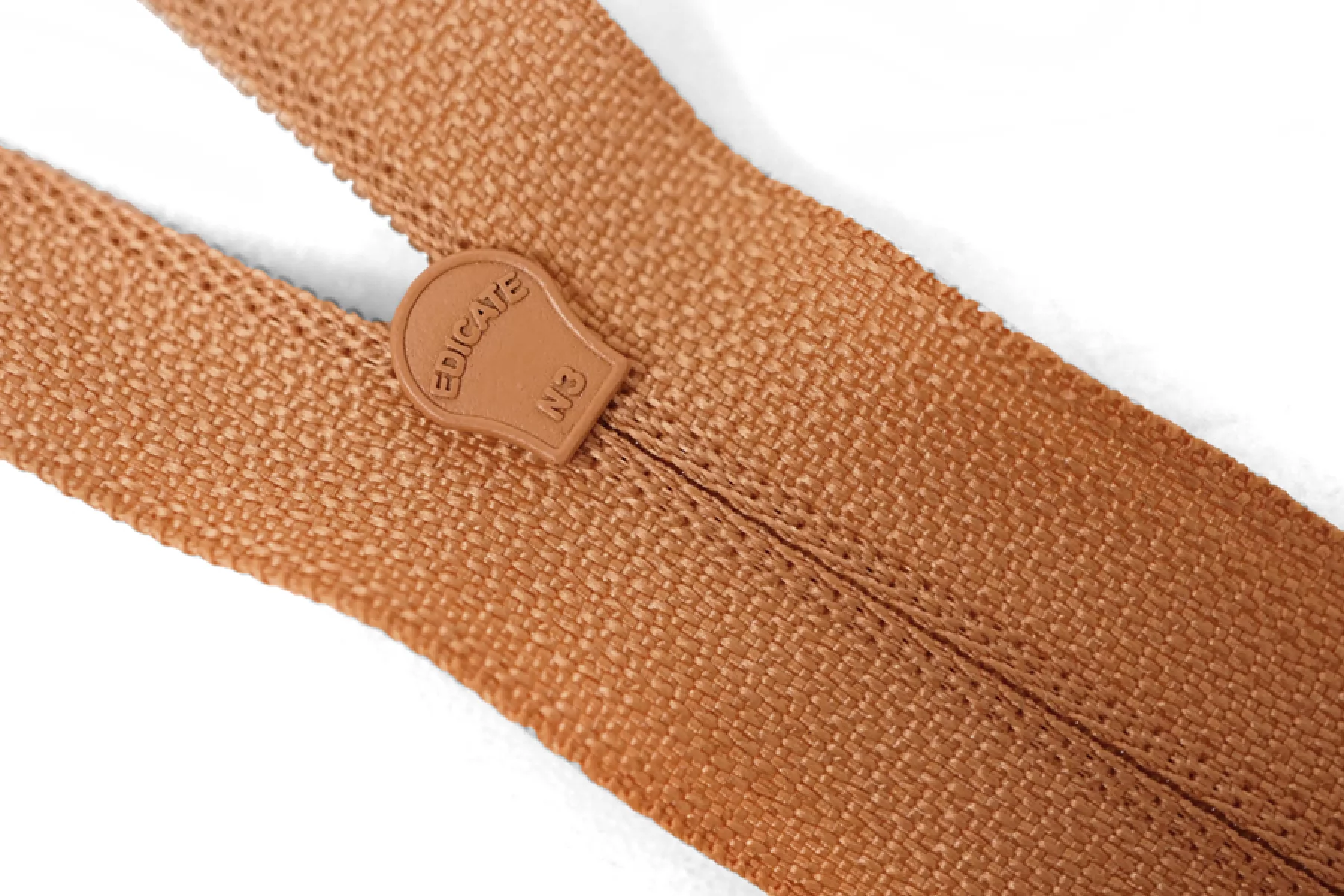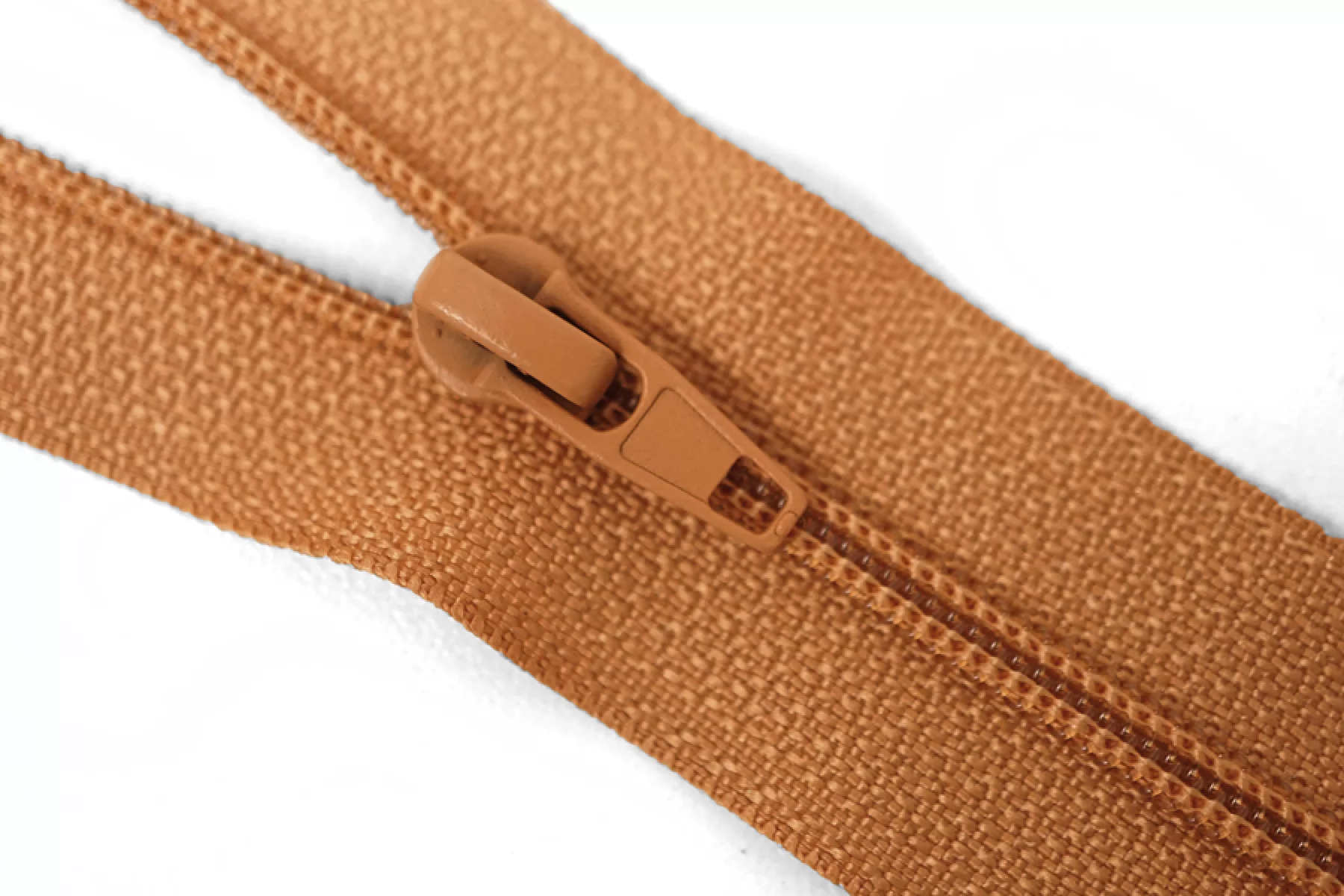 Молния от EDICATE неразъемная, терракотового оттенка. Зубцы пластиковые, пуллер и слайдер -металлический. Длина 16 см. Ширина 2,5 м. Ширина зубцов 4 мм.