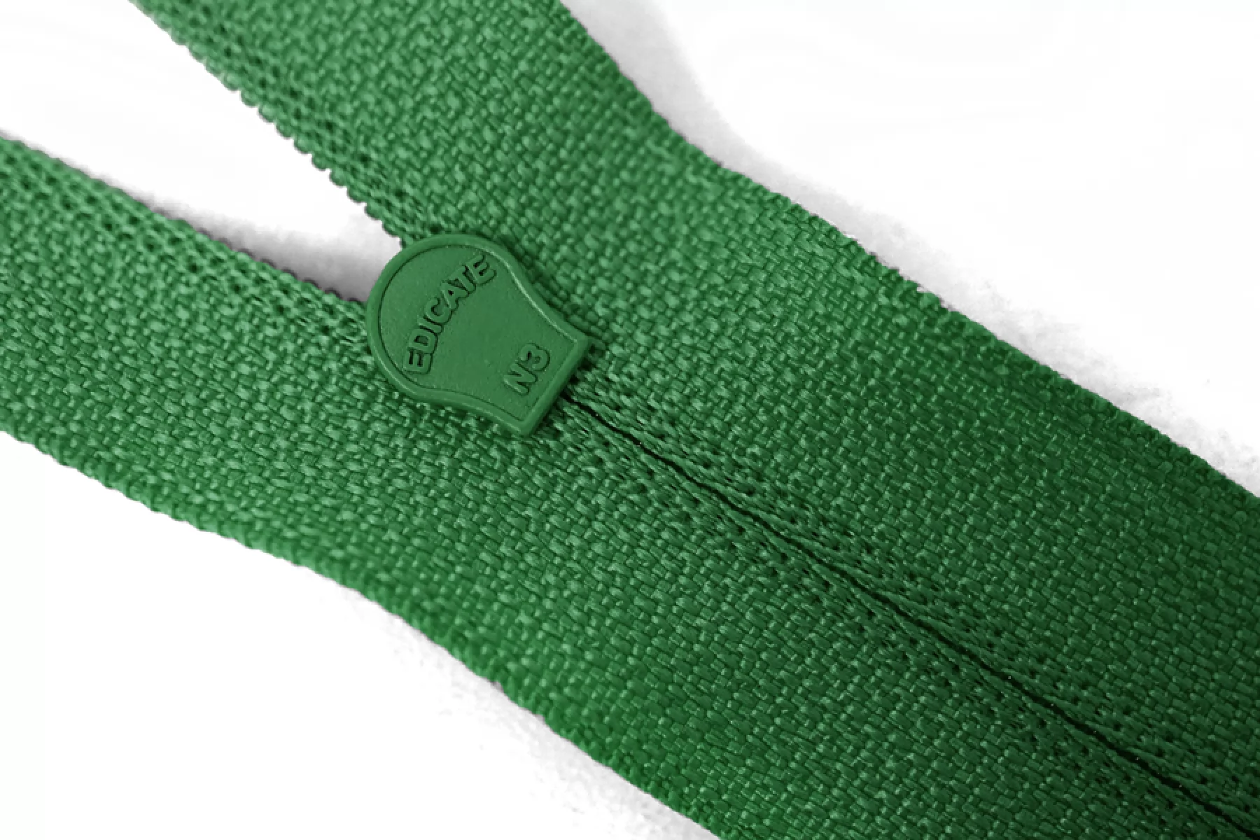 Молния от EDICATE неразъемная, зеленого цвета. Зубцы пластиковые, пуллер и слайдер -металлический. Длина 16 см. Ширина 2,5 м. Ширина зубцов 4 мм.