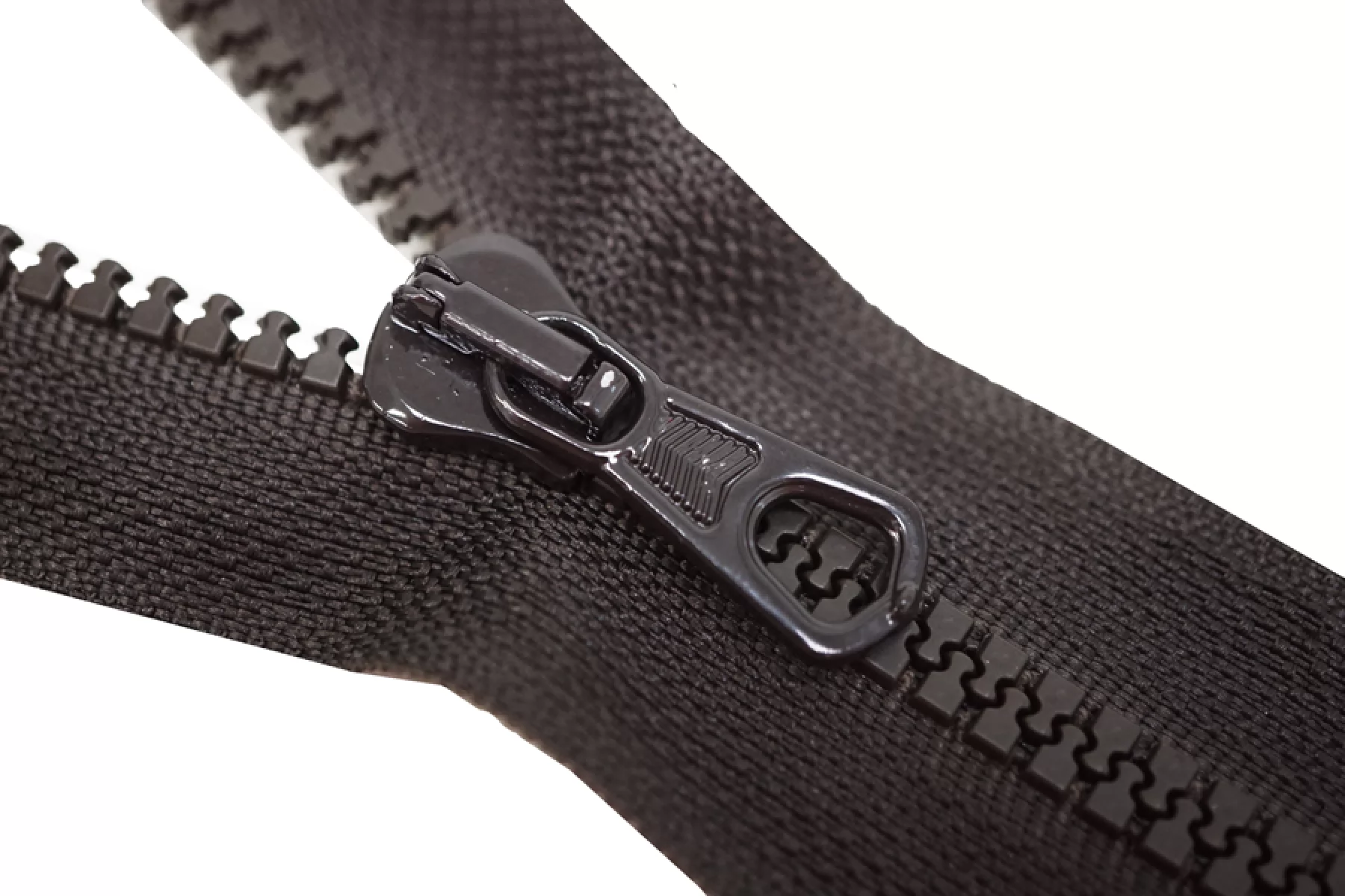 Молния от Итальянского производителя "Lampo" неразъемная, однозамковая, пластиковая, коричнево-черного цвета, цвет зубцов коричневый, цвет пуллера и слайдера также коричневые. Длина 19,5 см. Ширина молнии 3,5 см, ширина зубцов 6 мм.