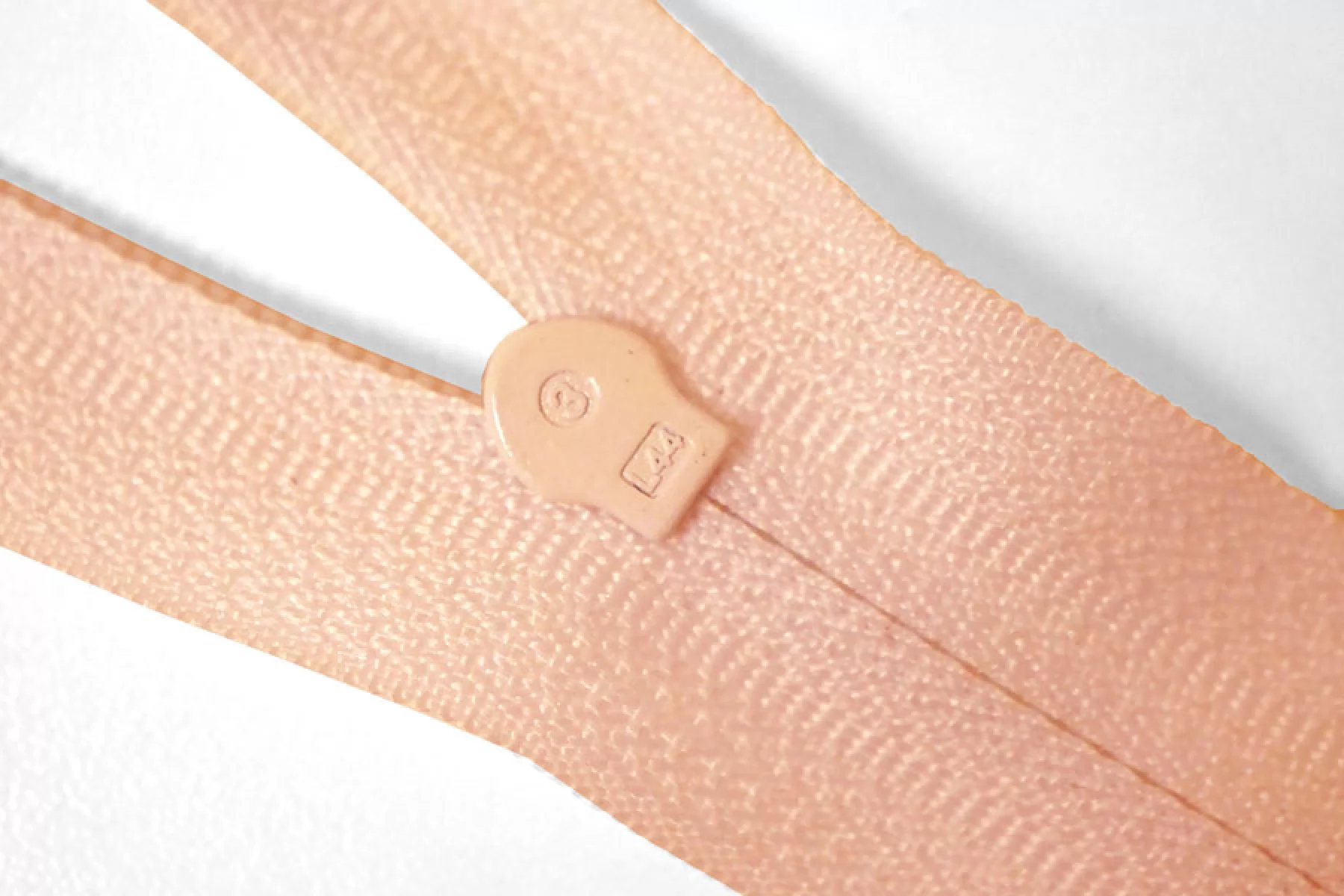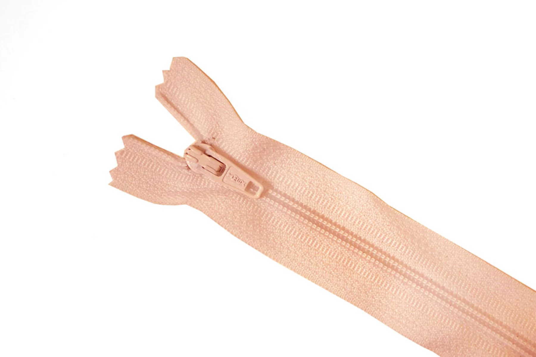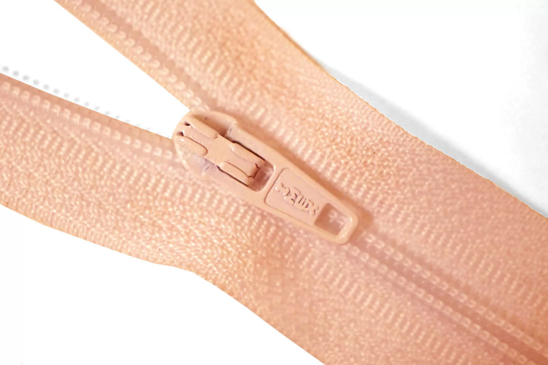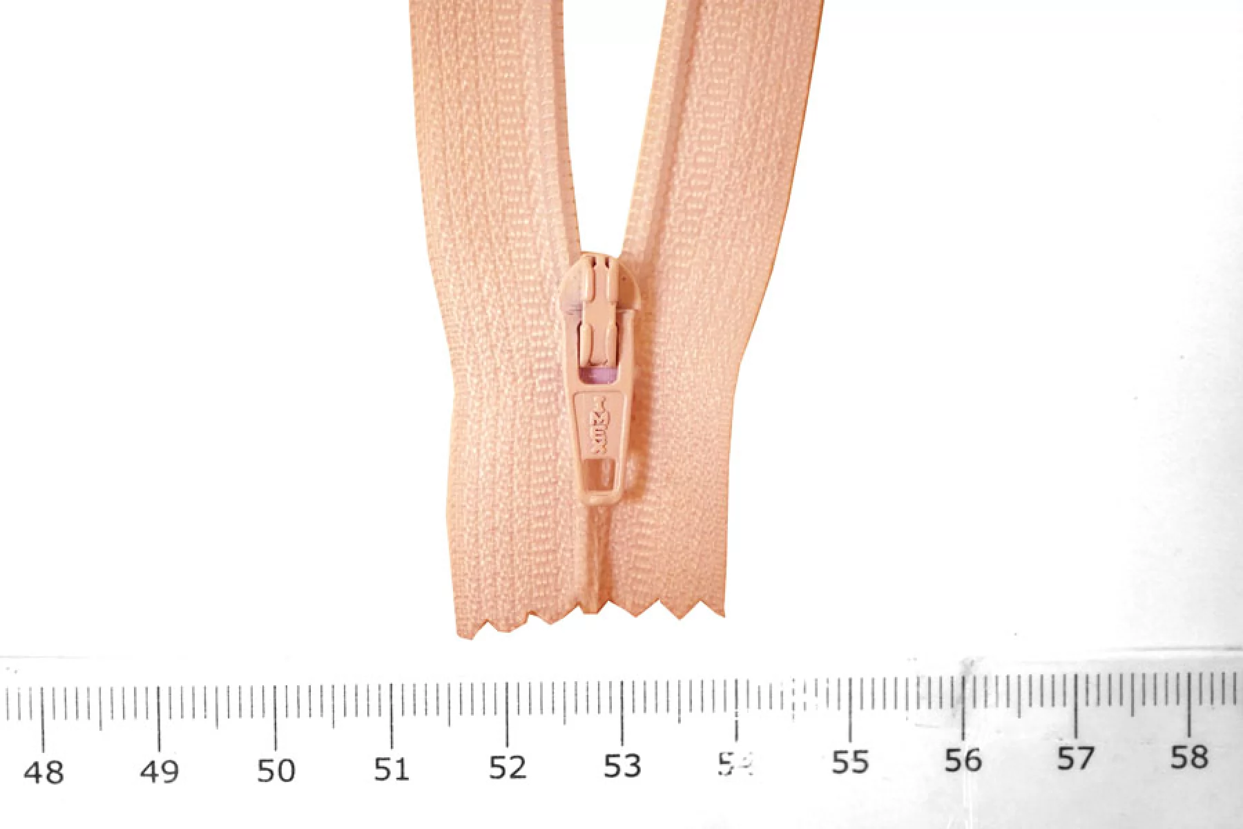 Молния неразъемная,светло- оранжевого цвета. Зубцы пластиковые, пуллер и слайдер -металлический. Длина 20 см. Ширина 2,5 м. Ширина зубцов 4 мм.