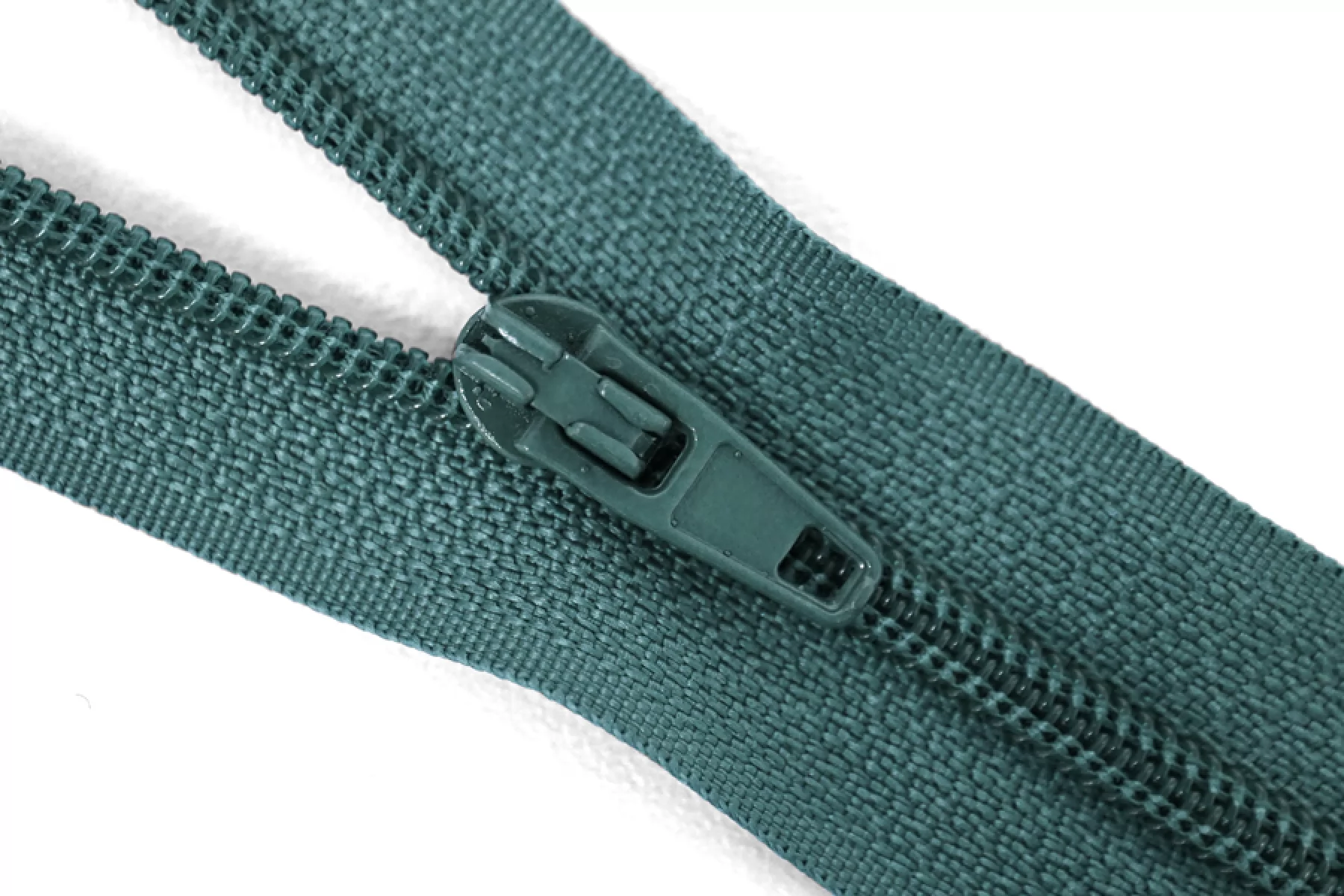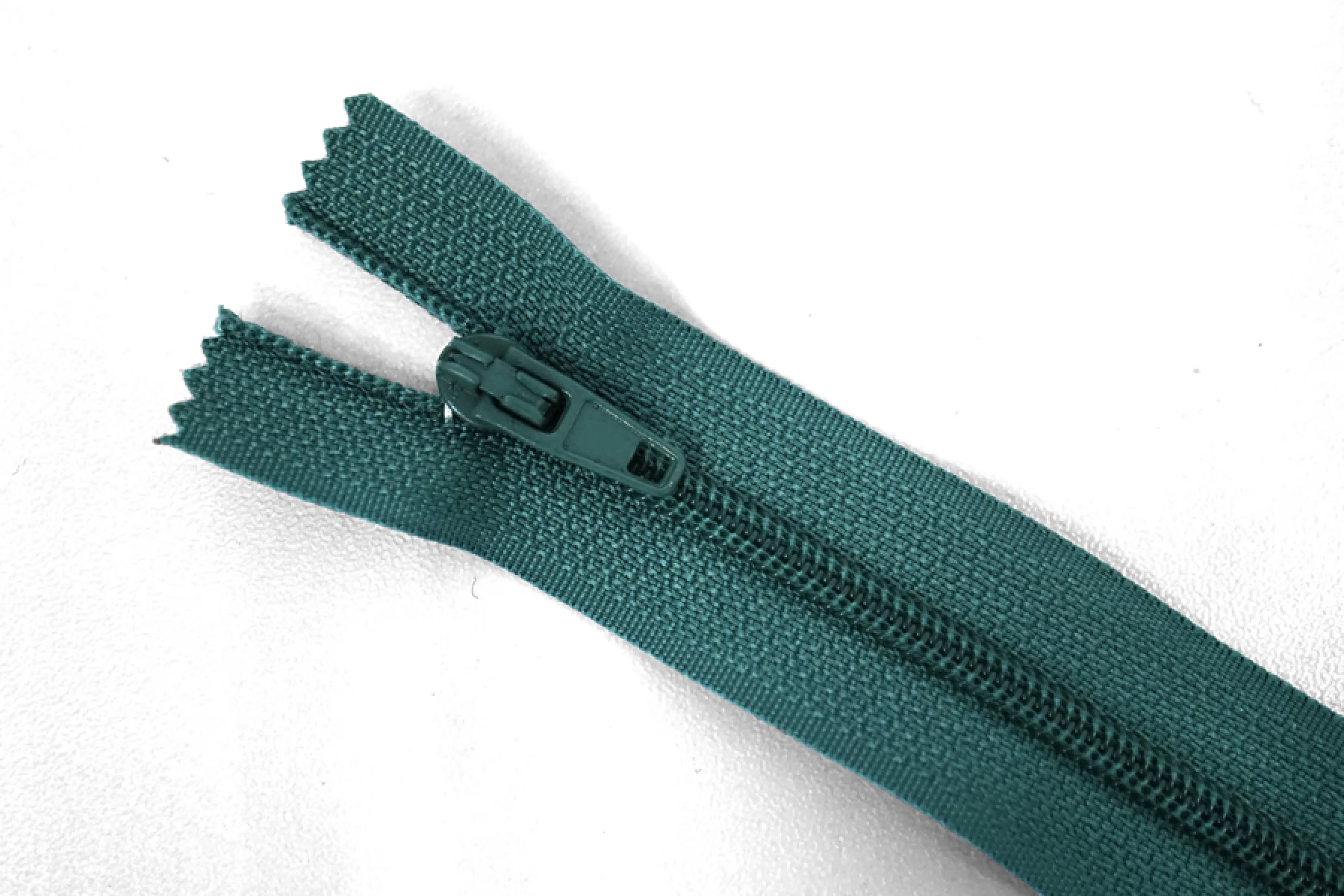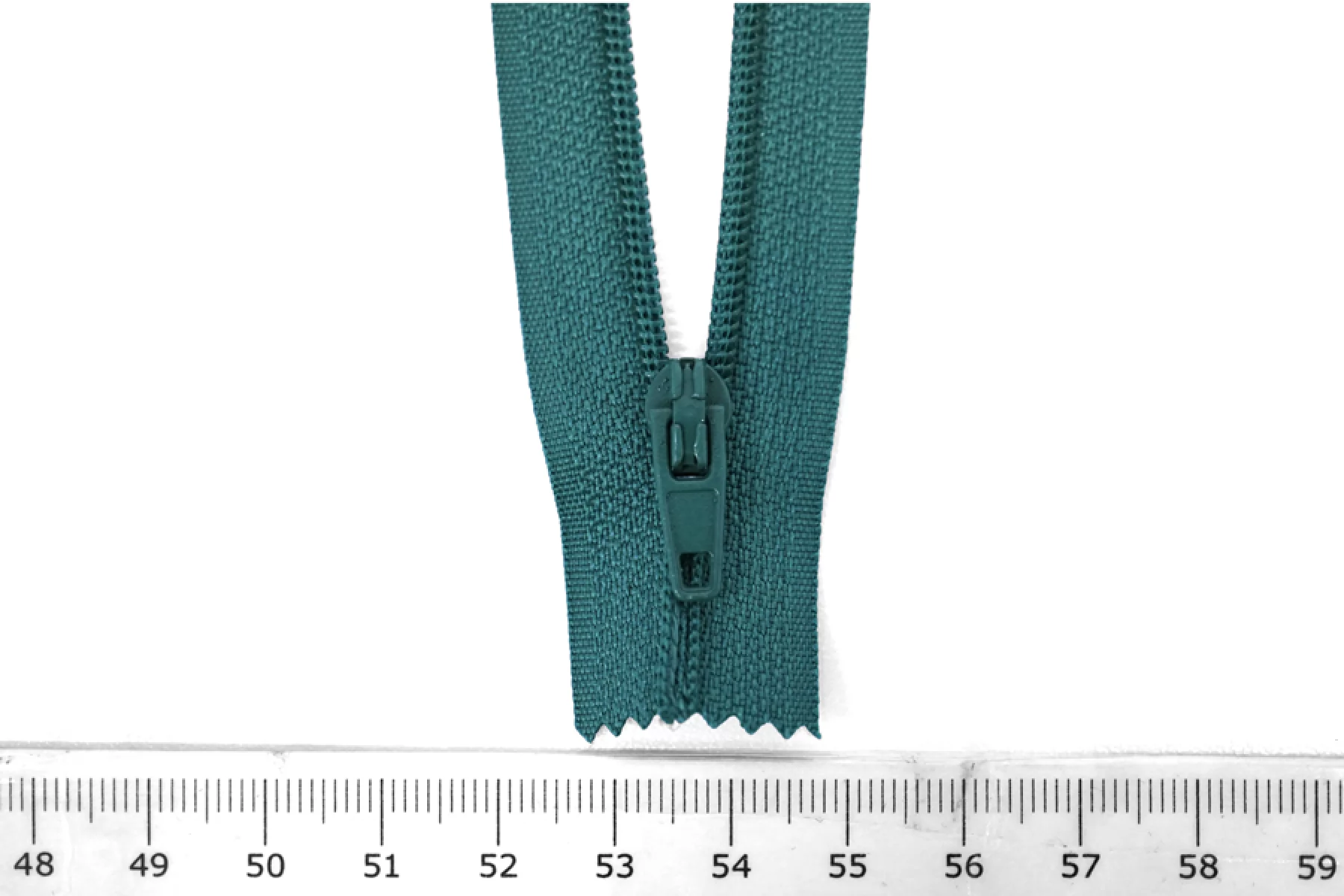 Молния неразъемная, оттенка петроль. Зубцы пластиковые, пуллер и слайдер -металлический. Длина 16 см. Ширина 2,5 м. Ширина зубцов 4 мм.