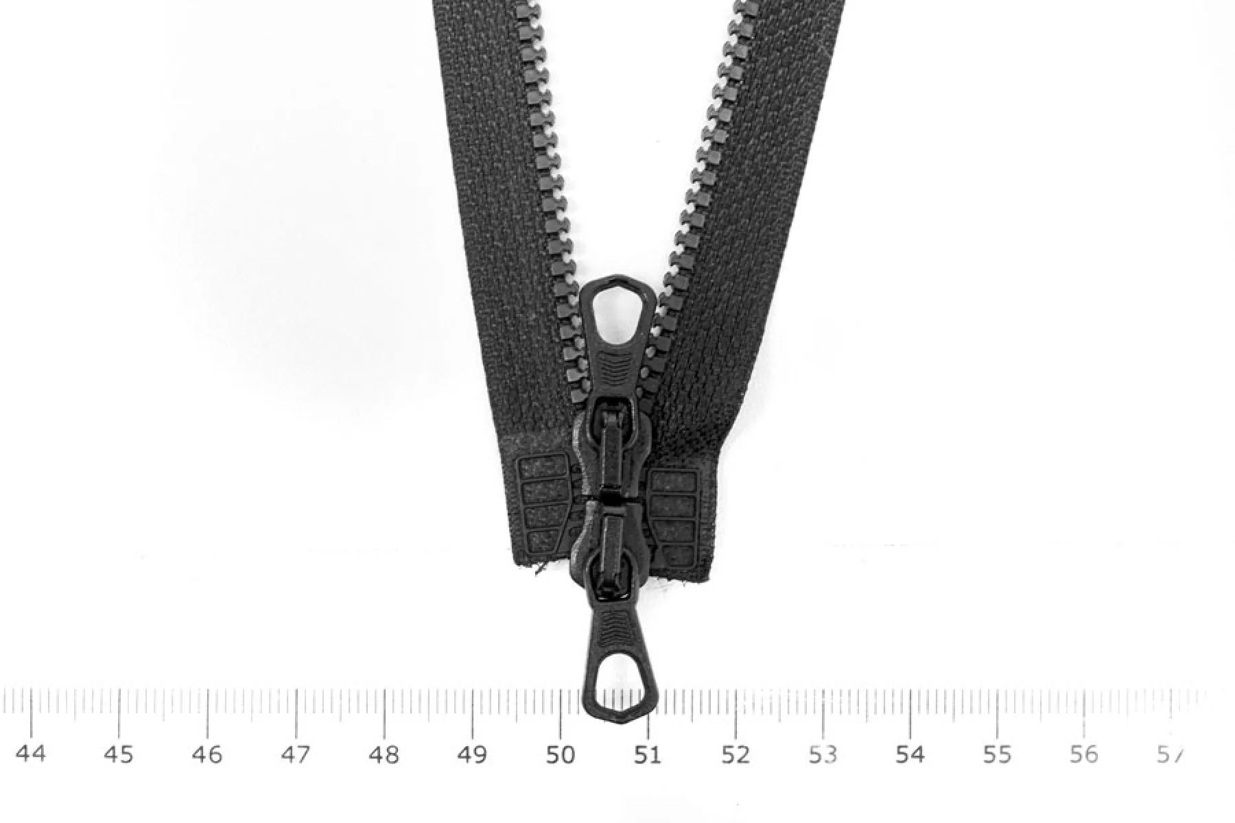 Молния от Итальянского производителя "Lampo" разъемная, двухзамковая, пластиковые зубцы и металлический пуллер и слайдер. Длина 40 см. Ширина молнии 2,3 см, ширина зубцов 4 мм.