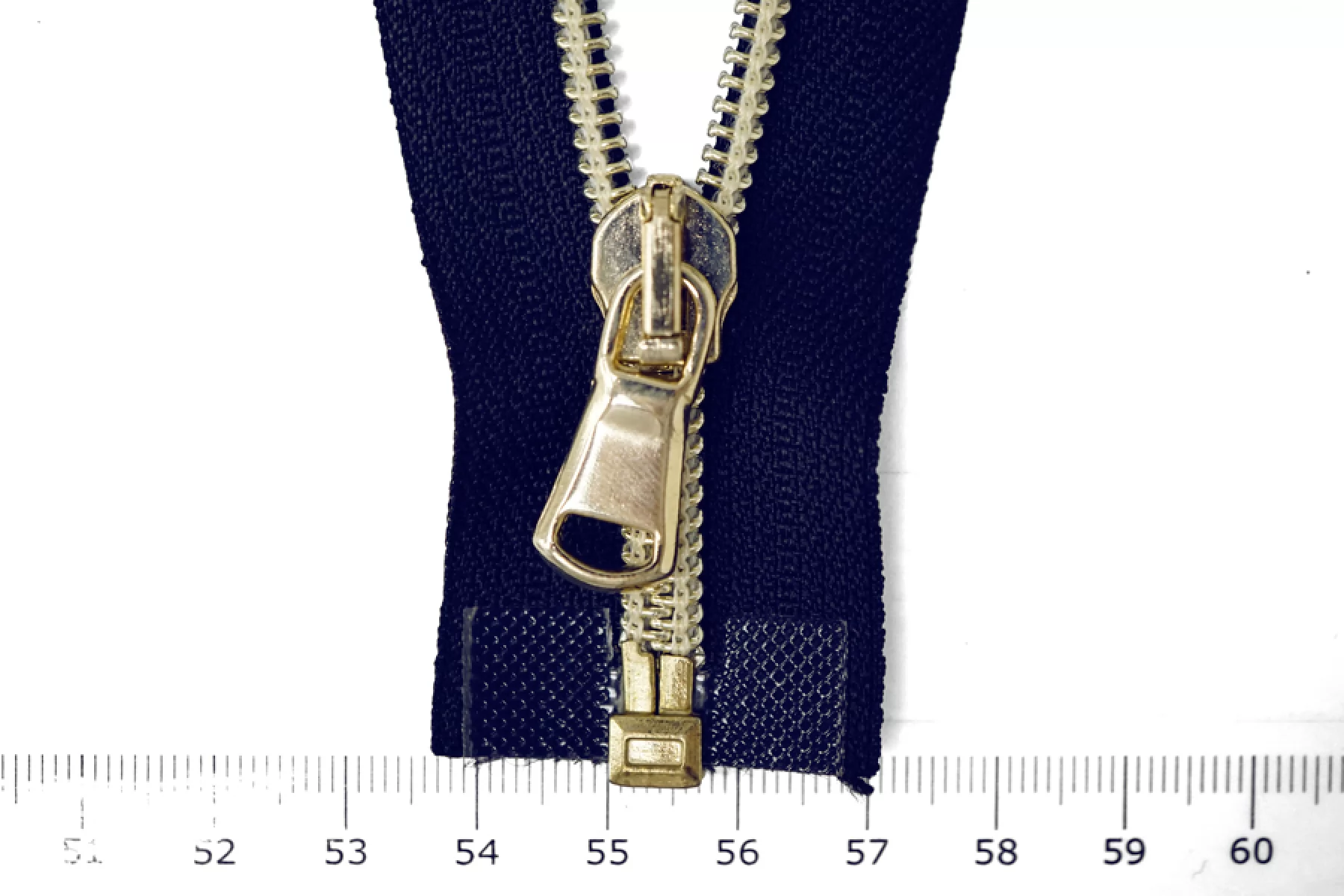 Молния пластиковая, спиральная, разъемная, один замок. Цвет молнии синий, цвет зубцов, пуллера и слайдера золото. Длина 49см. Ширина молнии 3,1см, ширина зубцов 6мм.