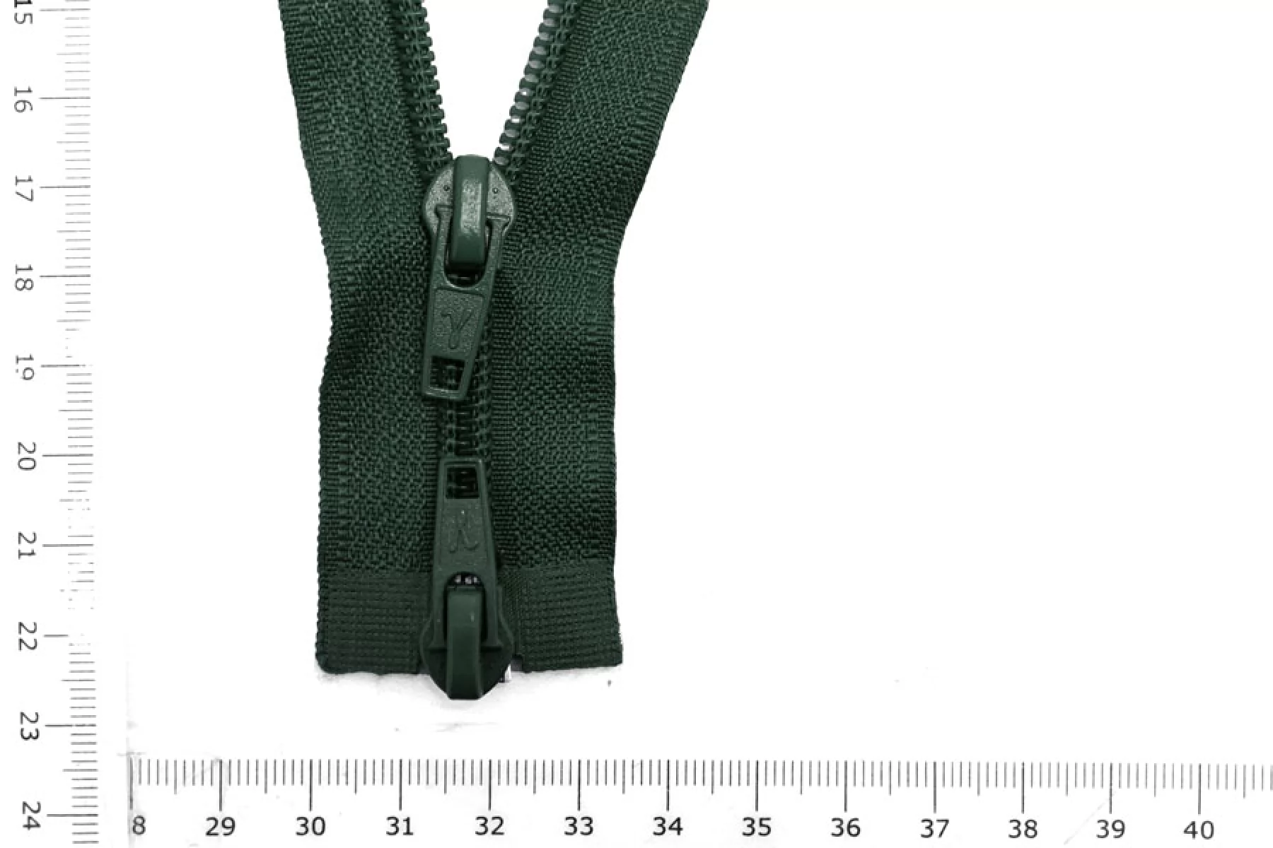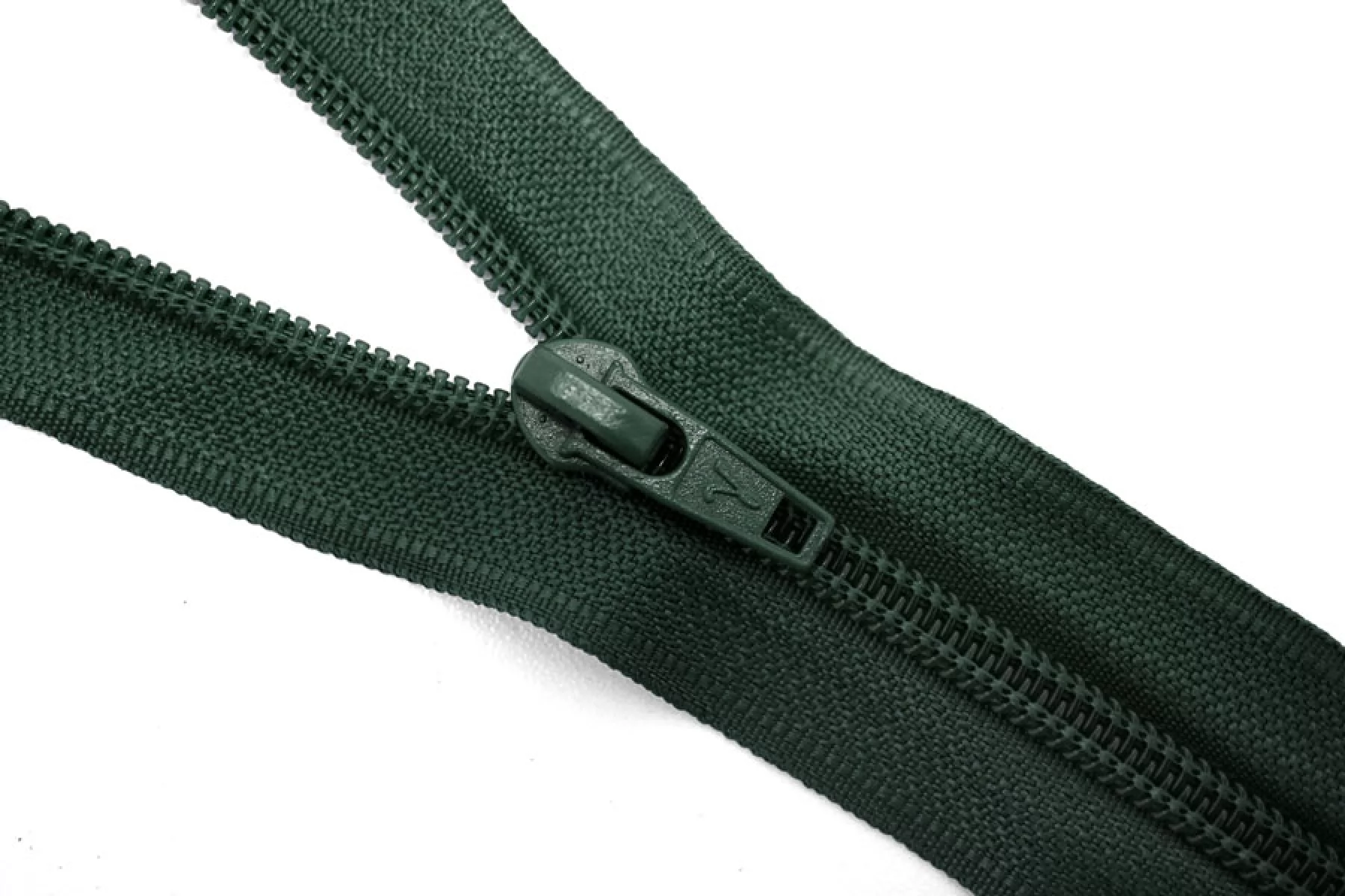 Молния пластиковая спиральная разъемная, двухзамковая, темно-зелёного цвета, цвет зубцов - темно-зеленые , слайдер и пулер- в цвет молнии, металлический. Ширина молнии - 3 см, ширина зубцов 5 мм. Длина молнии 120 см.