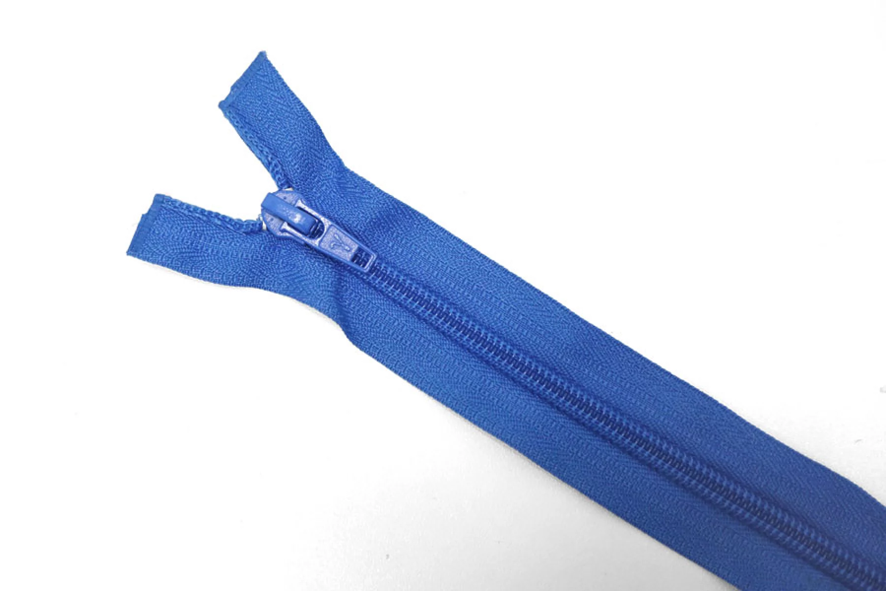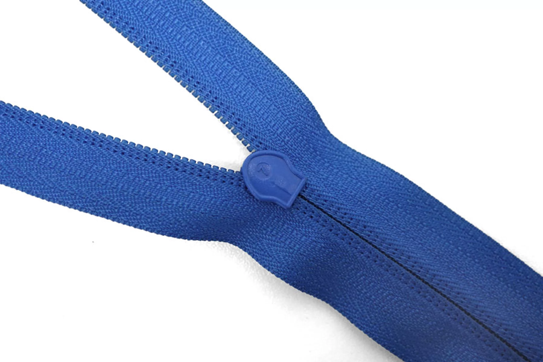 Молния пластиковая спиральная разъемная, двухзамковая , яркоо-синего цвета, цвет зубцов - ярко-синий , слайдер и пулер- в цвет молнии, металлический. Ширина молнии - 3 см, ширина зубцов 5 мм. Длина молнии 120 см.