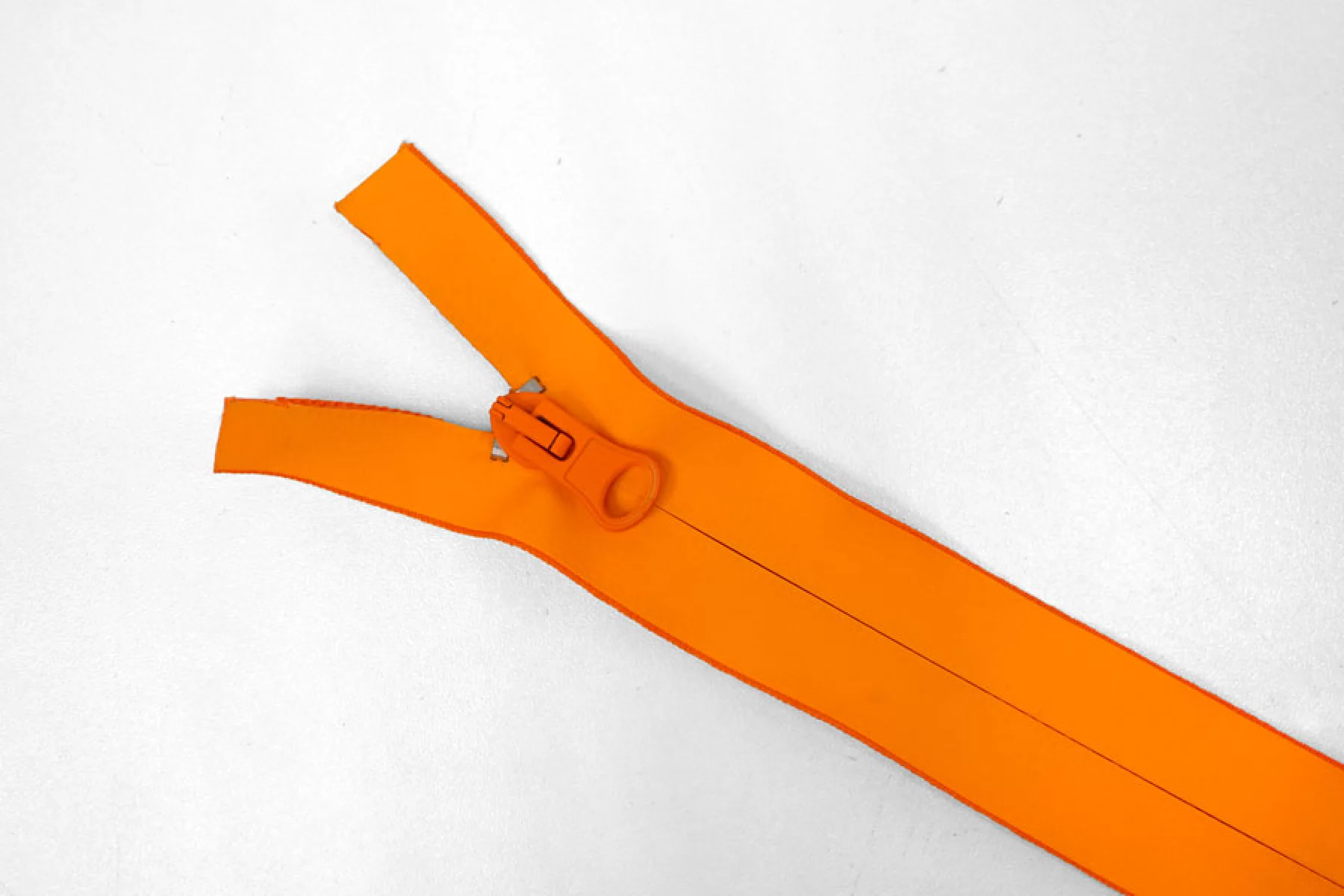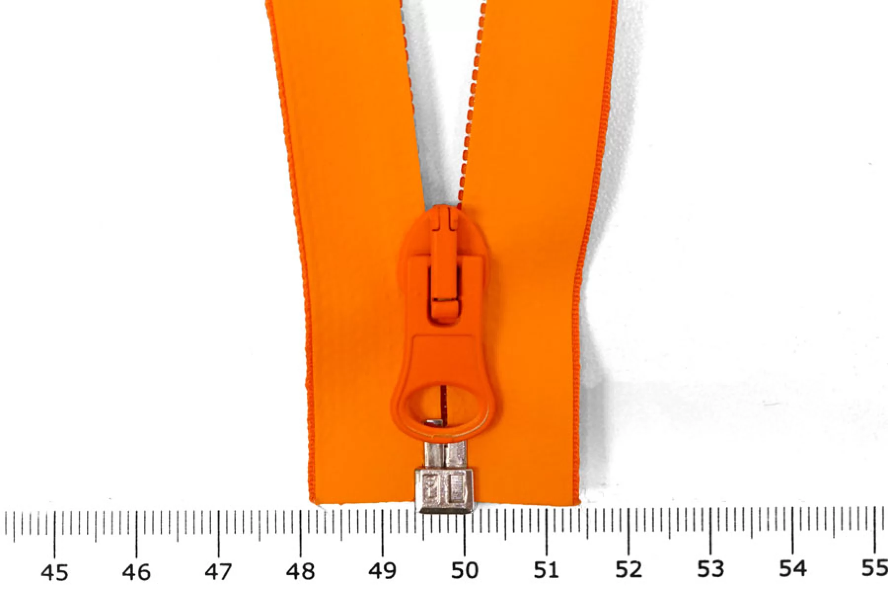 Молния пластиковая ,разъёмная, одназамковая ярко оранжевого цвета прорезиненная. Длина 78 см.Зубцы пластиковые 5мм.слайдер и пулер металл оранжевогоцвета. ширина молнии 3,2см.