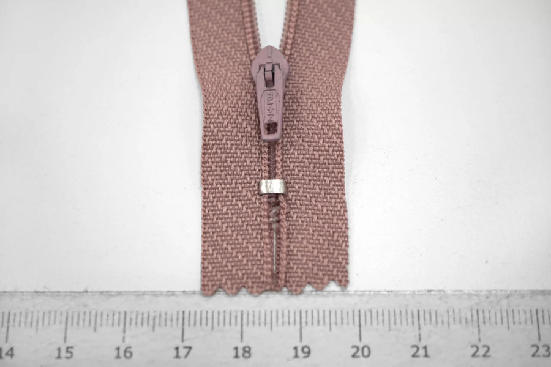 Молния спиральная пластиковая от "BLITZ" неразъёмная, однозамковая, пыльно-розового цвета. Длина 18 см.