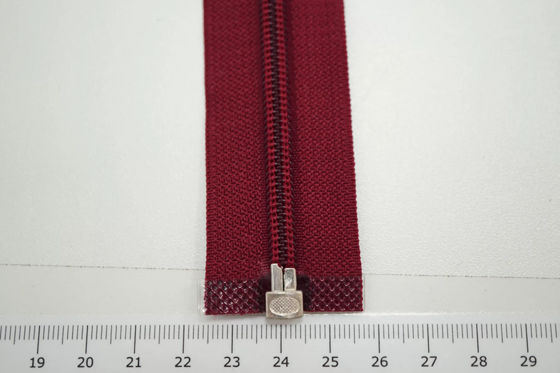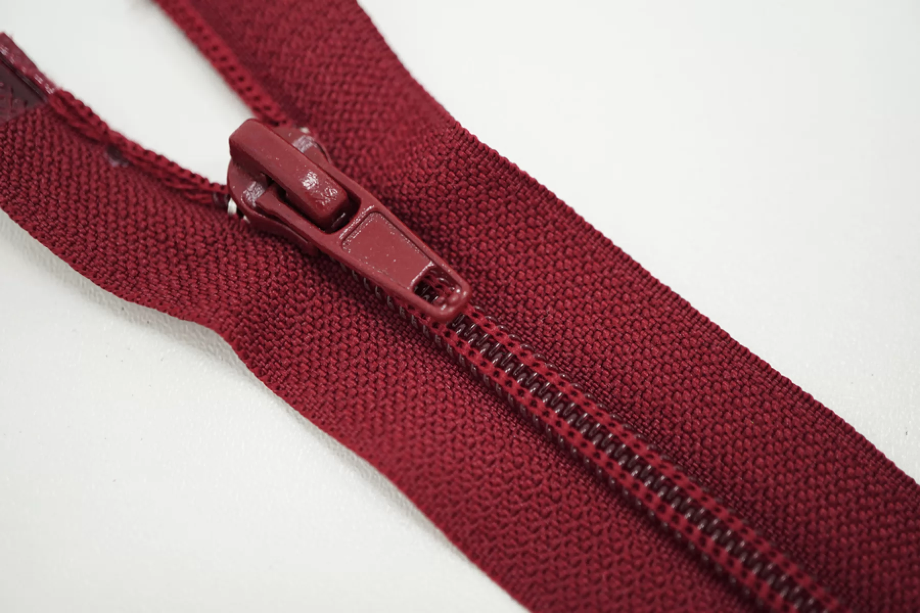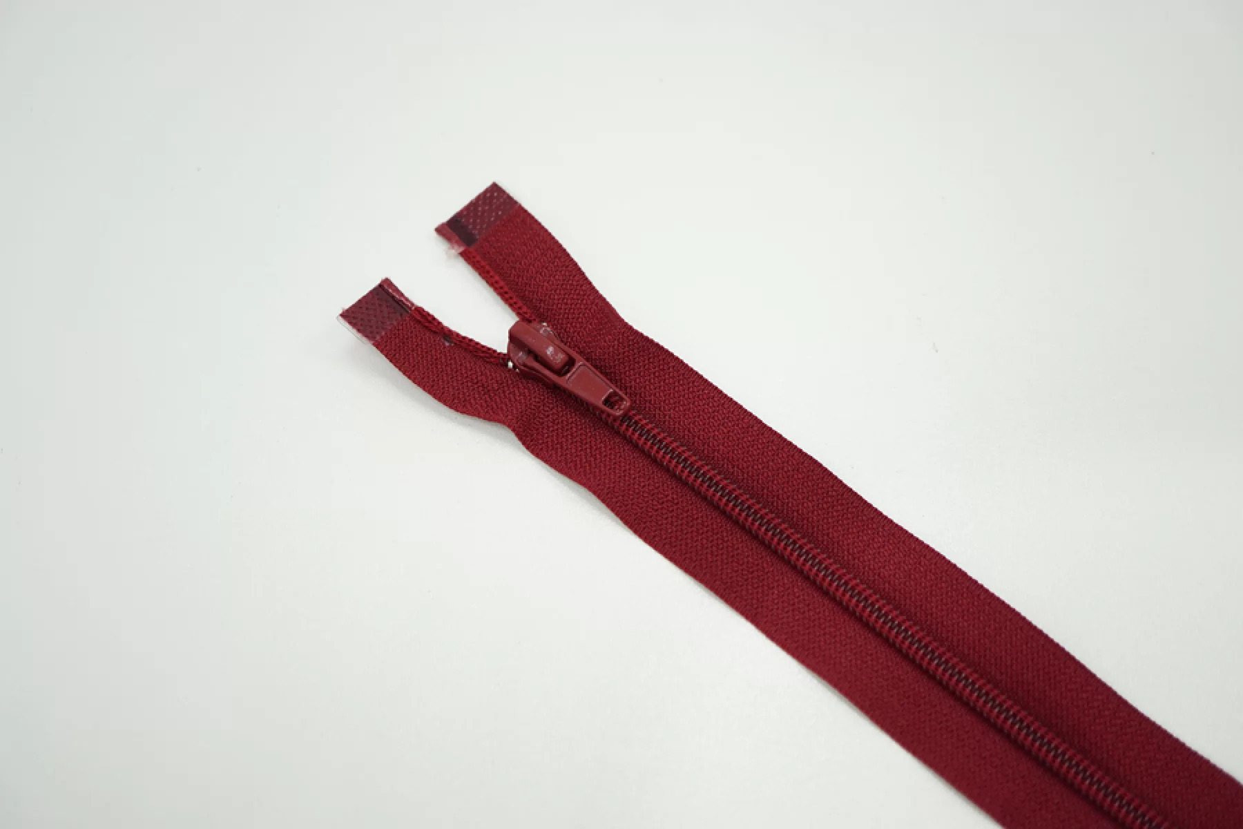 Молния спиральная однозамковая, разъёмная, вишневого цвета. Длина 44 см.