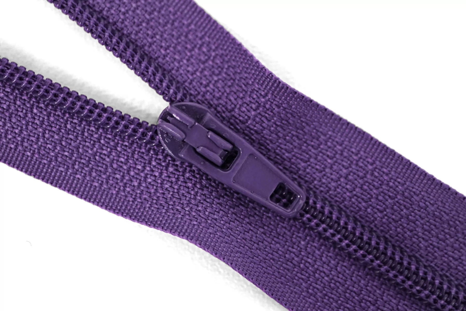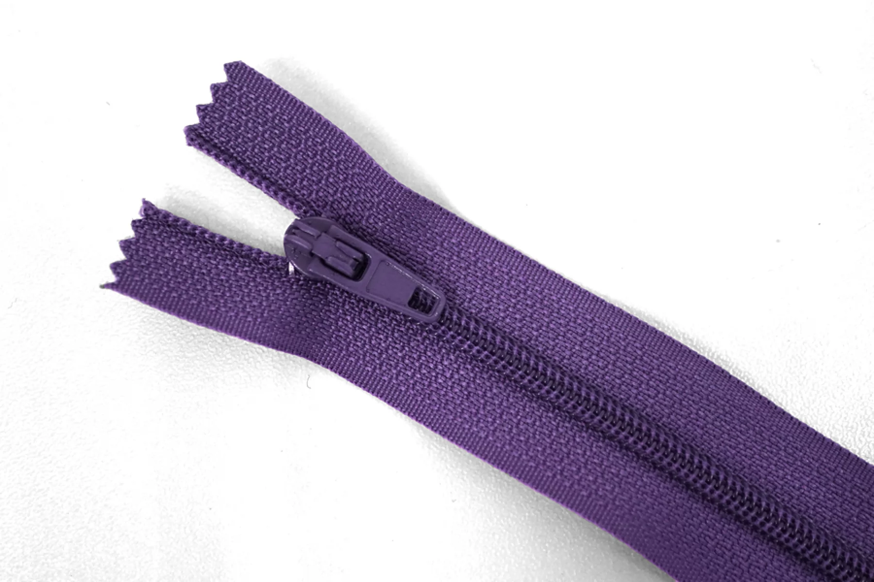 Молния неразъемная, темно-фиолетового цвета. Зубцы пластиковые, пуллер и слайдер -металлический. Длина 20 см. Ширина 2,5 м. Ширина зубцов 4 мм.
