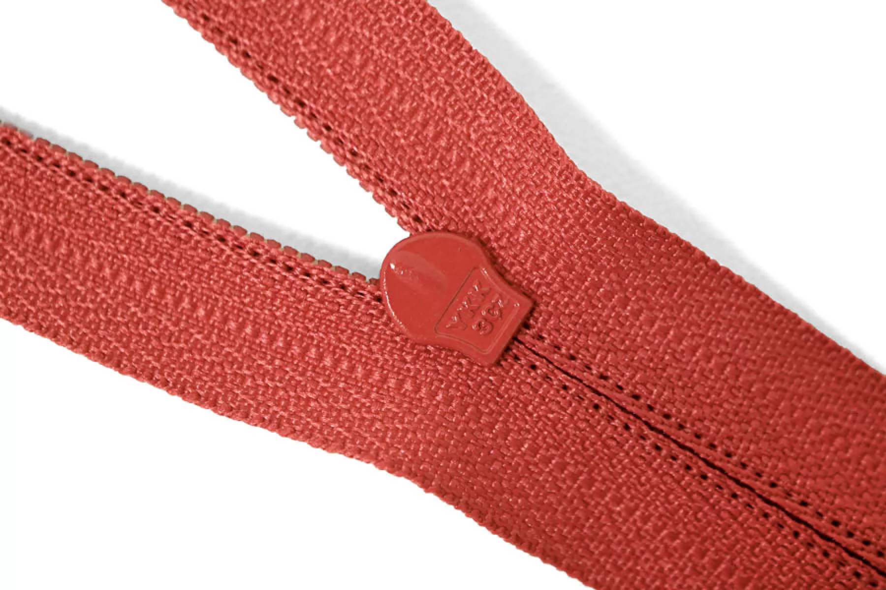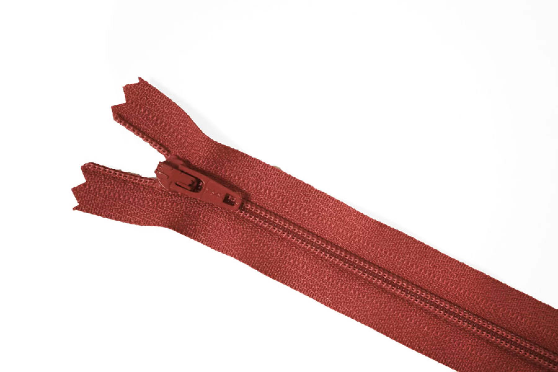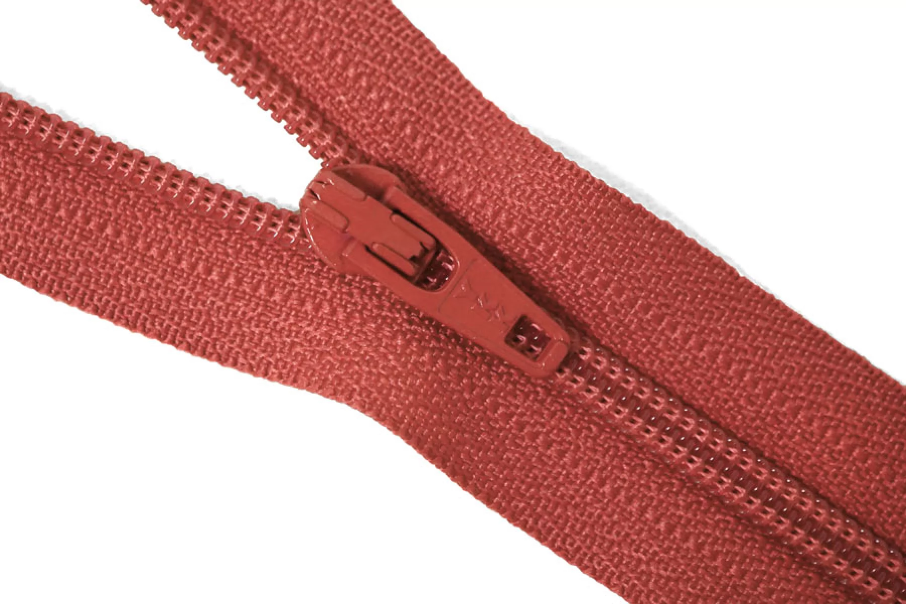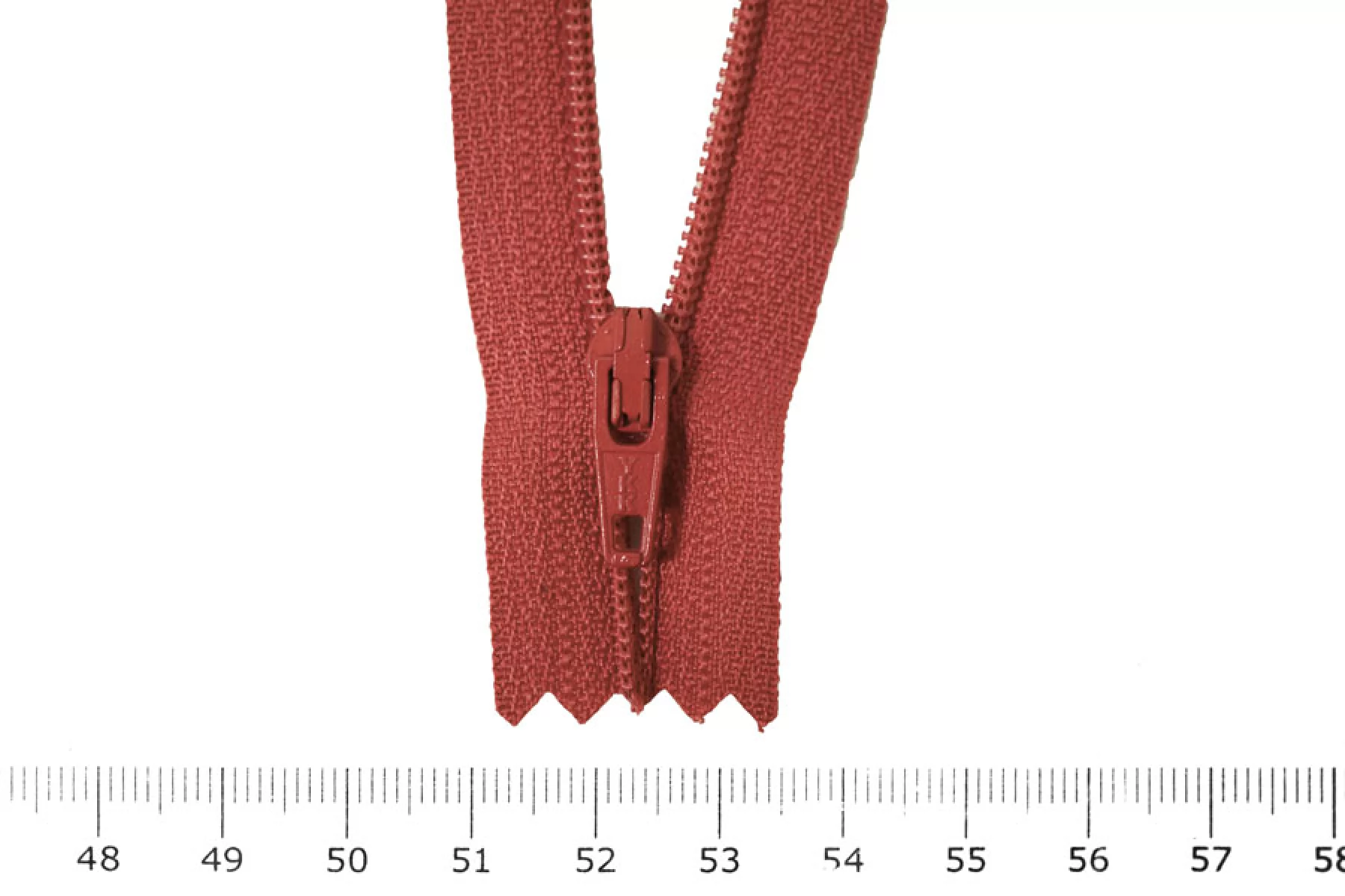 Молния неразъемная,терракотового цвета. Зубцы пластиковые, пуллер и слайдер -металлический. Длина 20 см. Ширина 2,5 м. Ширина зубцов 4 мм.