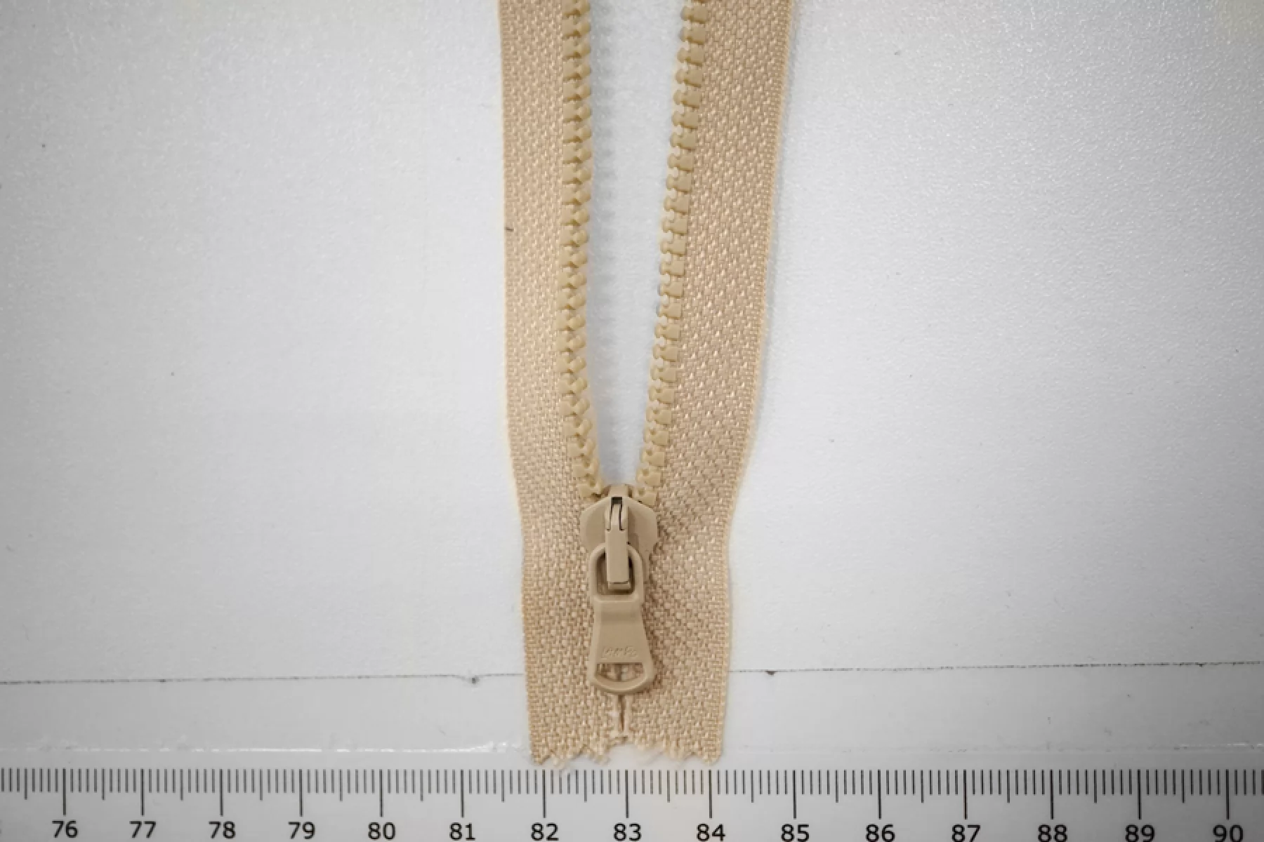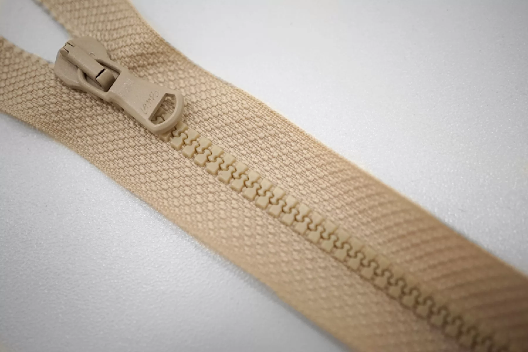 Молния тракторная пластиковая от "Lampo" неразъёмная, однозамковая, светлого бежевого цвета. Длина 65 см.