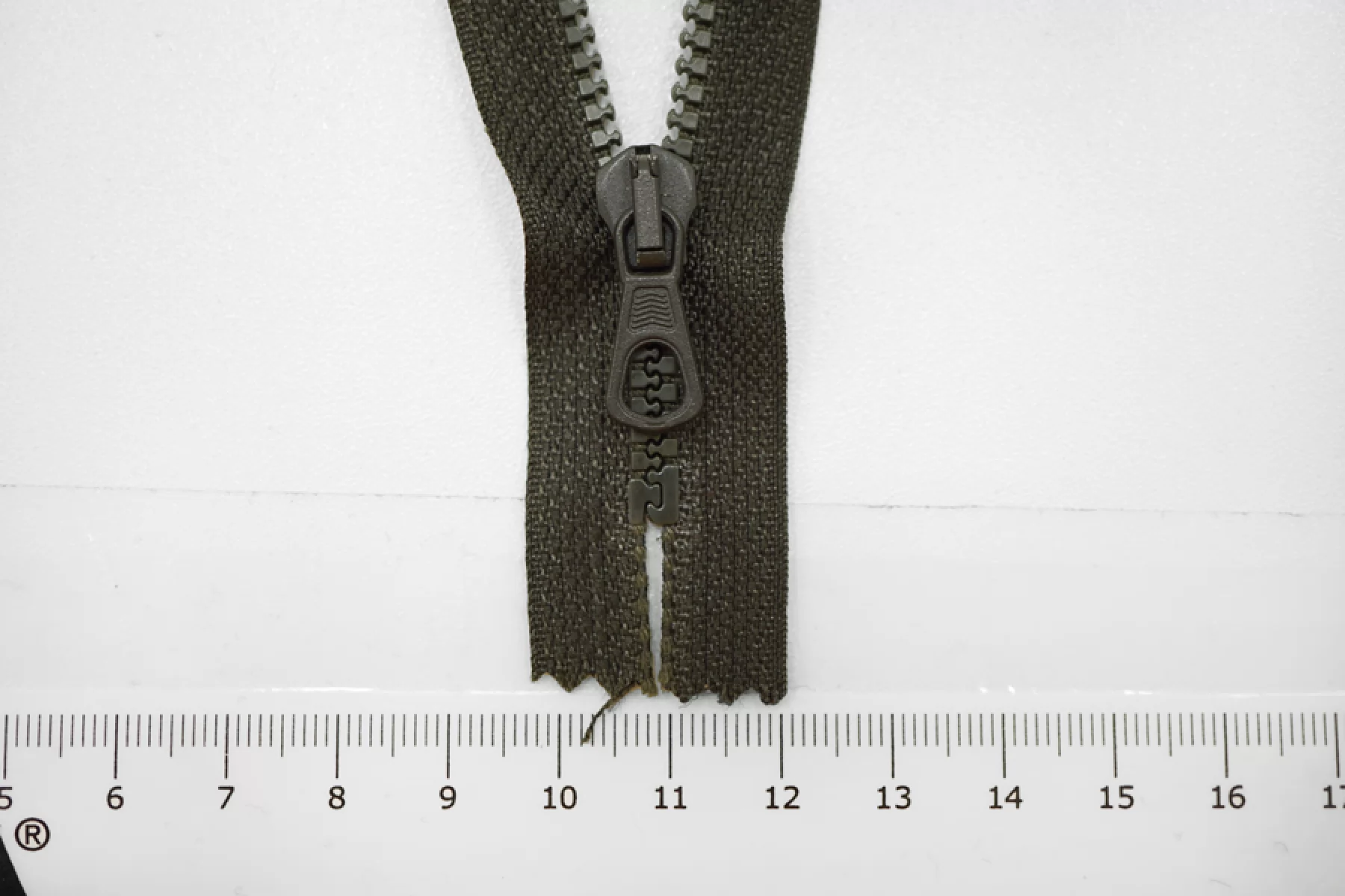 Молния тракторная пластиковая от "Lampo" неразъёмная, однозамковая, черно-зеленого цвета. Длина 24 см.