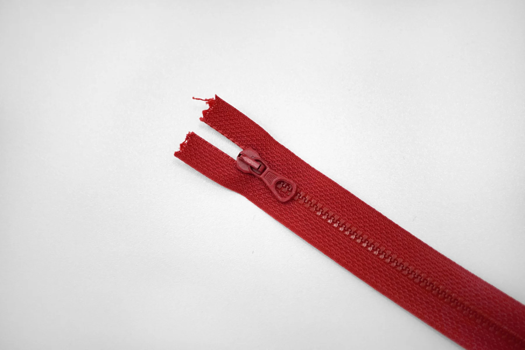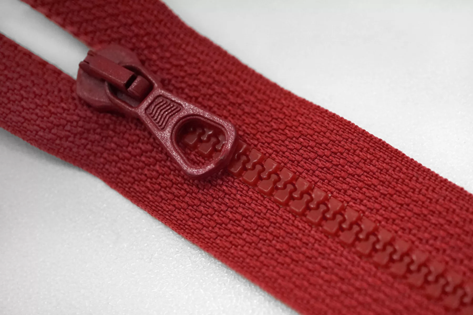 Молния тракторная пластиковая от "Lampo" неразъёмная, однозамковая, красного цвета. Длина 22 см.