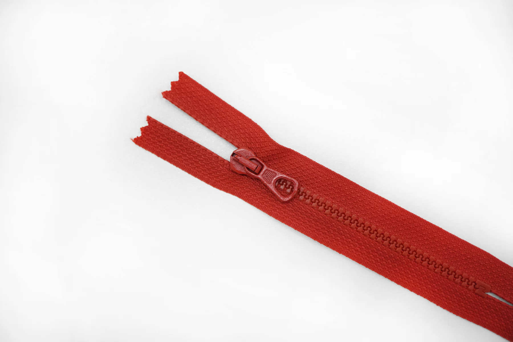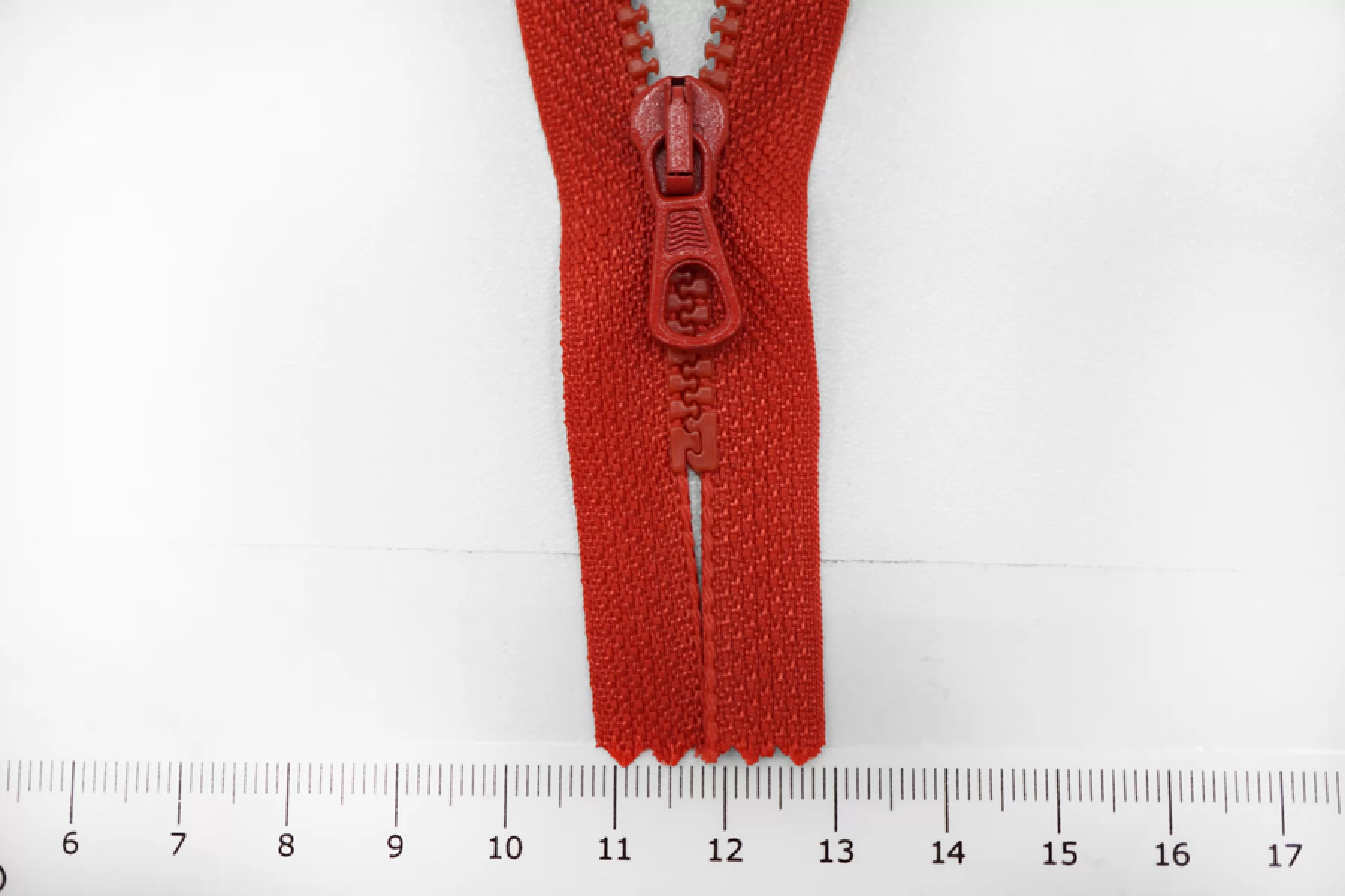 Молния тракторная пластиковая от "Lampo" неразъёмная, однозамковая, красного цвета. Длина 8 см.
