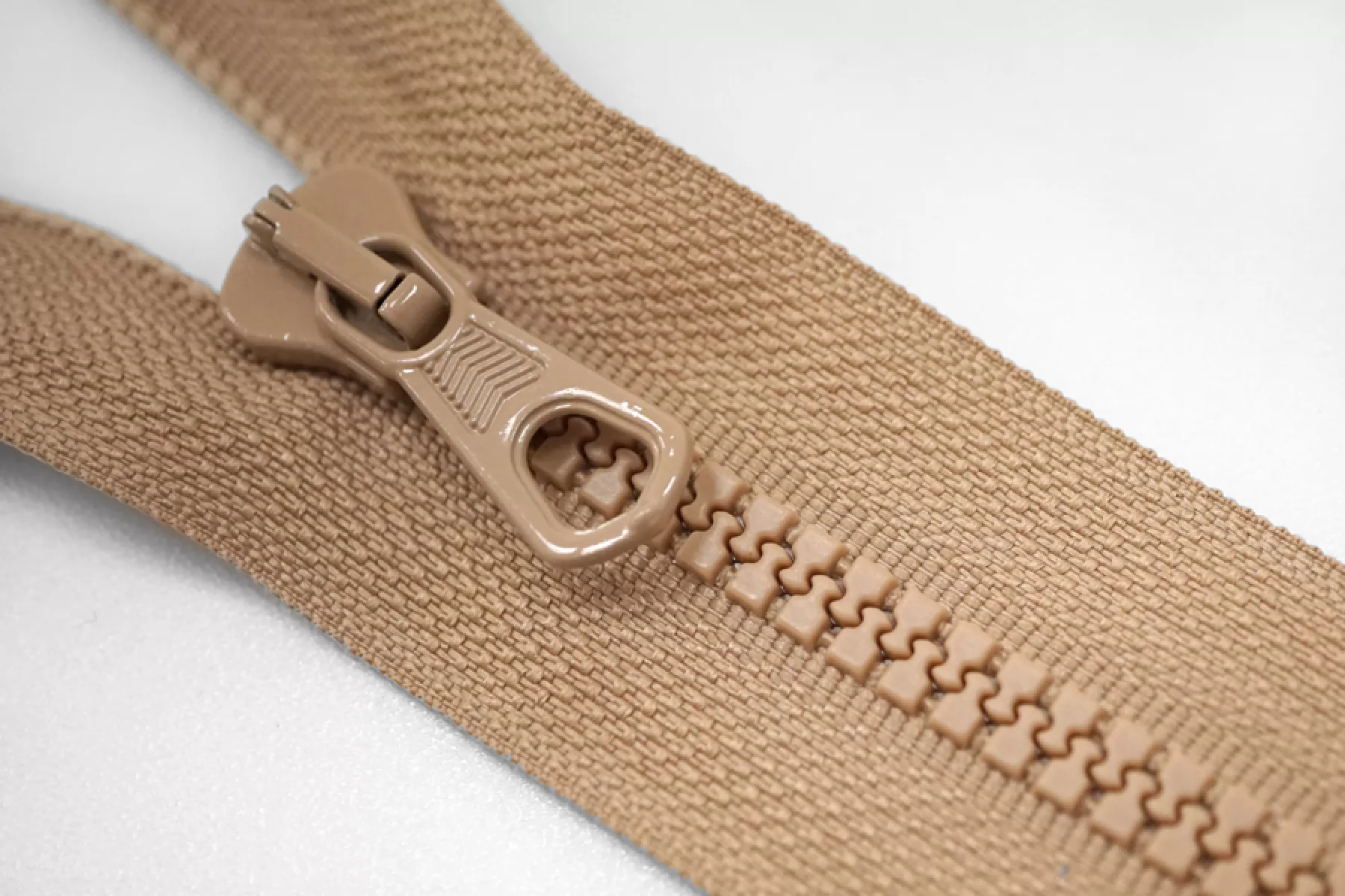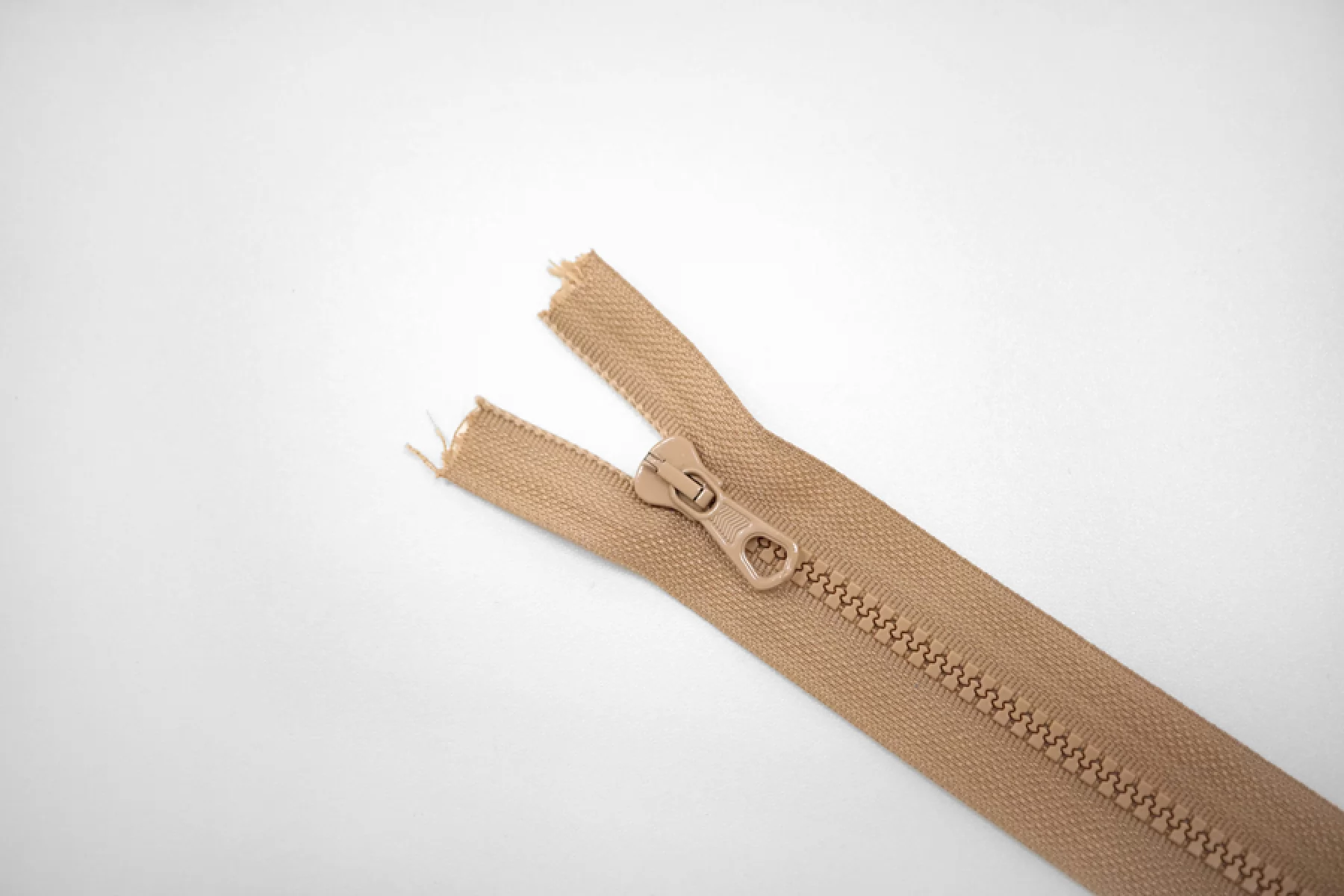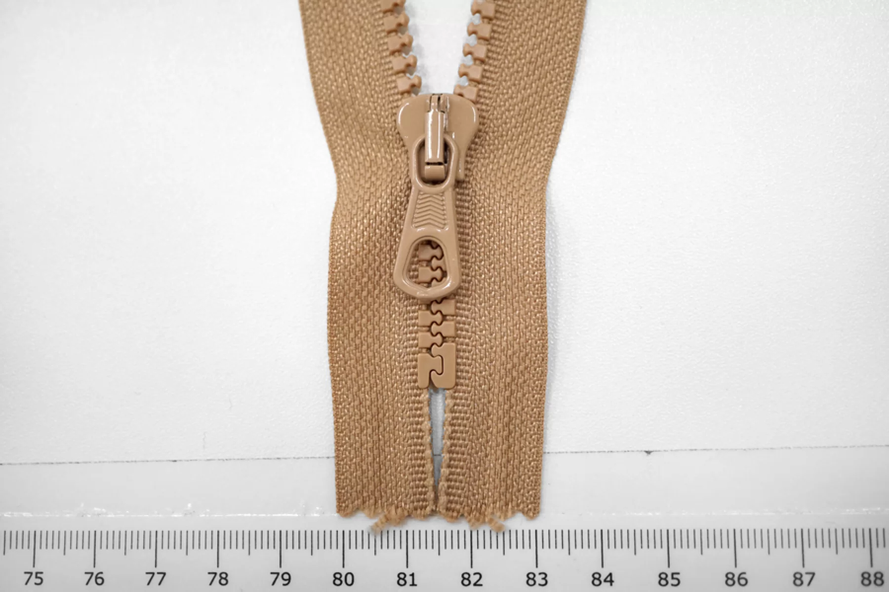 Молния тракторная пластиковая от "Lampo" неразъёмная, однозамковая, красновато-бежевого цвета. Длина 22 см.