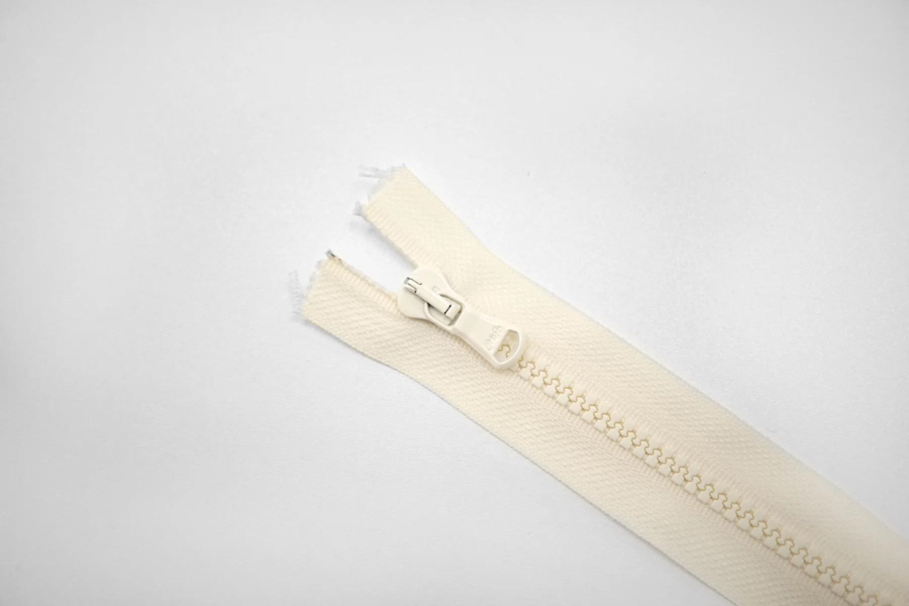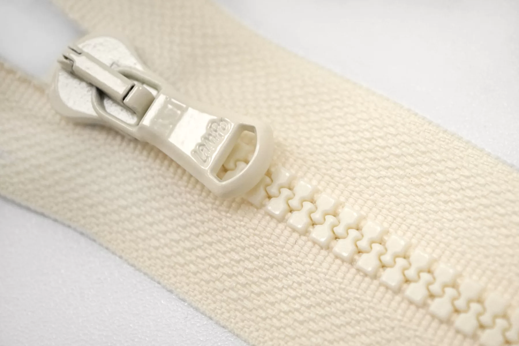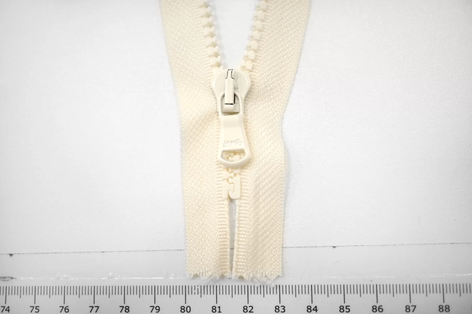 Молния тракторная пластиковая от "Lampo" неразъёмная, однозамковая, молочного цвета. Длина 14 см.