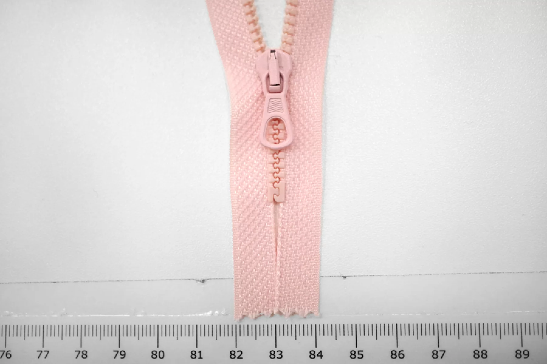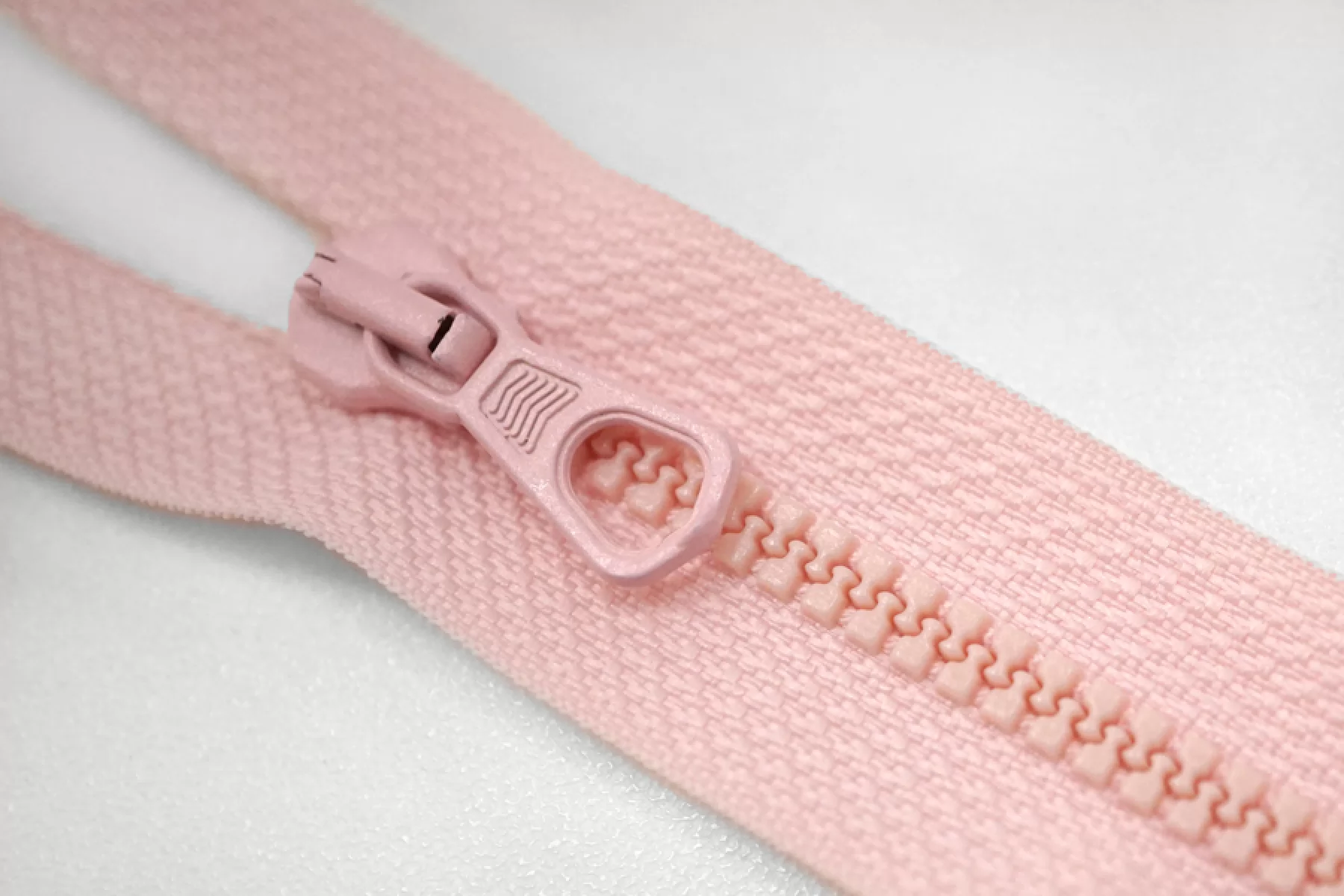 Молния тракторная пластиковая от "Lampo" неразъёмная, однозамковая, нежно-розового цвета. Длина 14 см.