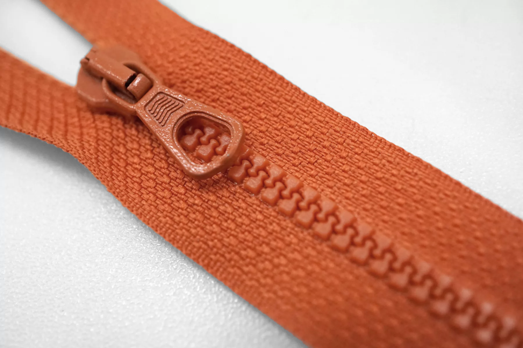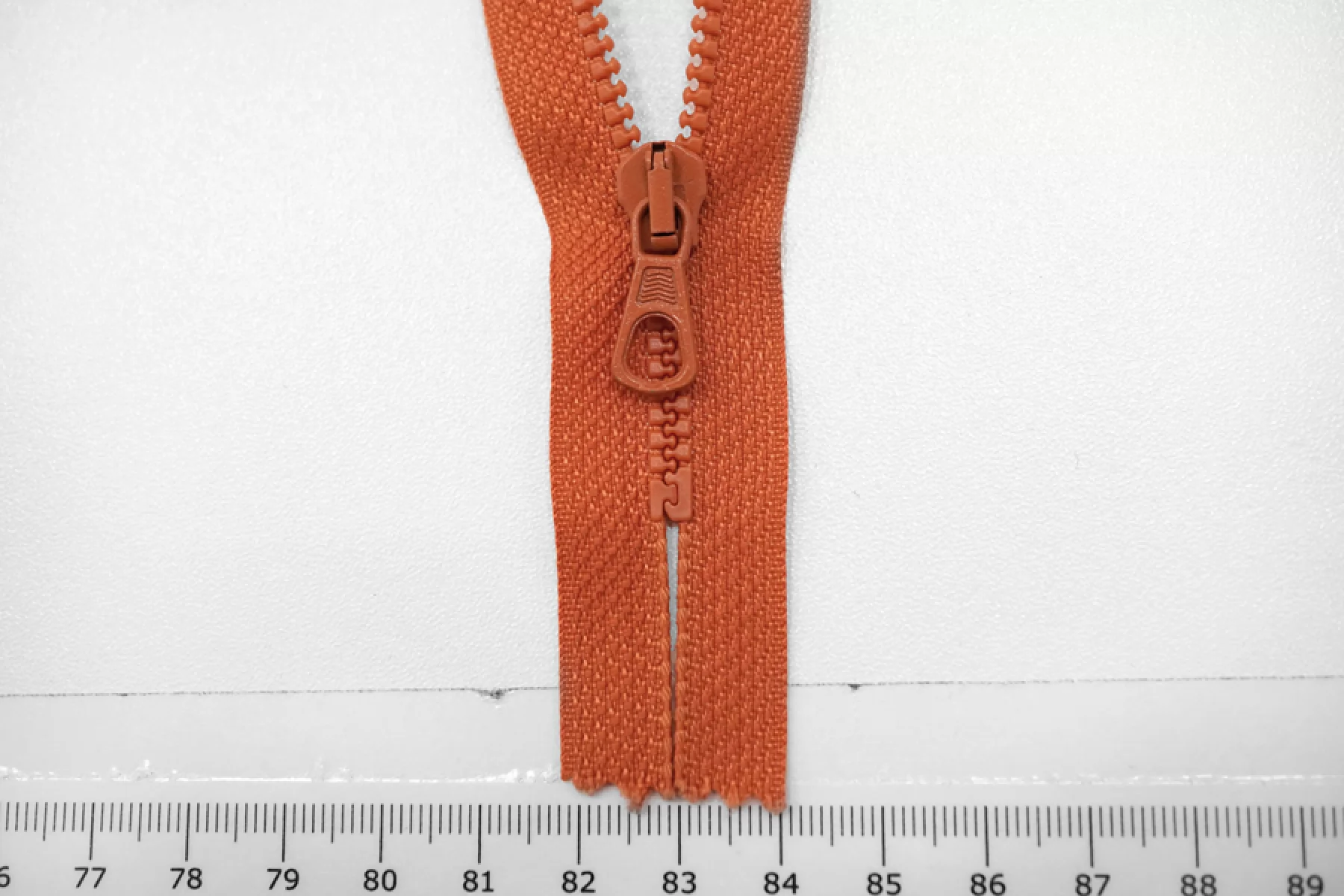 Молния тракторная пластиковая от "Lampo" неразъёмная, однозамковая, оранжевого цвета. Длина 16 см.