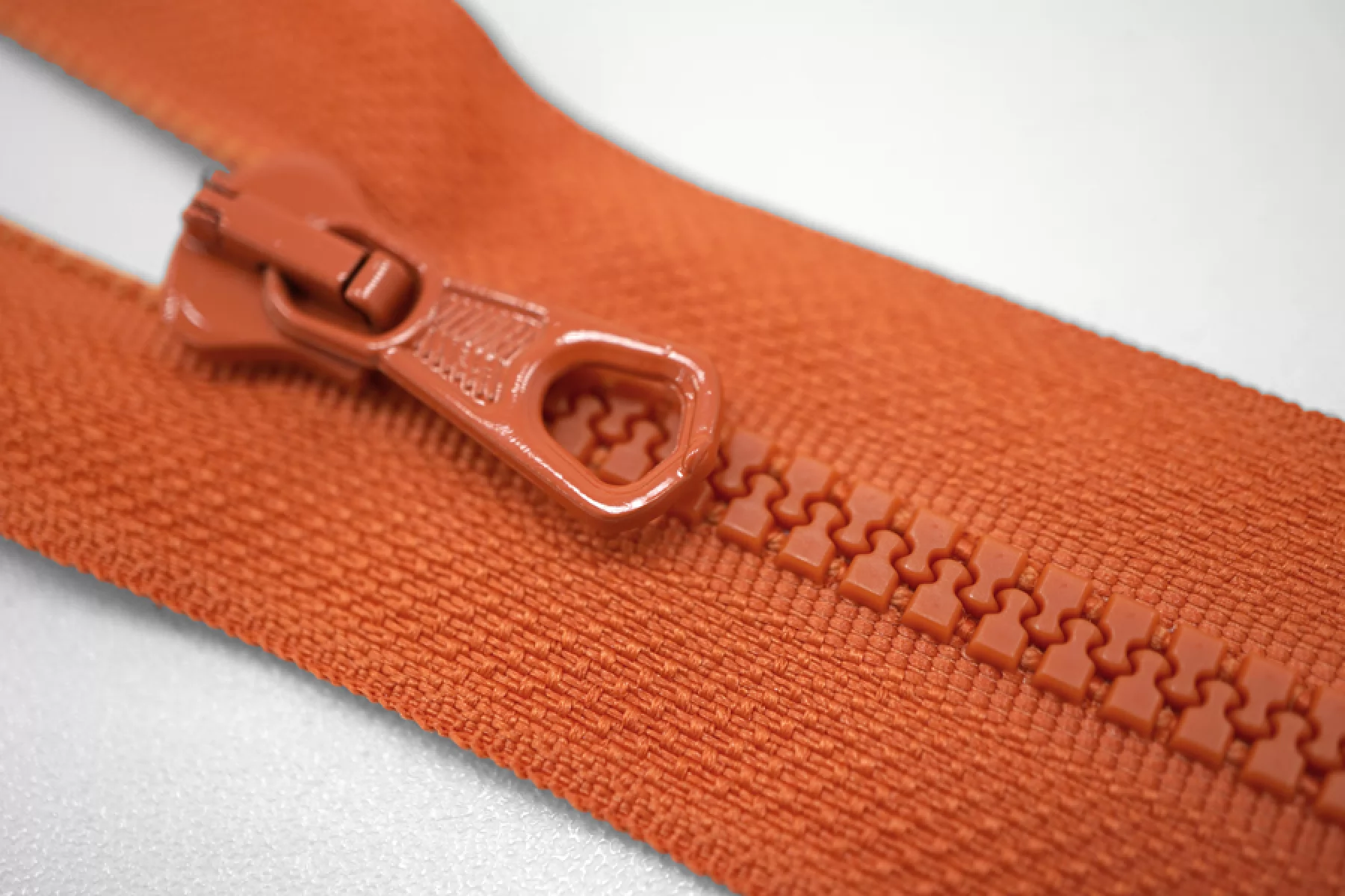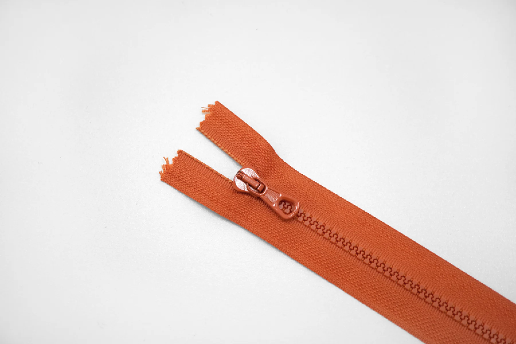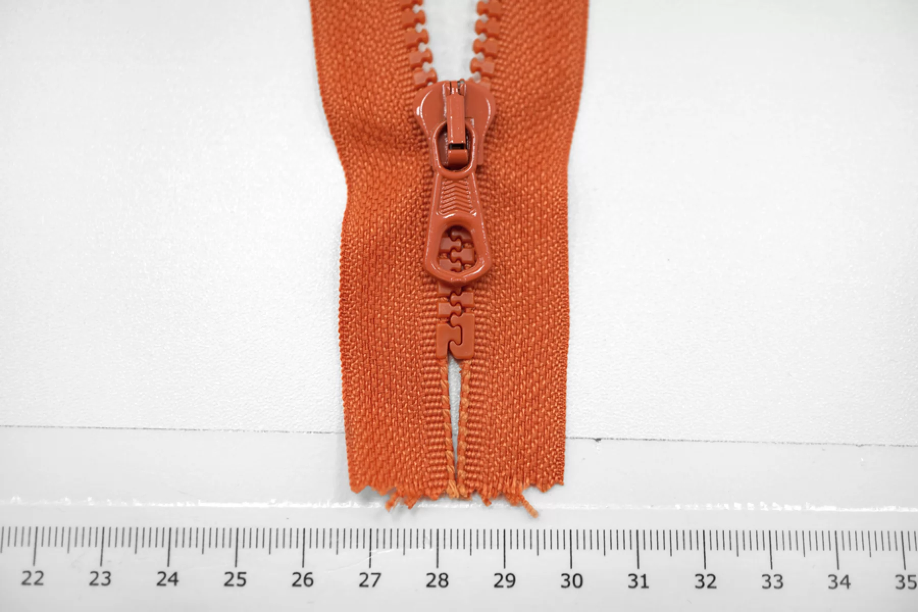 Молния тракторная пластиковая от "Lampo" неразъёмная, однозамковая, оранжевого цвета. Длина 22 см.