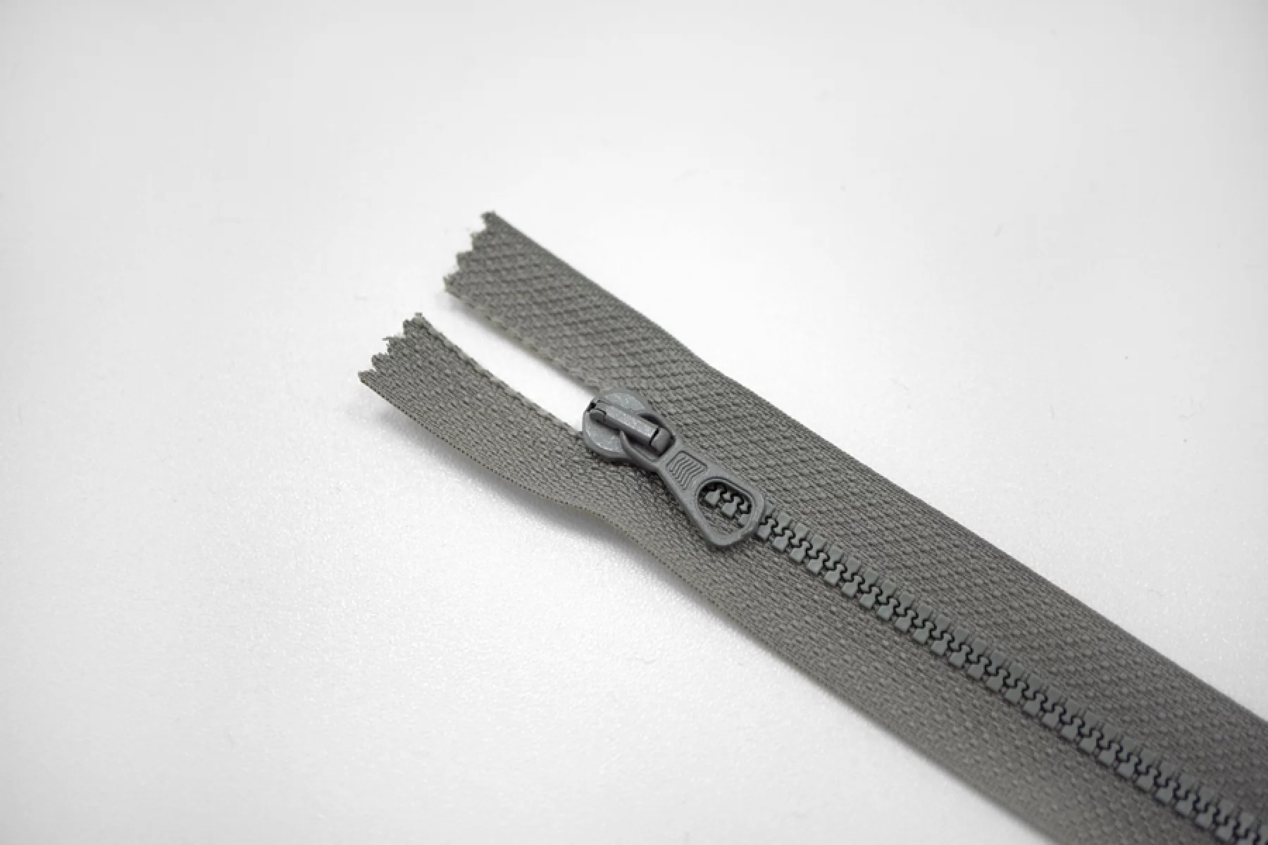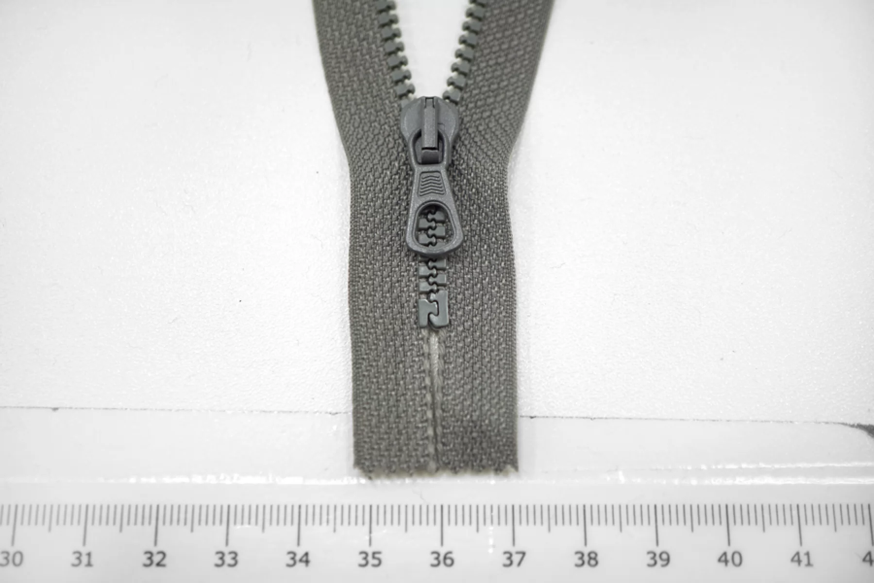 Молния тракторная пластиковая от "Lampo" неразъёмная, однозамковая, серого цвета. Длина 20 см.