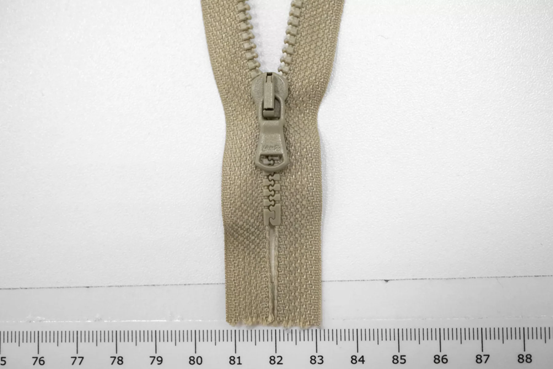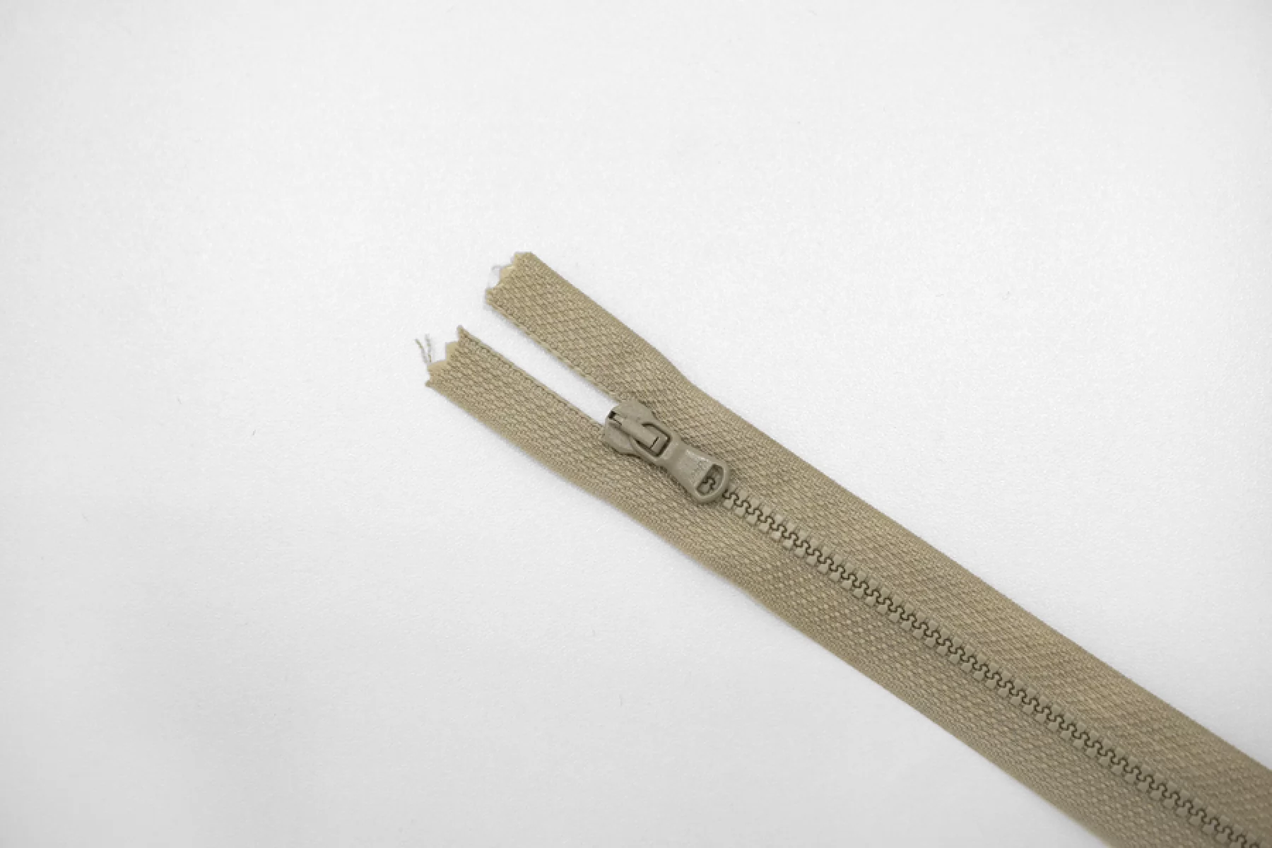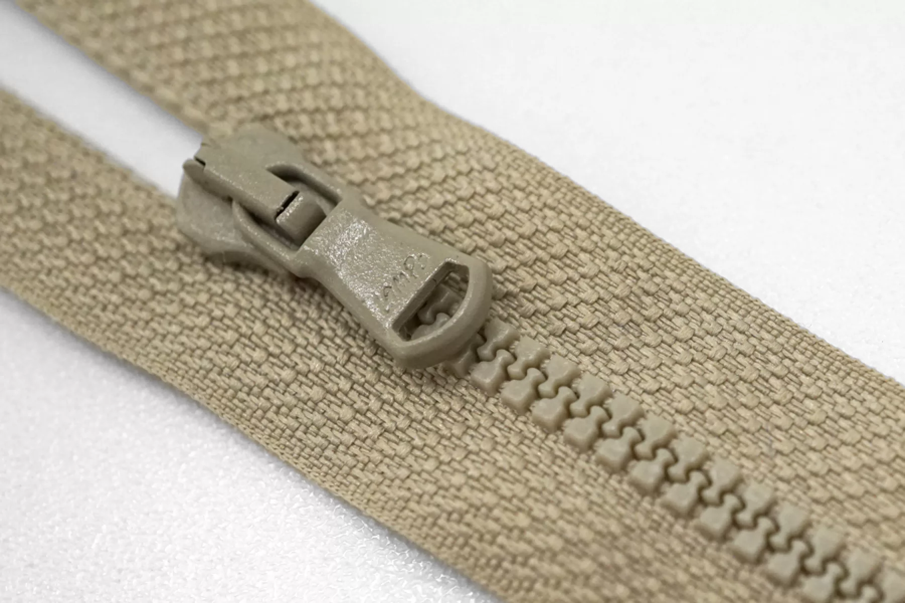 Молния тракторная пластиковая от "Lampo" неразъёмная, однозамковая, светлого серо-зеленого цвета. Длина 12 см.