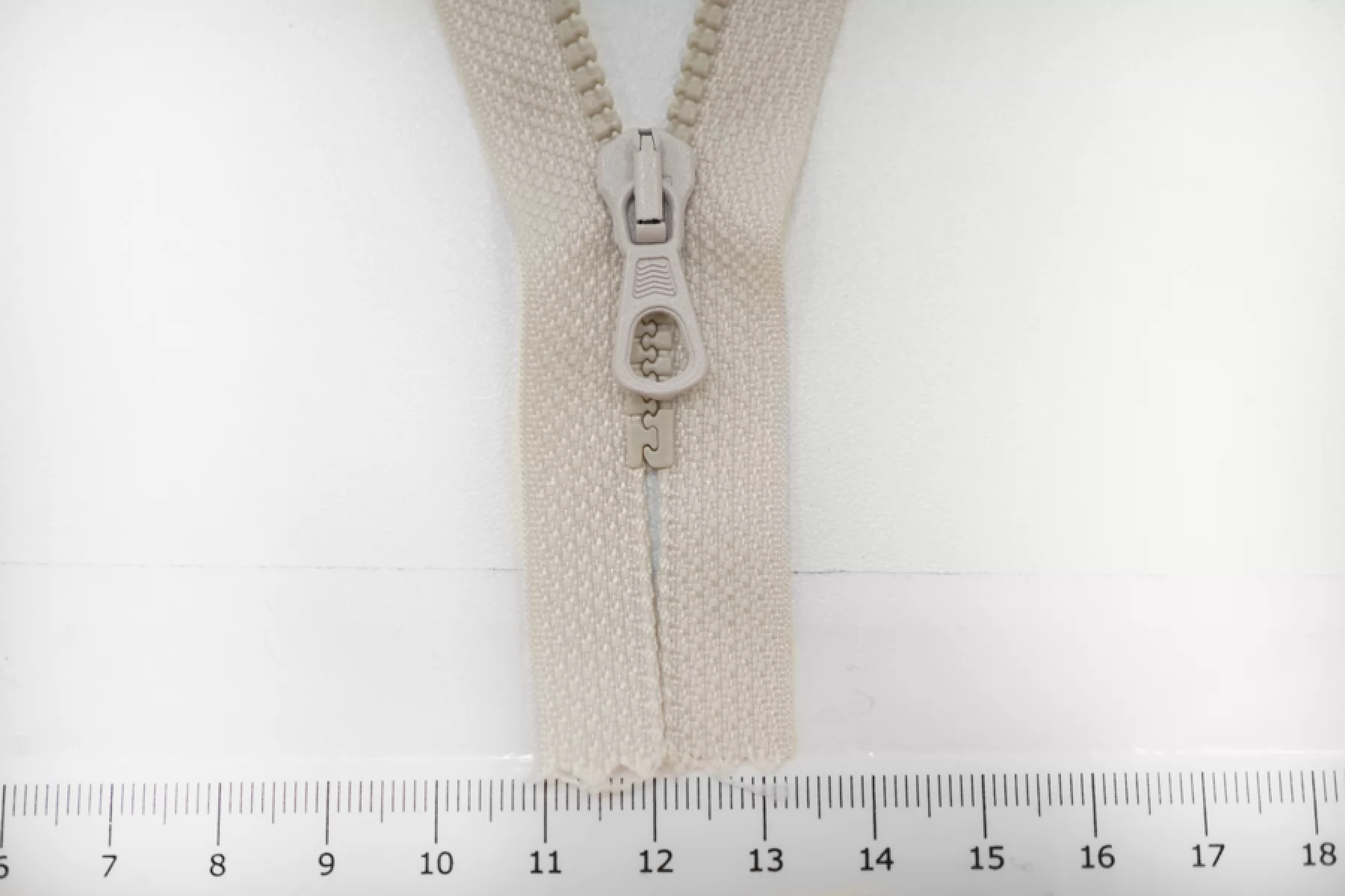 Молния тракторная пластиковая от "Lampo" неразъёмная, однозамковая, светло-серого цвета. Длина 19,5 см.
