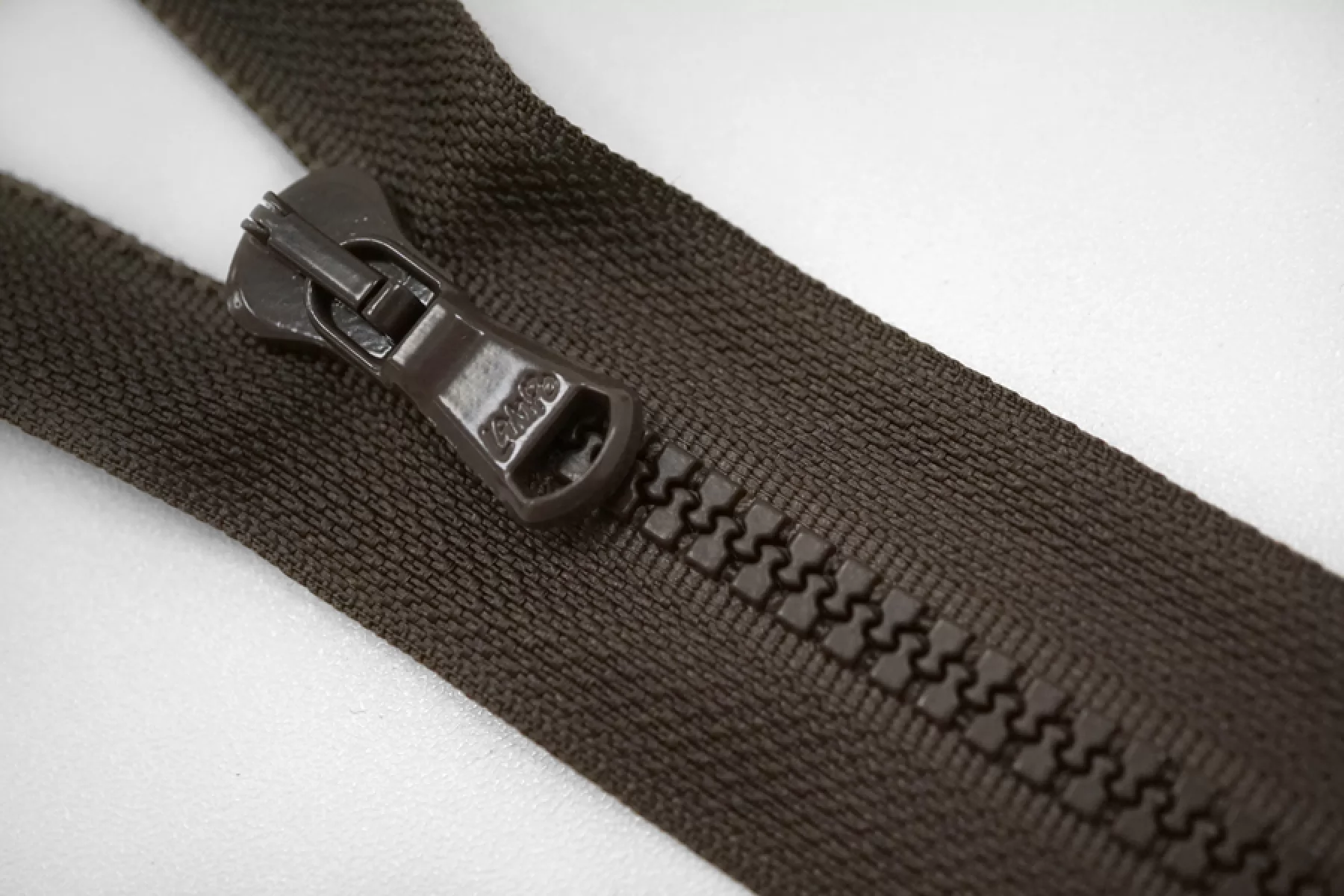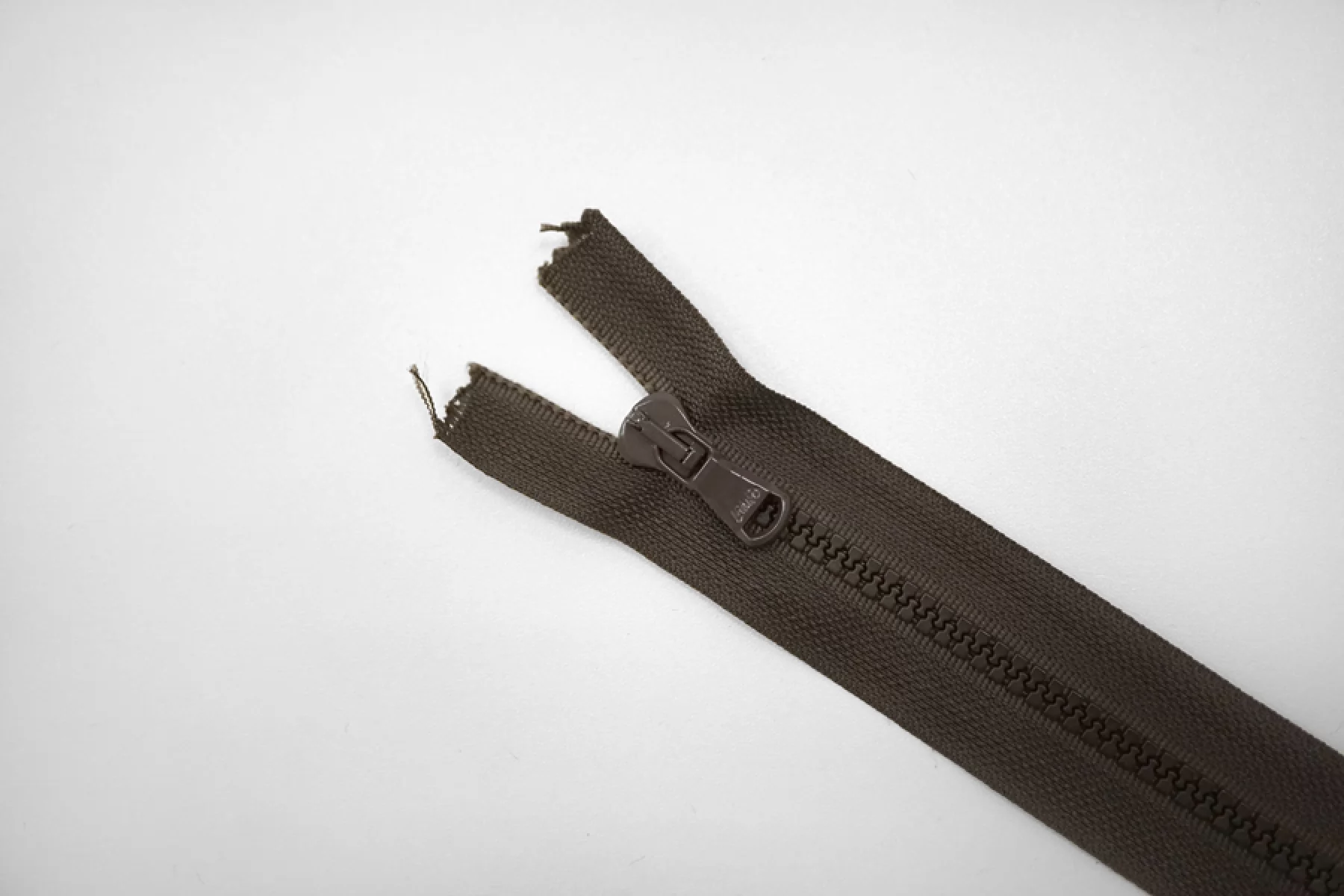 Молния тракторная пластиковая от "Lampo" неразъёмная, однозамковая, темно-коричневого цвета. Длина 14 см.