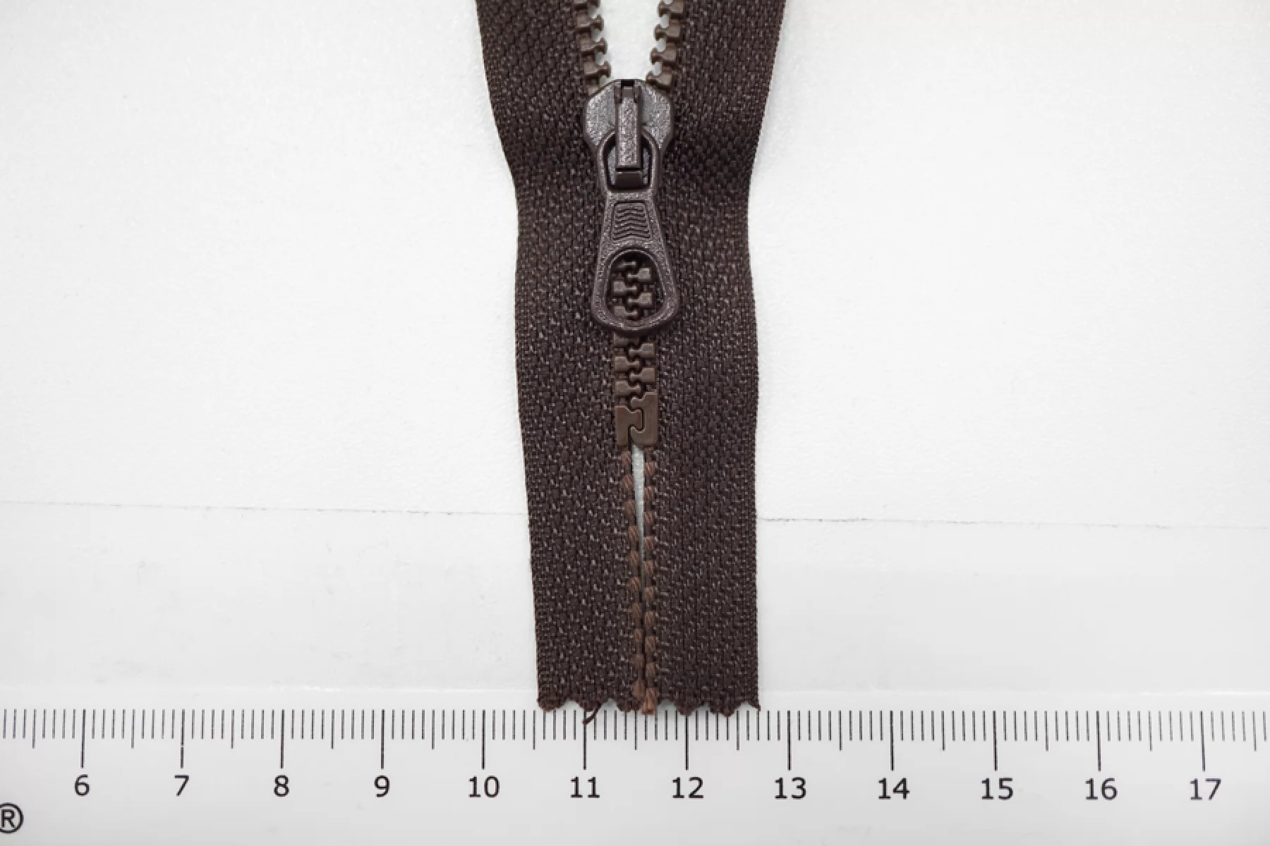 Молния тракторная пластиковая от "Lampo" неразъёмная, однозамковая, темно-коричневого цвета. Длина 15,5 см.