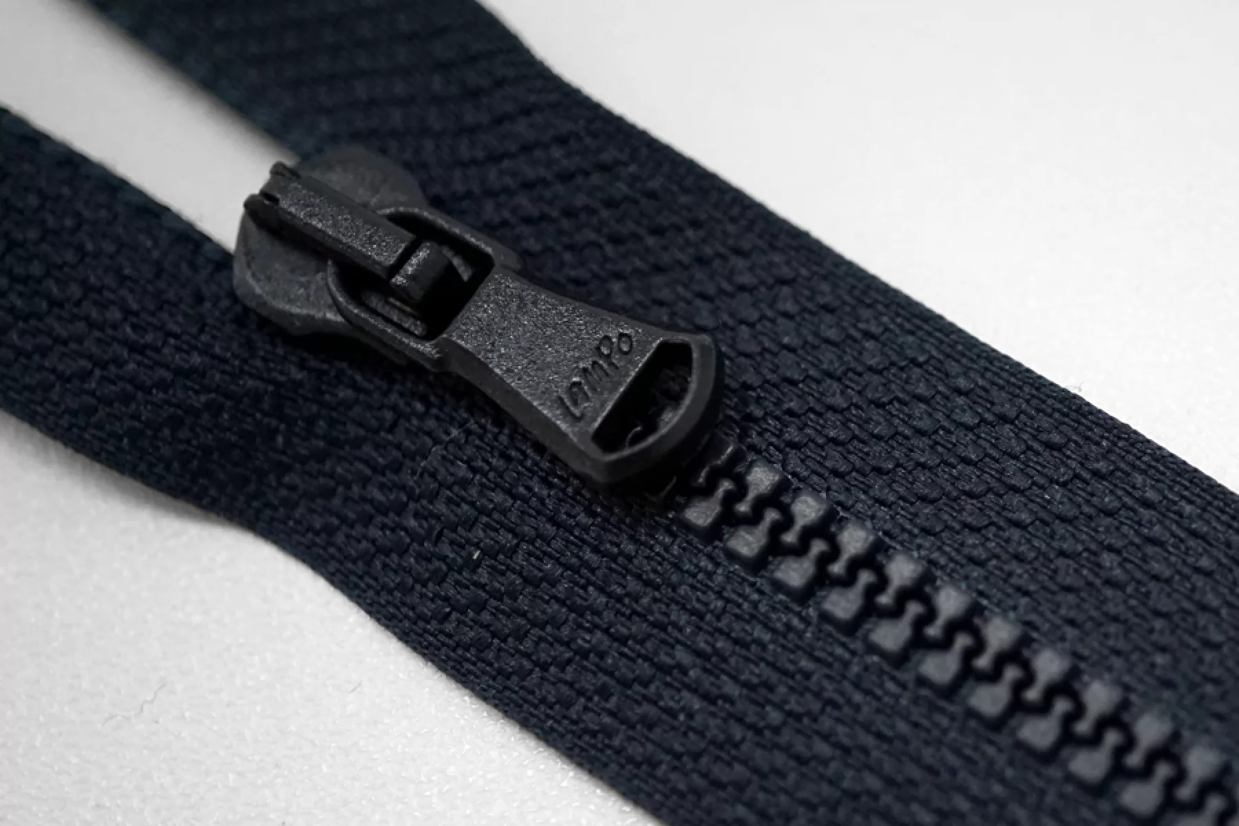 Молния тракторная пластиковая от "Lampo" неразъёмная, однозамковая, темно-синего цвета. Длина 12 см.
