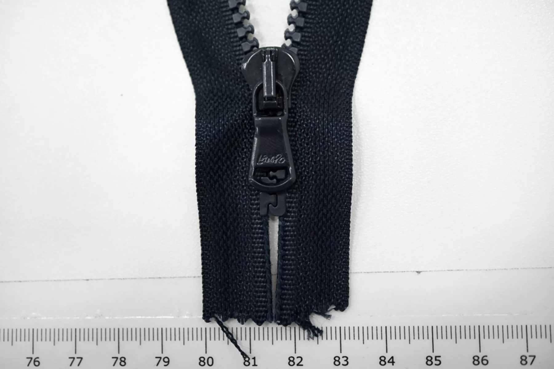 Молния тракторная пластиковая от "Lampo" неразъёмная, однозамковая, темно-синего цвета. Длина 14 см.
