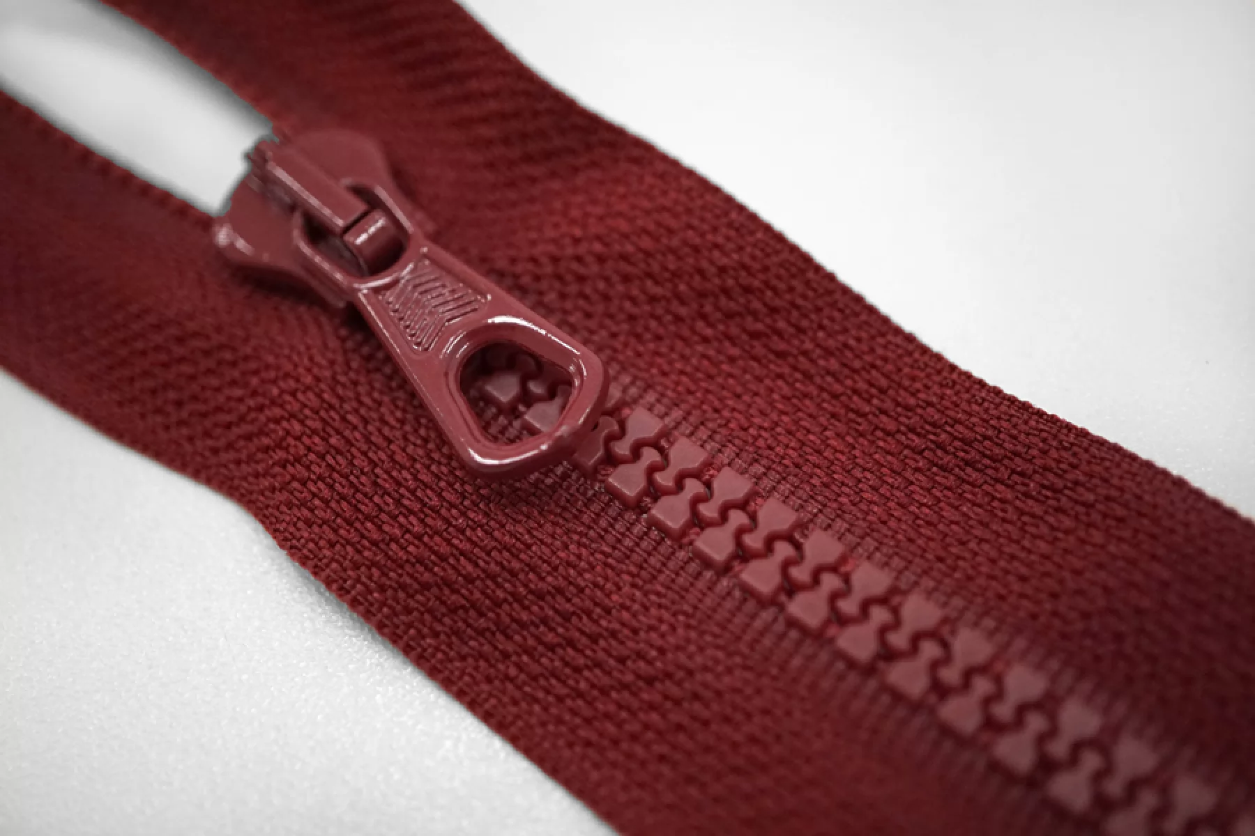 Молния тракторная пластиковая от "Lampo" неразъёмная, однозамковая, вишневого цвета. Длина 30 см.