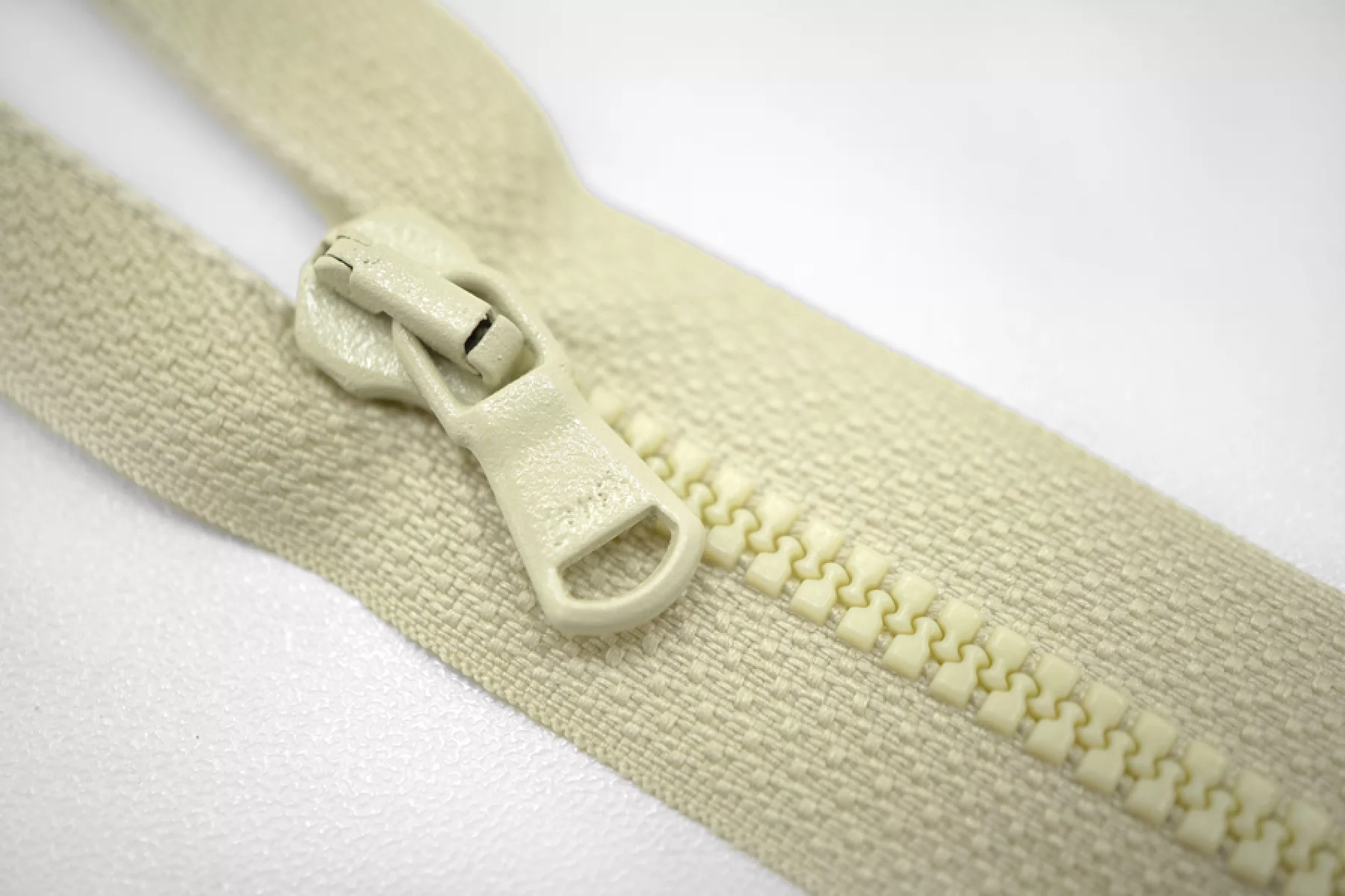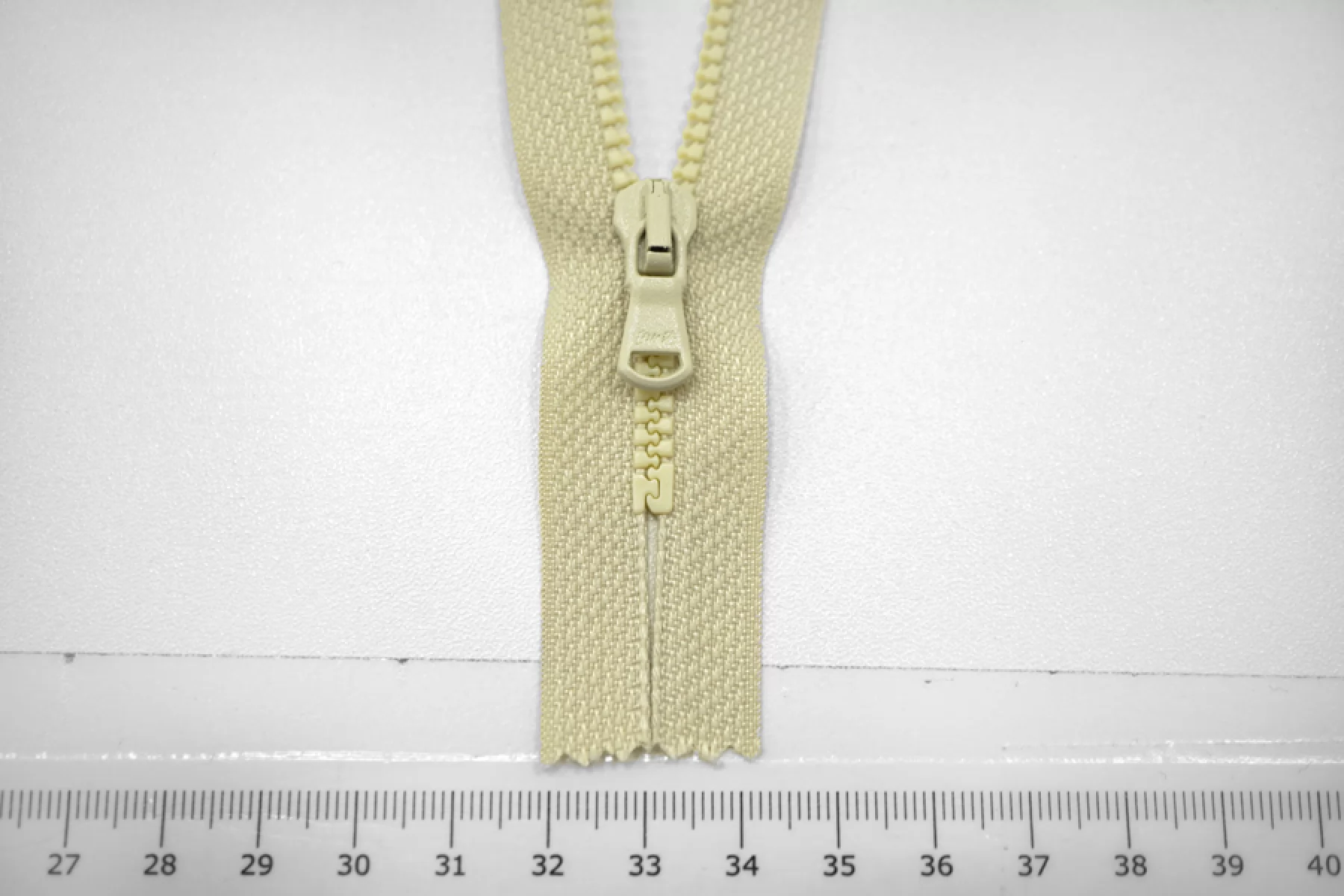 Молния тракторная пластиковая от "Lampo" неразъёмная, однозамковая, зеленовато-бежевого цвета. Длина 12 см.