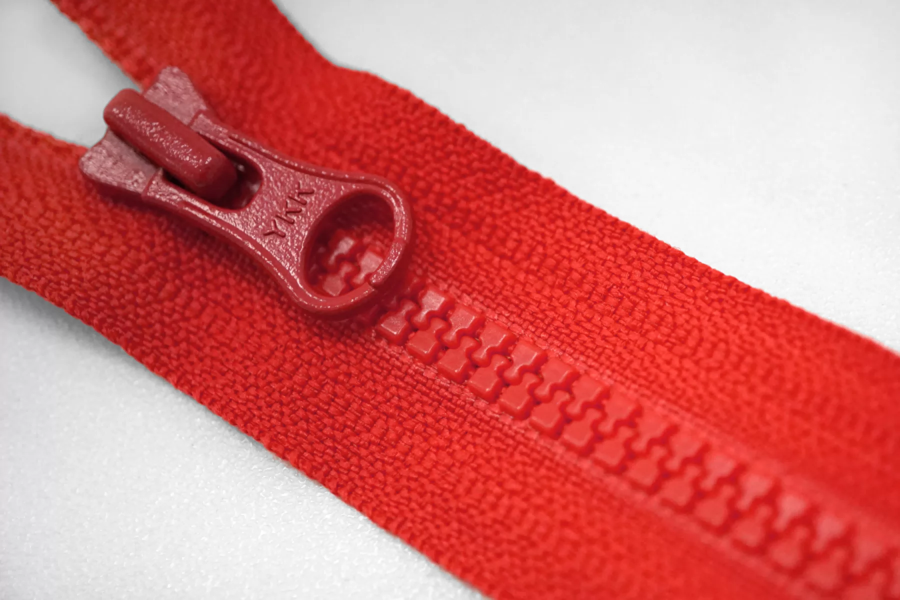 Молния тракторная пластиковая от "YKK" неразъёмная, однозамковая, алого цвета. Длина 16 см.