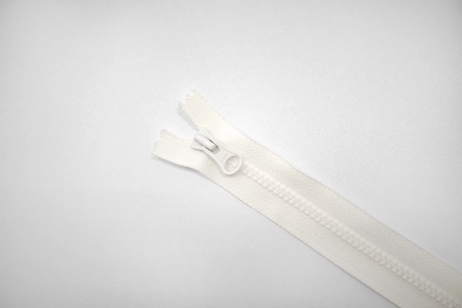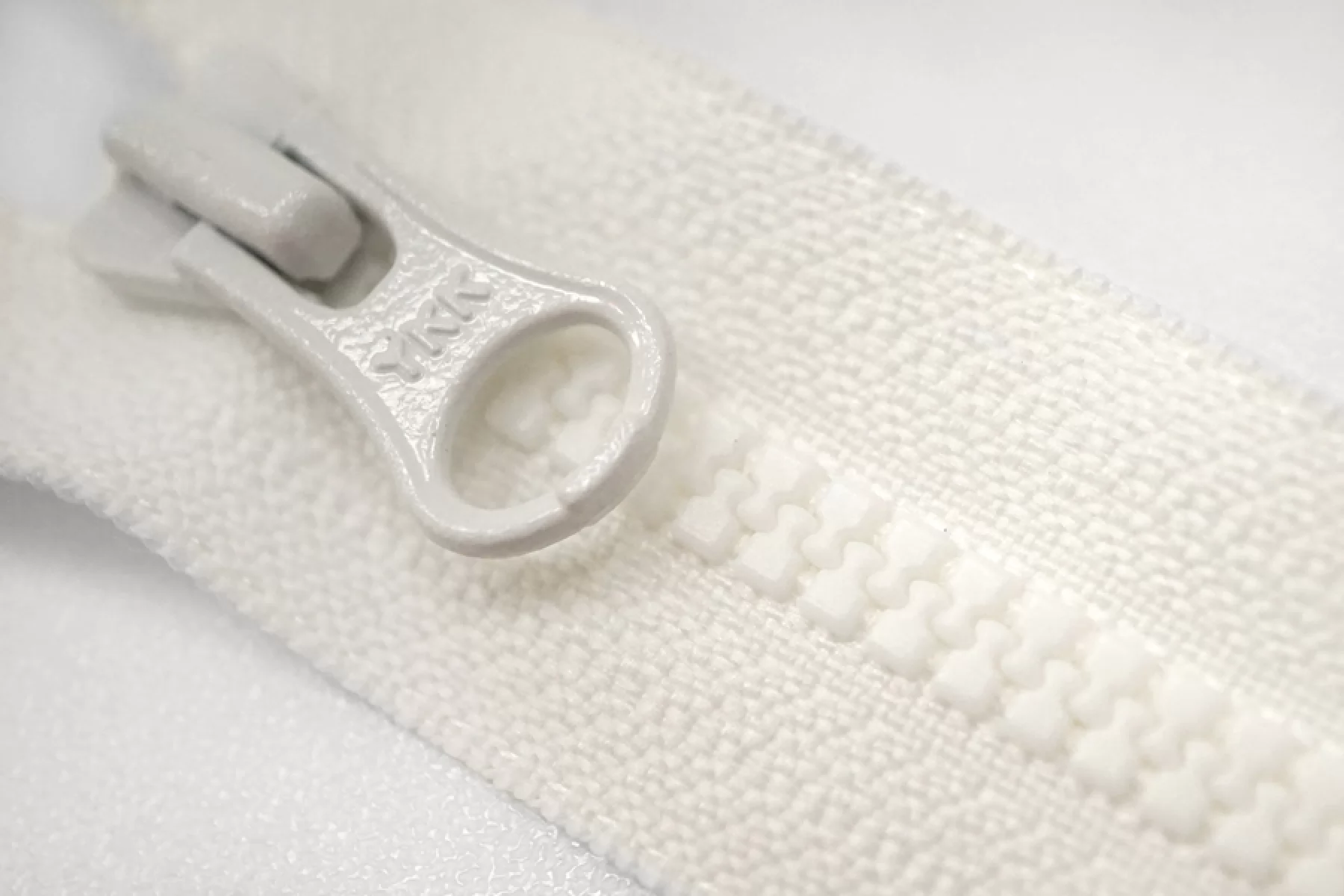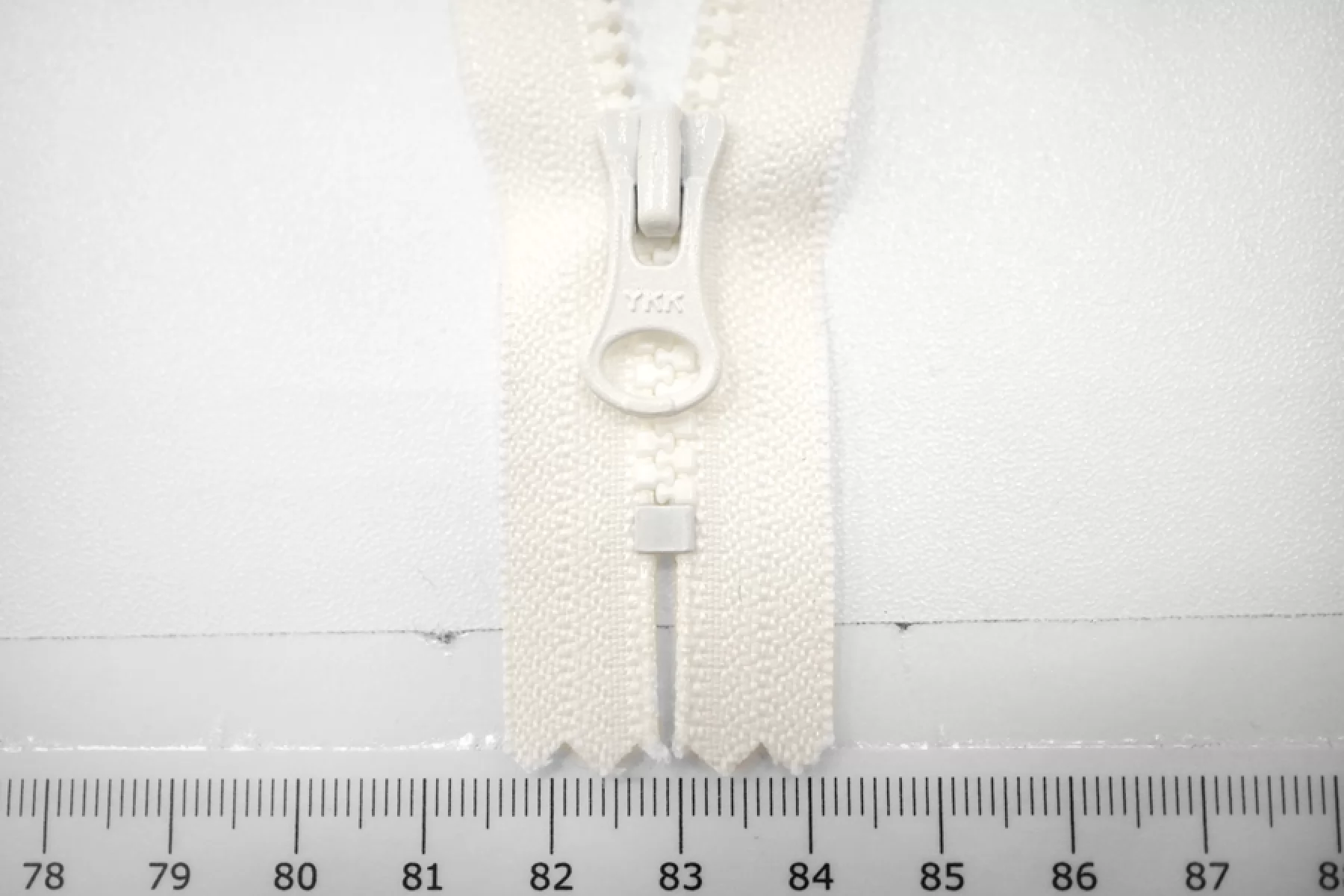 Молния тракторная пластиковая от "YKK" неразъёмная, однозамковая, белого цвета. Длина 16 см.