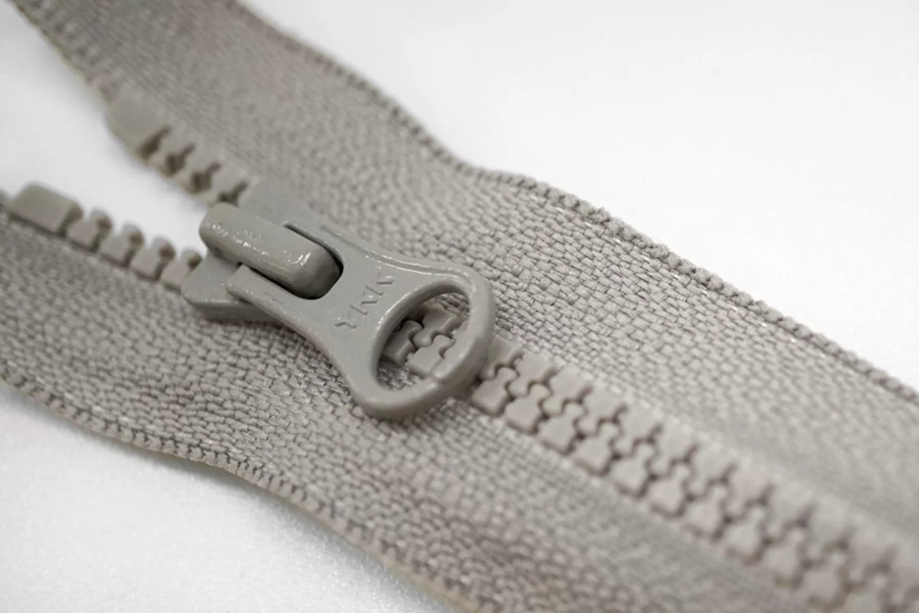 Молния тракторная пластиковая от "YKK" неразъёмная, однозамковая, светло-серого цвета. Длина 16 см.
