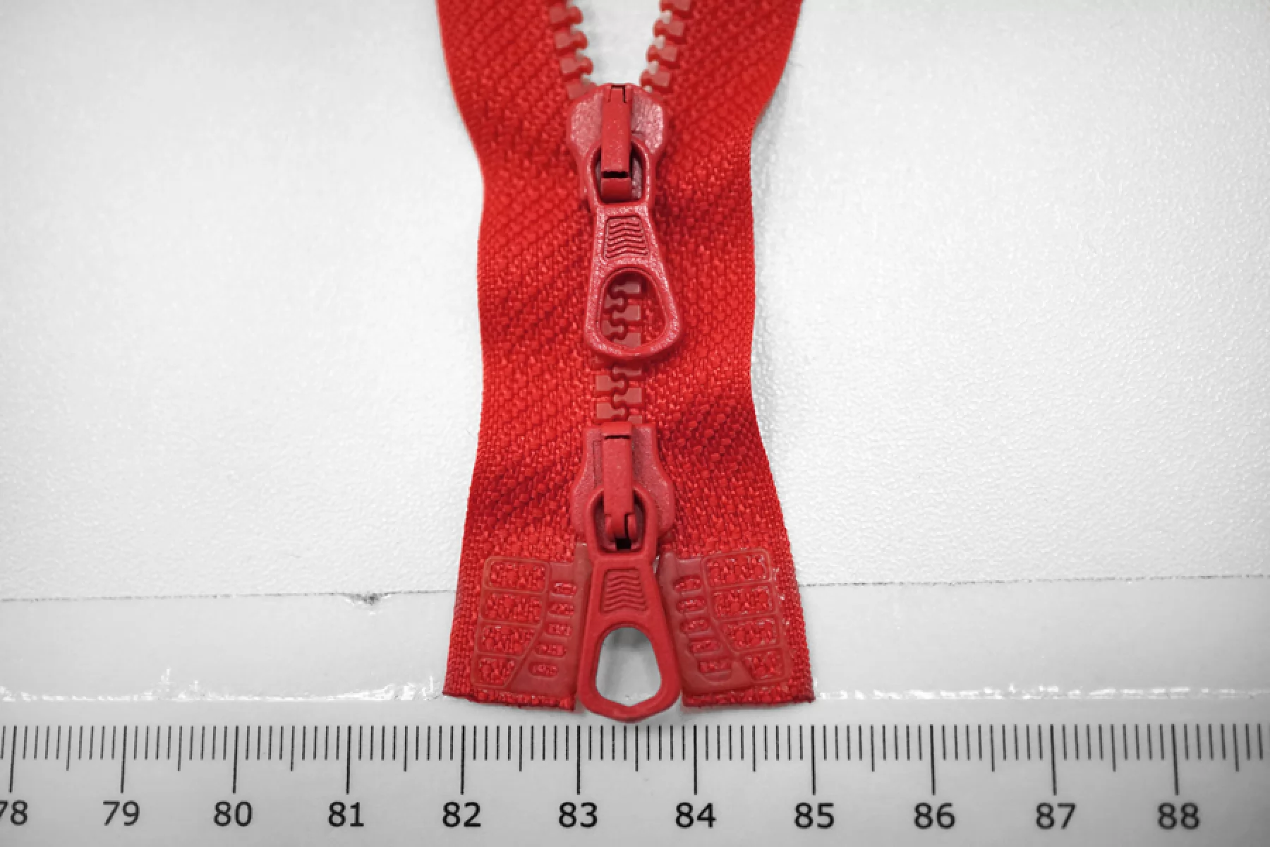 Молния тракторная пластиковая от "Lampo" разъёмная, двухзамковая, алого цвета. Длина 48 см.