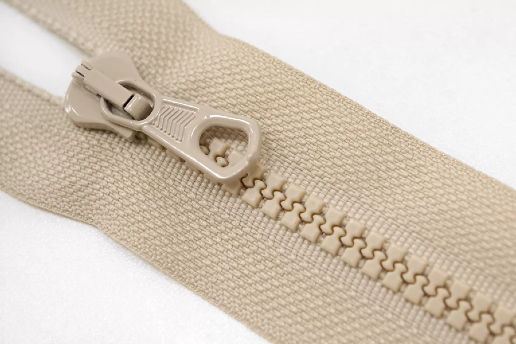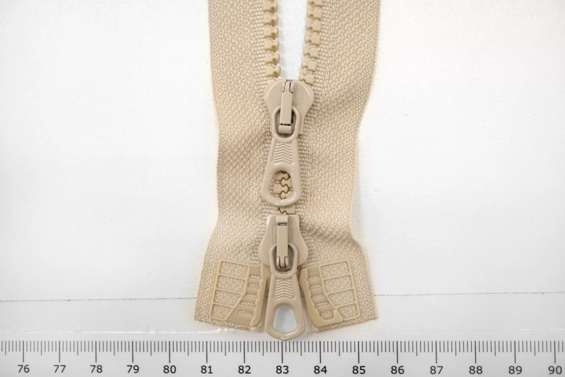 Молния тракторная пластиковая от "Lampo" разъёмная, двухзамковая, бежевого цвета. Длина 63 см.