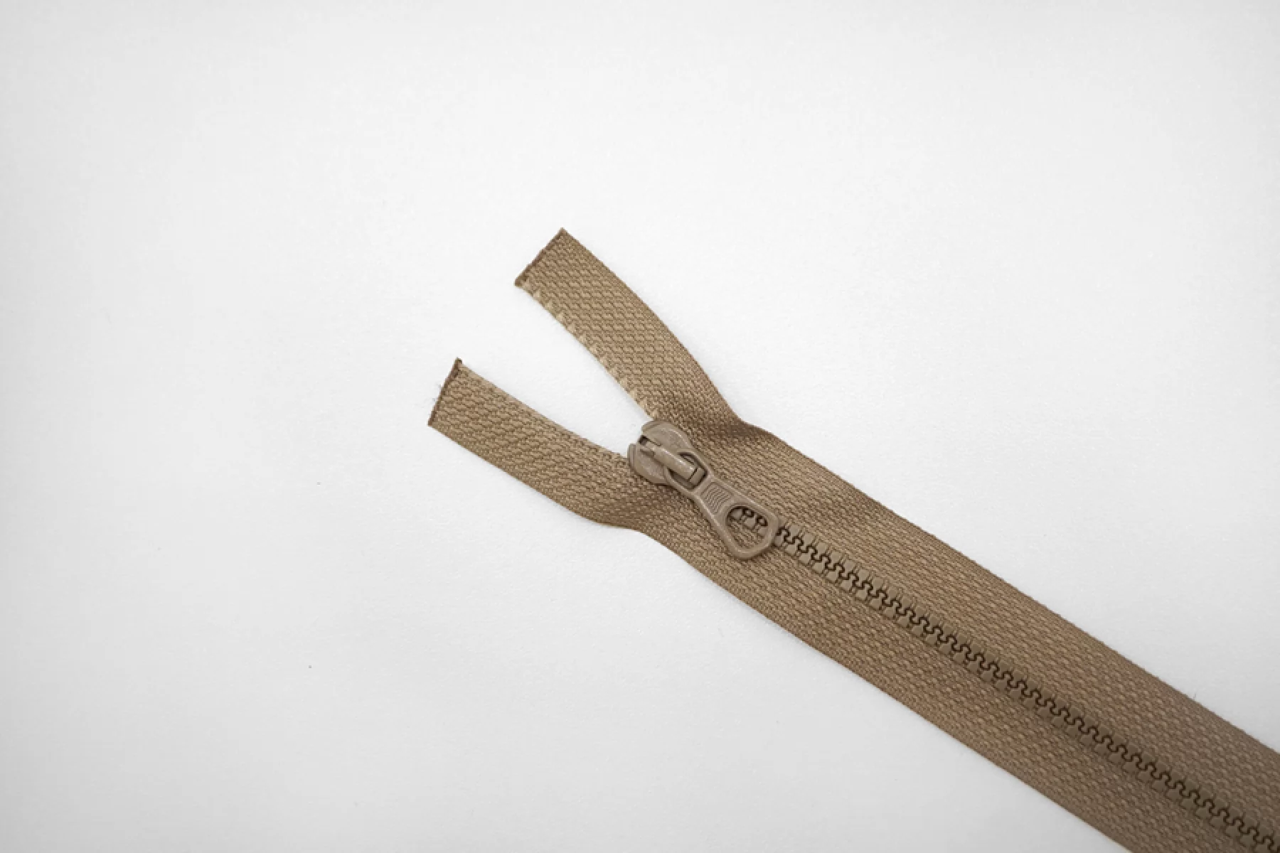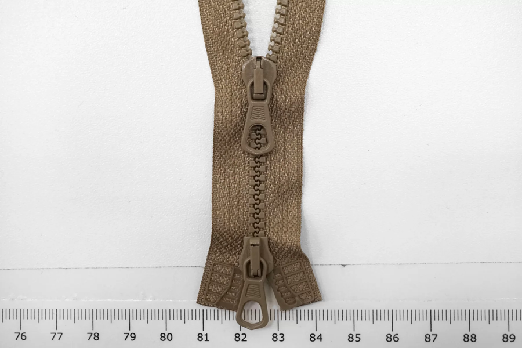 Молния тракторная пластиковая от "Lampo" разъёмная, двухзамковая, серо-бежевого цвета. Длина 54 см.