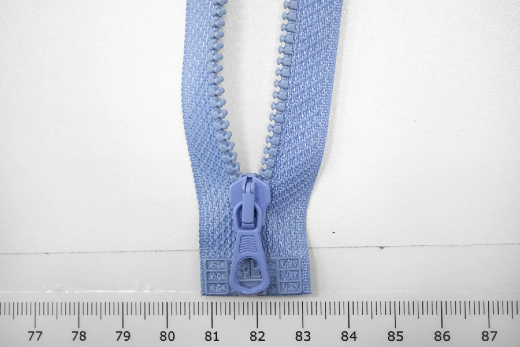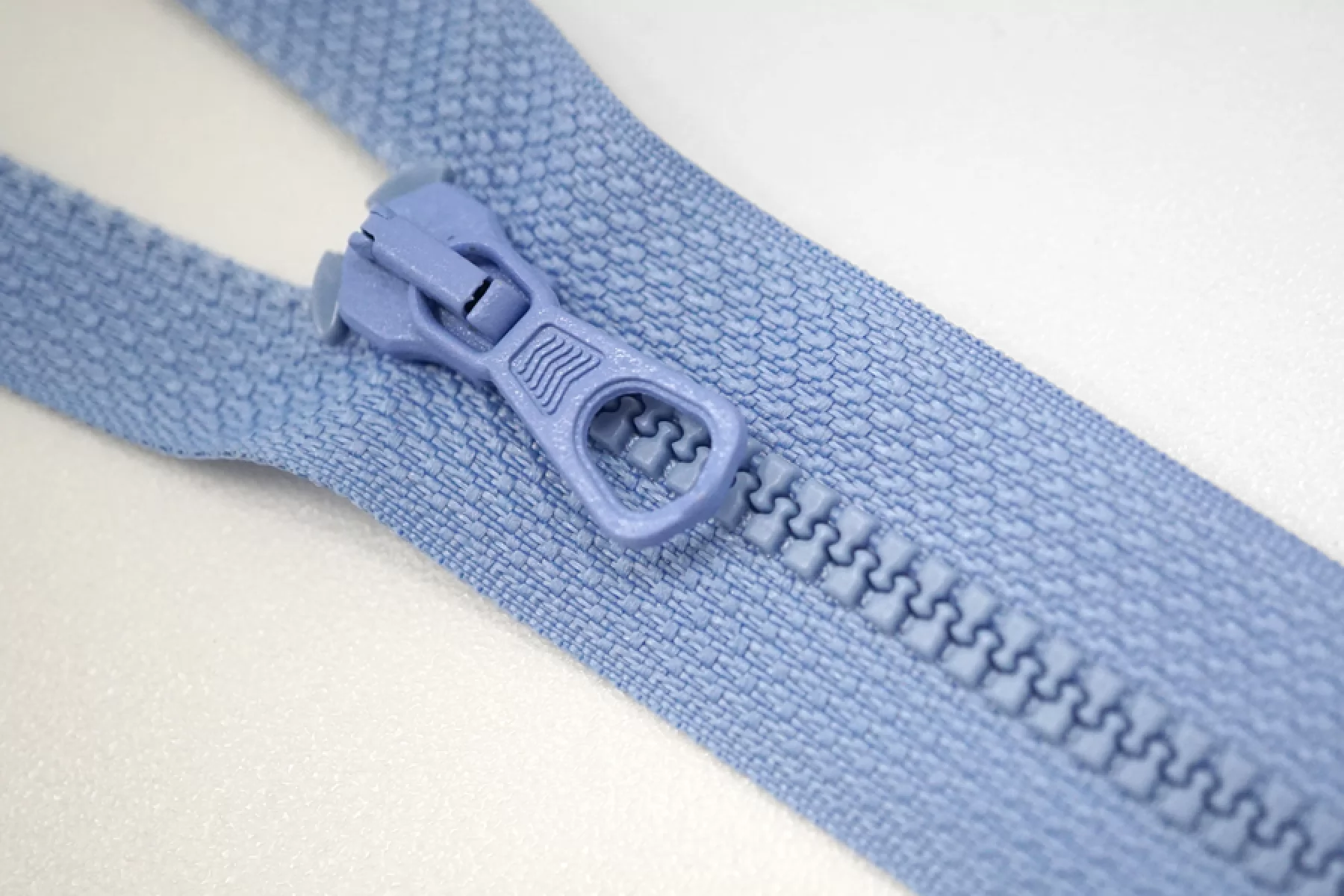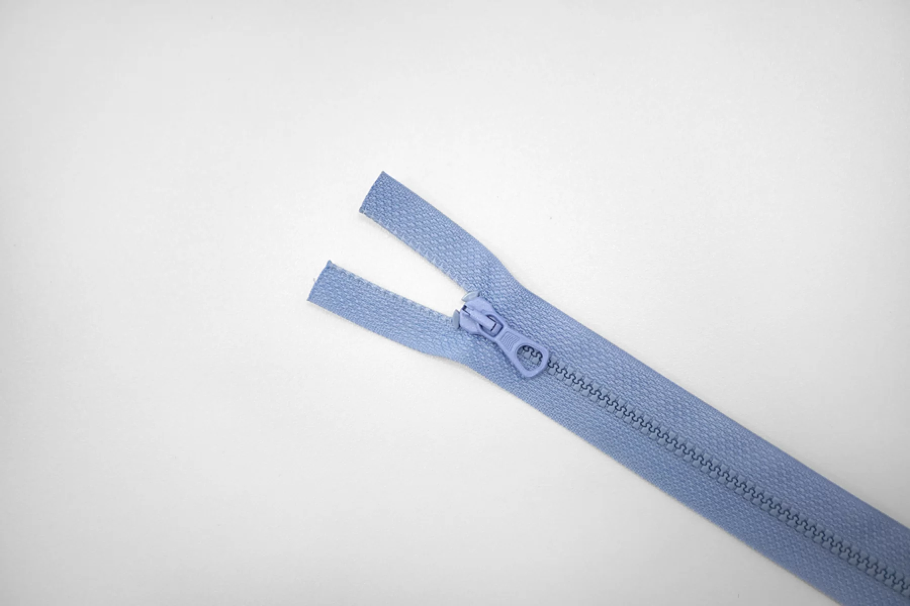 Молния тракторная пластиковая от "Lampo" разъёмная, двухзамковая, сиренево-голубого цвета, пуллер и зубцы незначительно отличаются по оттенку. Длина 54 см.