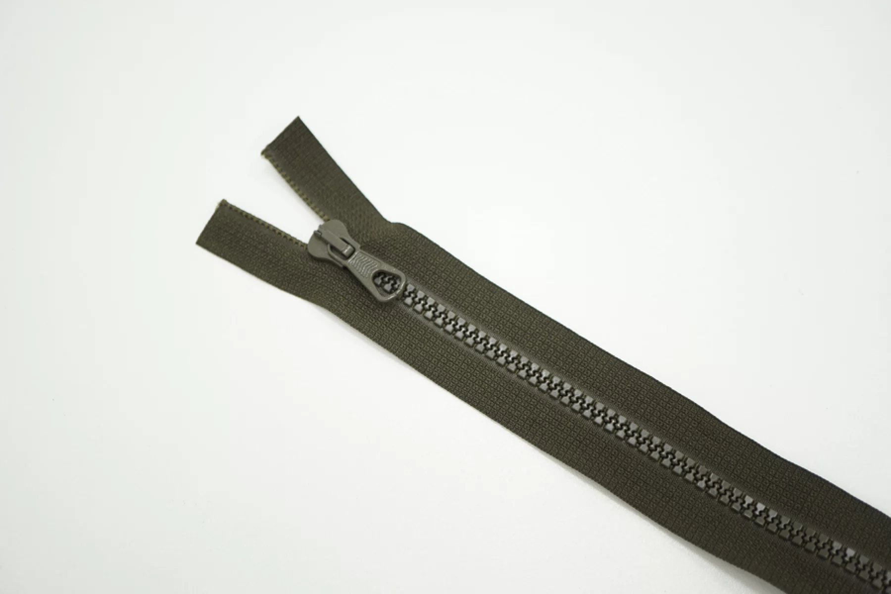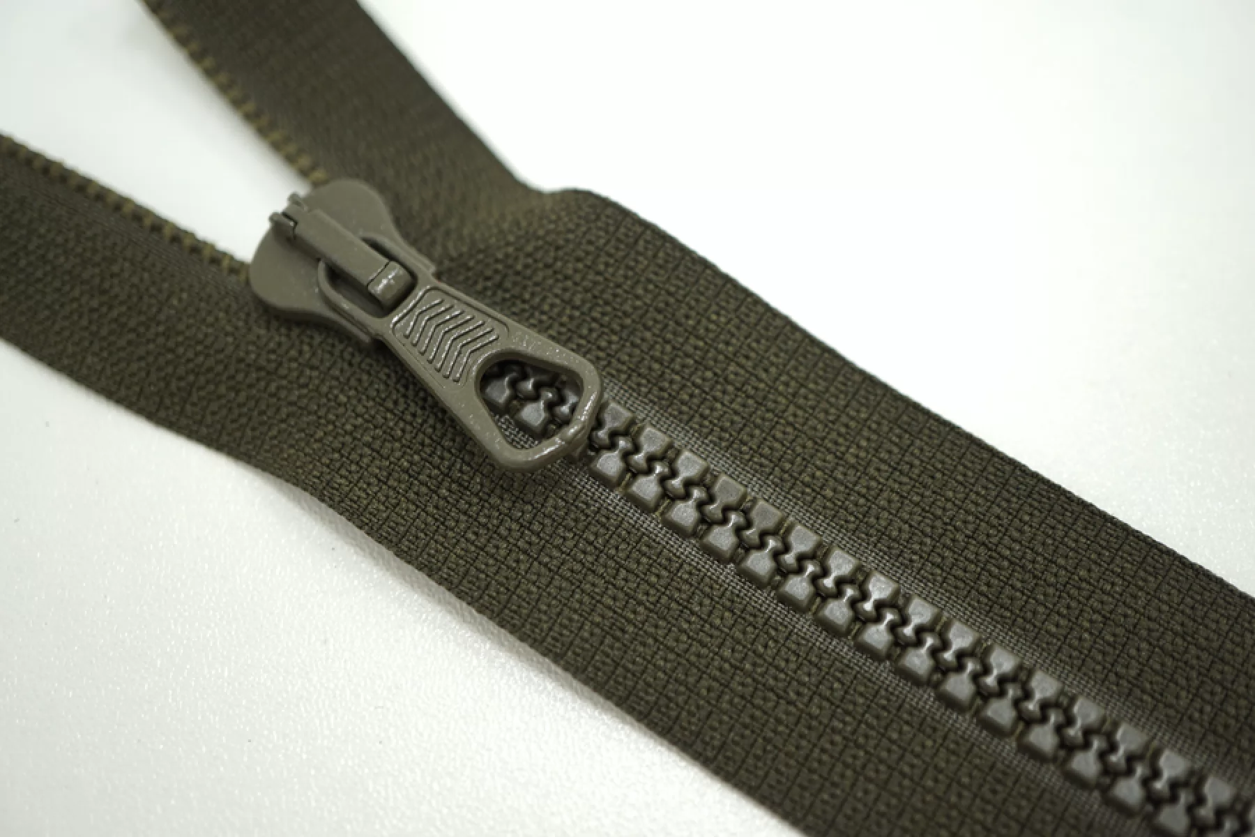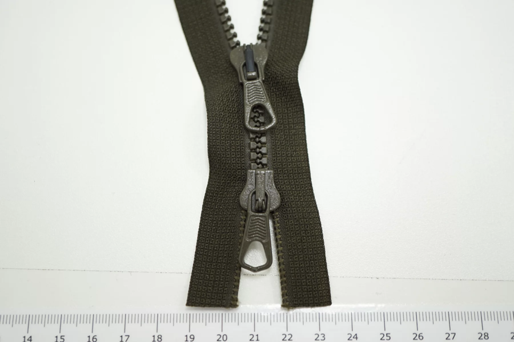 Молния тракторная пластиковая разъёмная, двухзамковая, цвета темно-зеленого хаки. Длина 65 см.