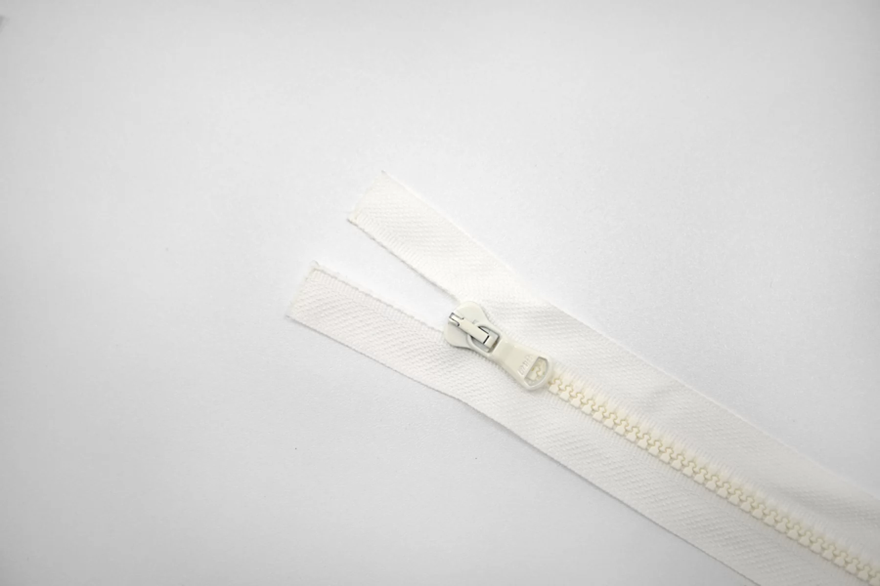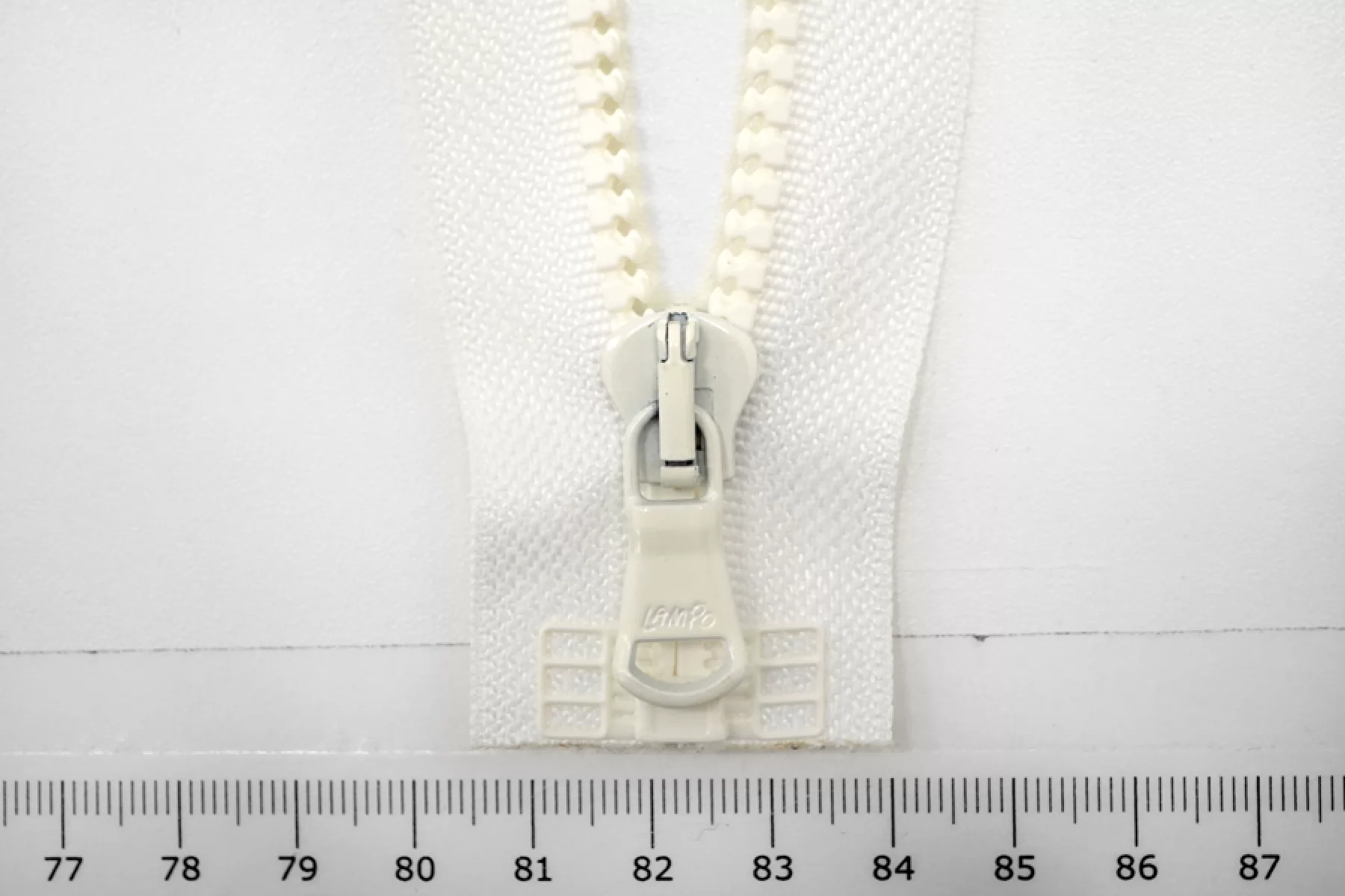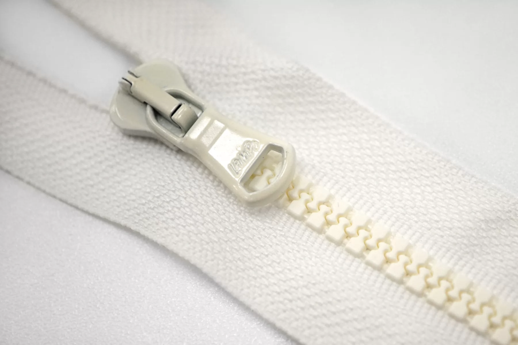 Молния тракторная пластиковая от "Lampo" разъёмная, белая, с молочными зубцами и бегунком. Длина 64 см.