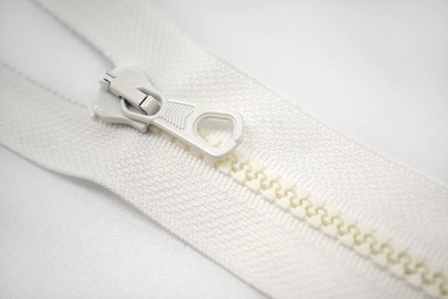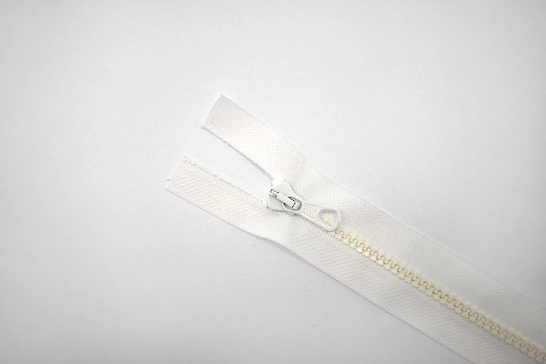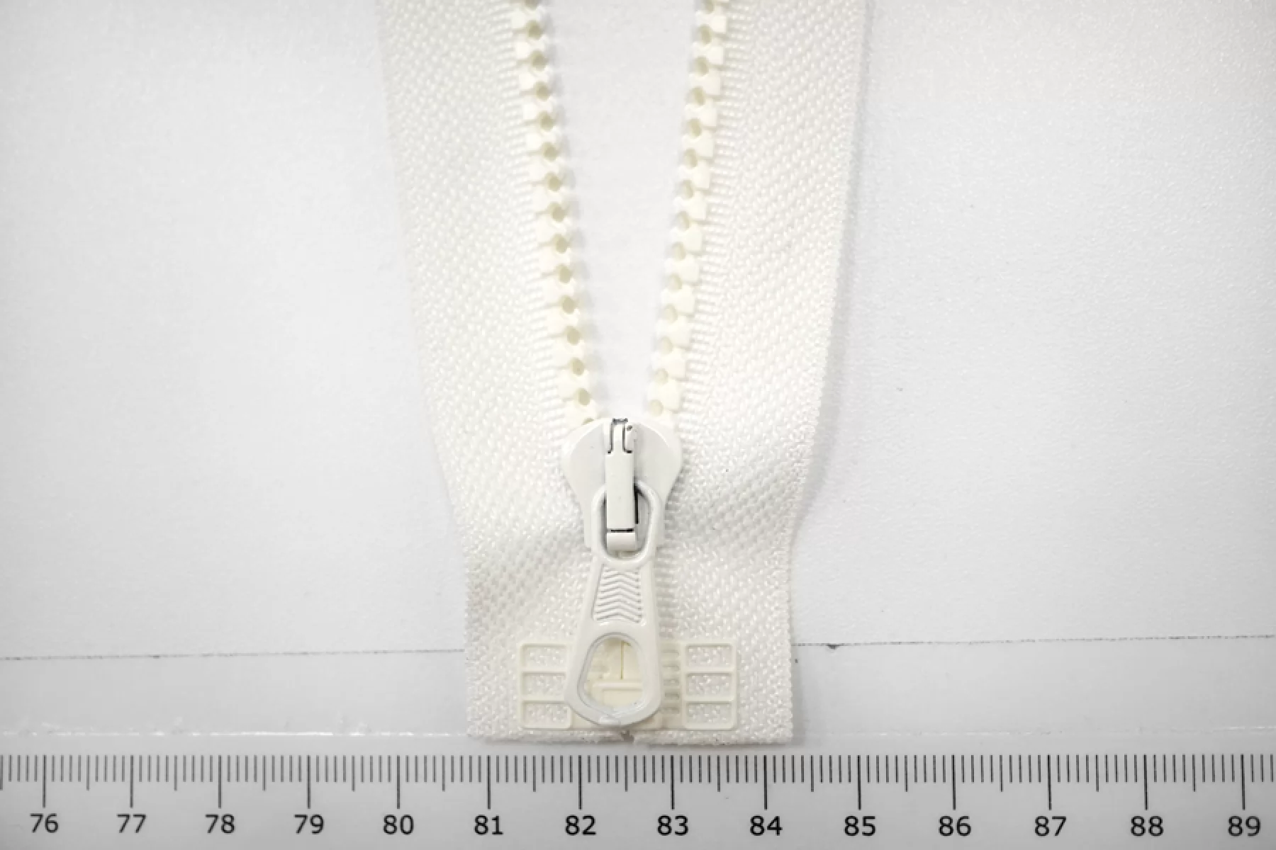 Молния тракторная пластиковая от "Lampo" однозамковая, разъёмная, белого цвета, с молочными зубцами. Длина 45 см.
