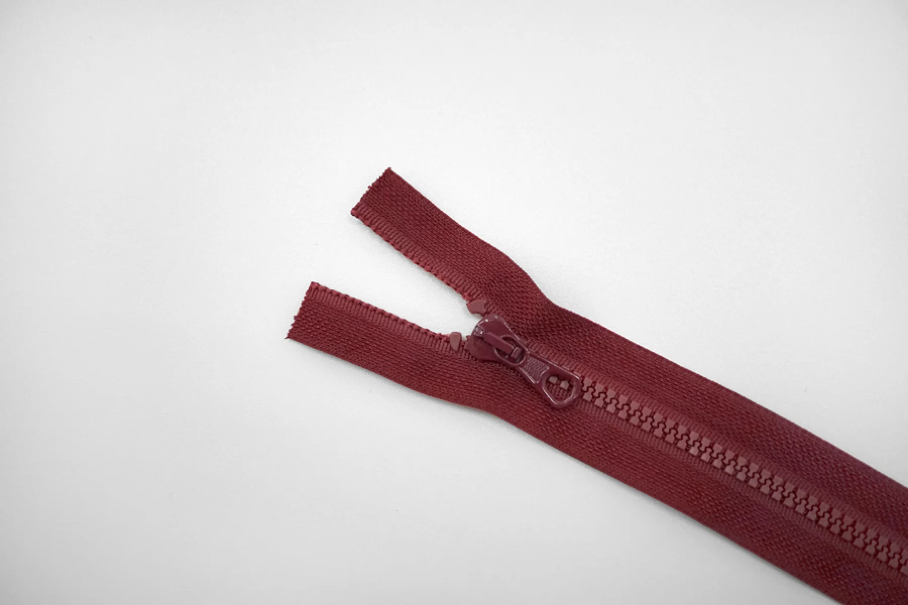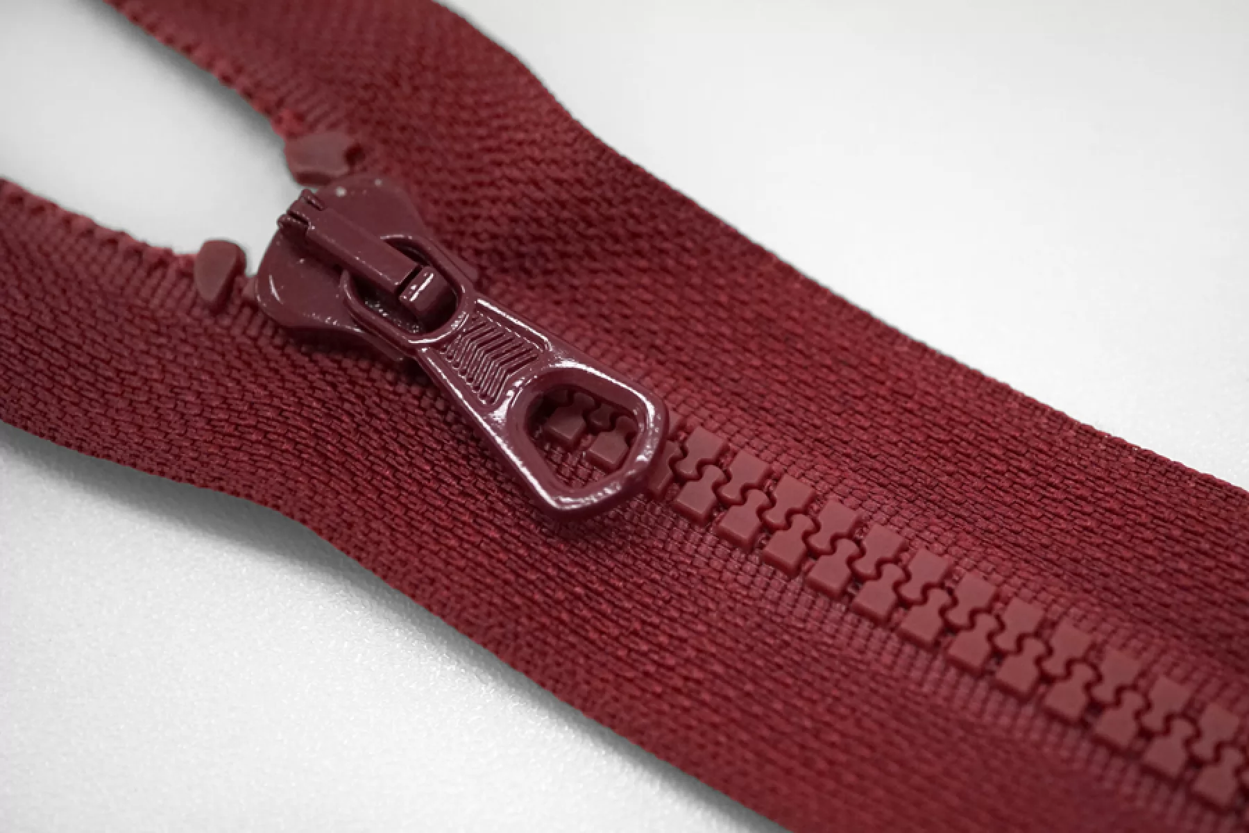 Молния тракторная пластиковая от "Lampo" однозамковая, разъёмная, бордового цвета. Длина 65 см.