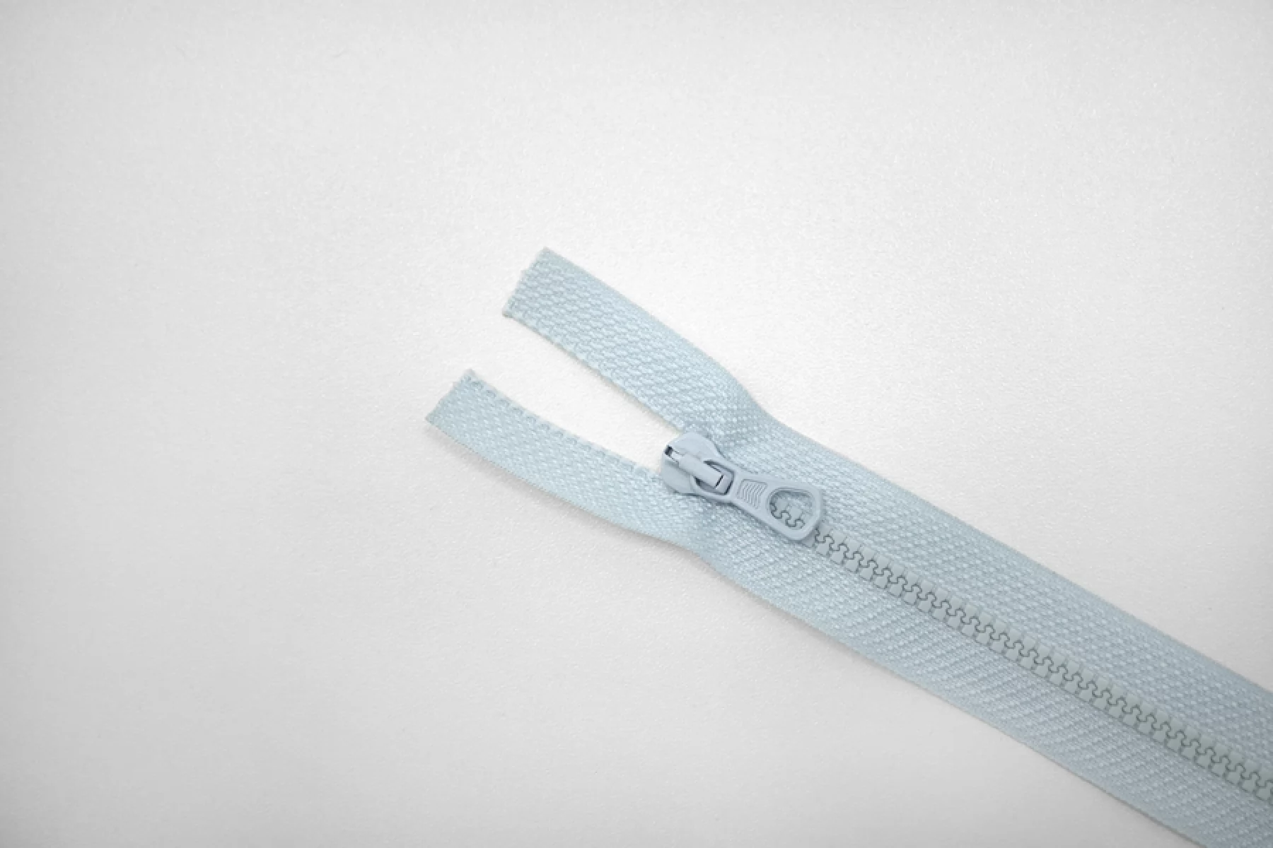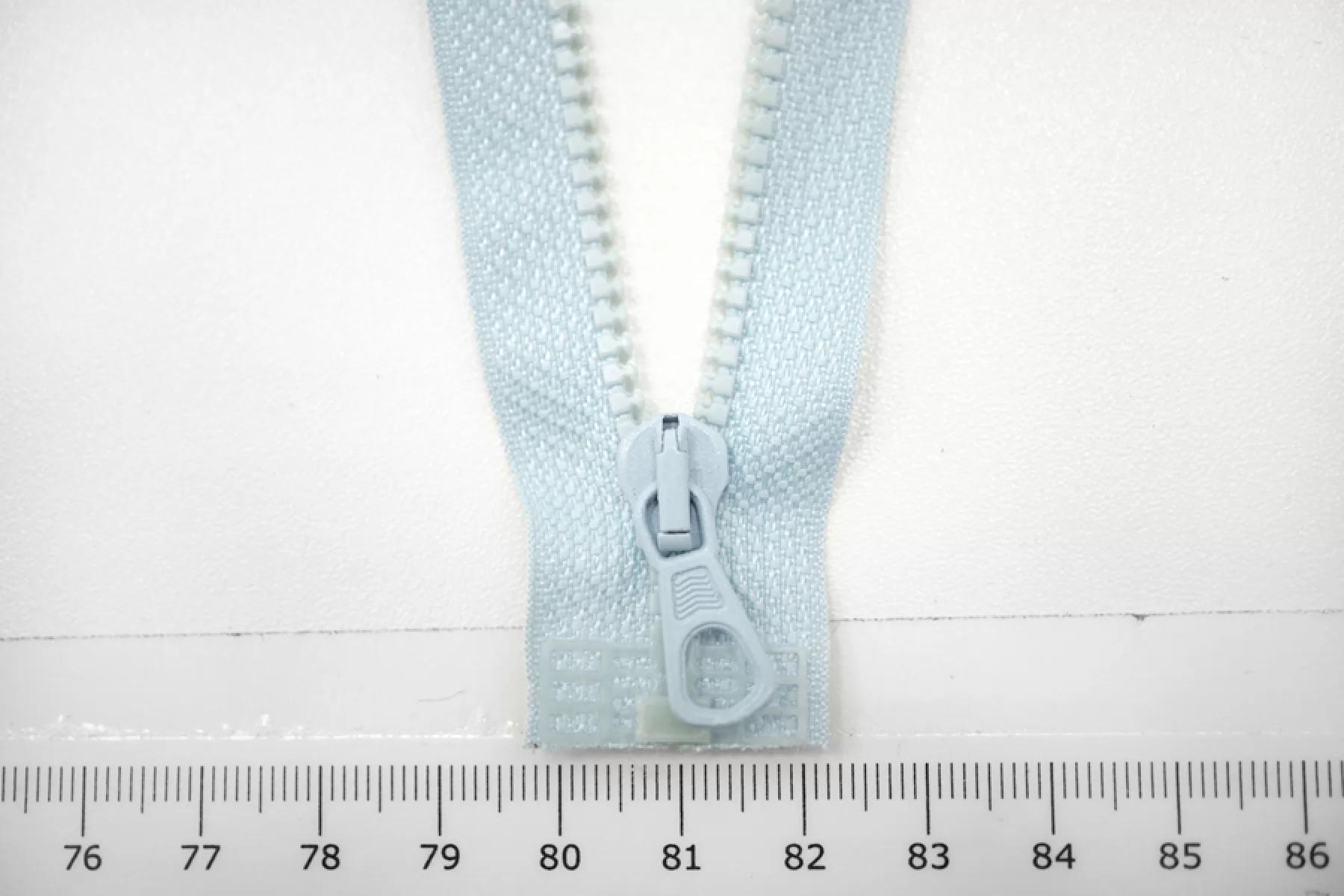 Молния тракторная пластиковая от "Lampo" однозамковая, разъёмная, голубого цвета. Длина 54 см.