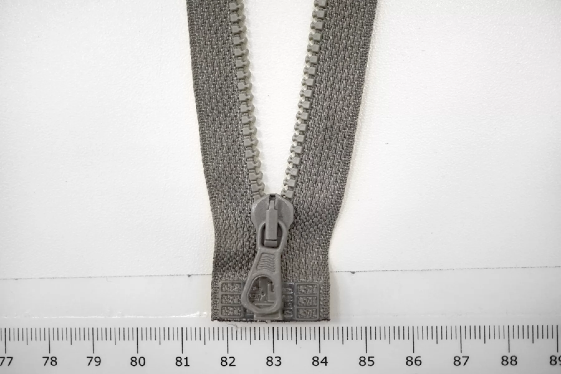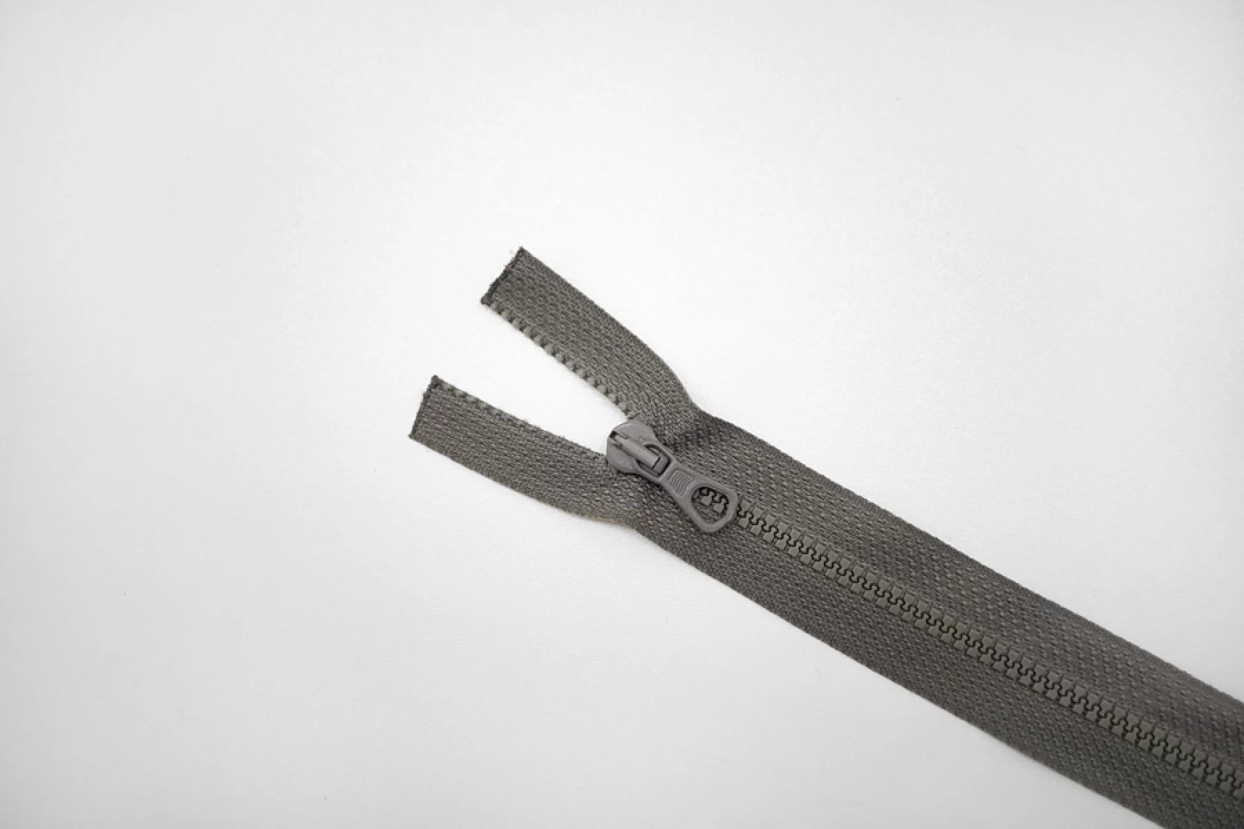 Молния тракторная пластиковая от "Lampo" однозамковая, разъёмная, серого цвета. Длина 49 см.