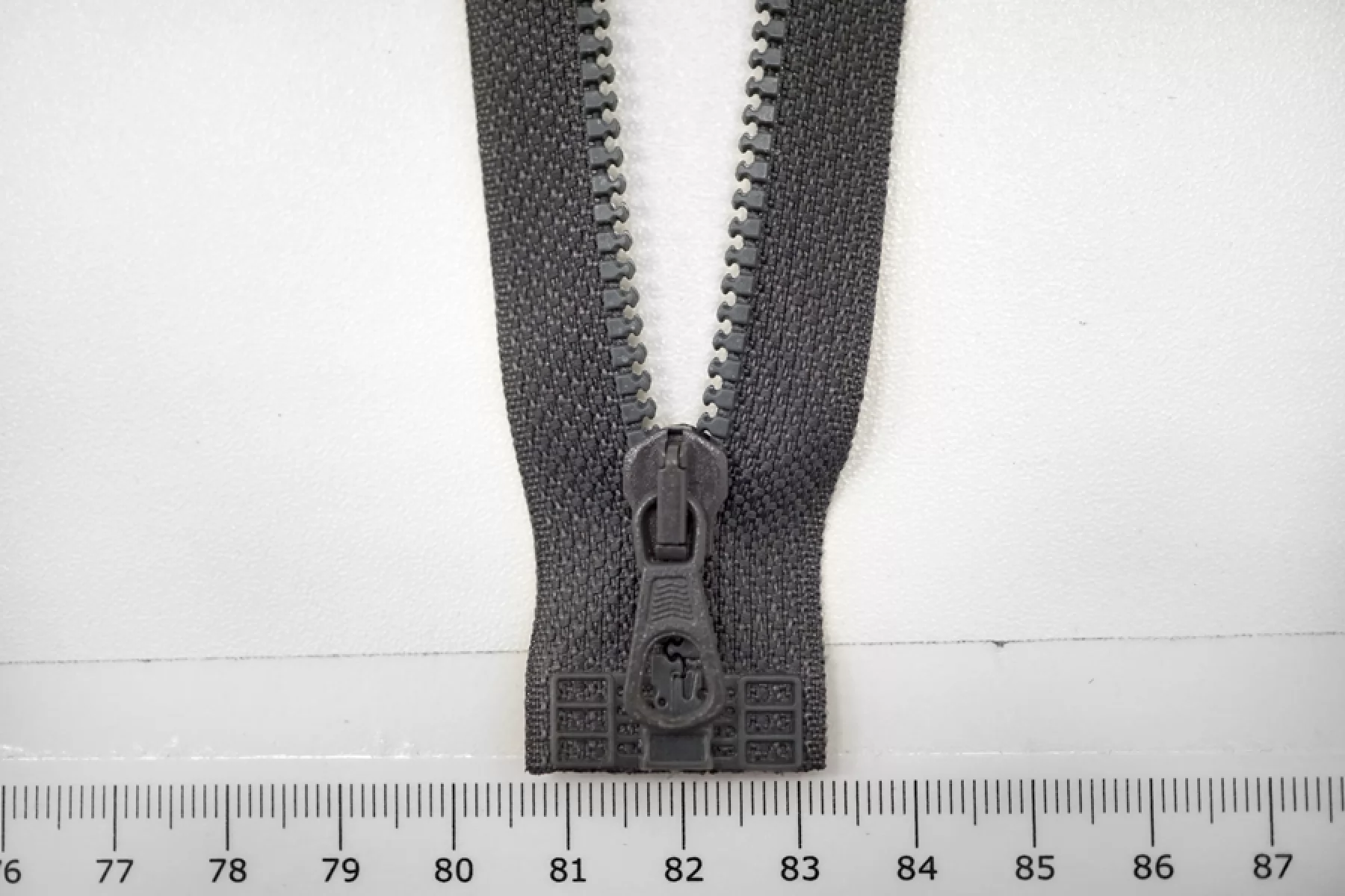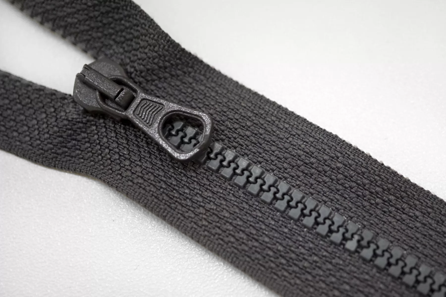 Молния тракторная пластиковая от "Lampo" однозамковая, разъёмная, темно-серого цвета. Длина 62 см.