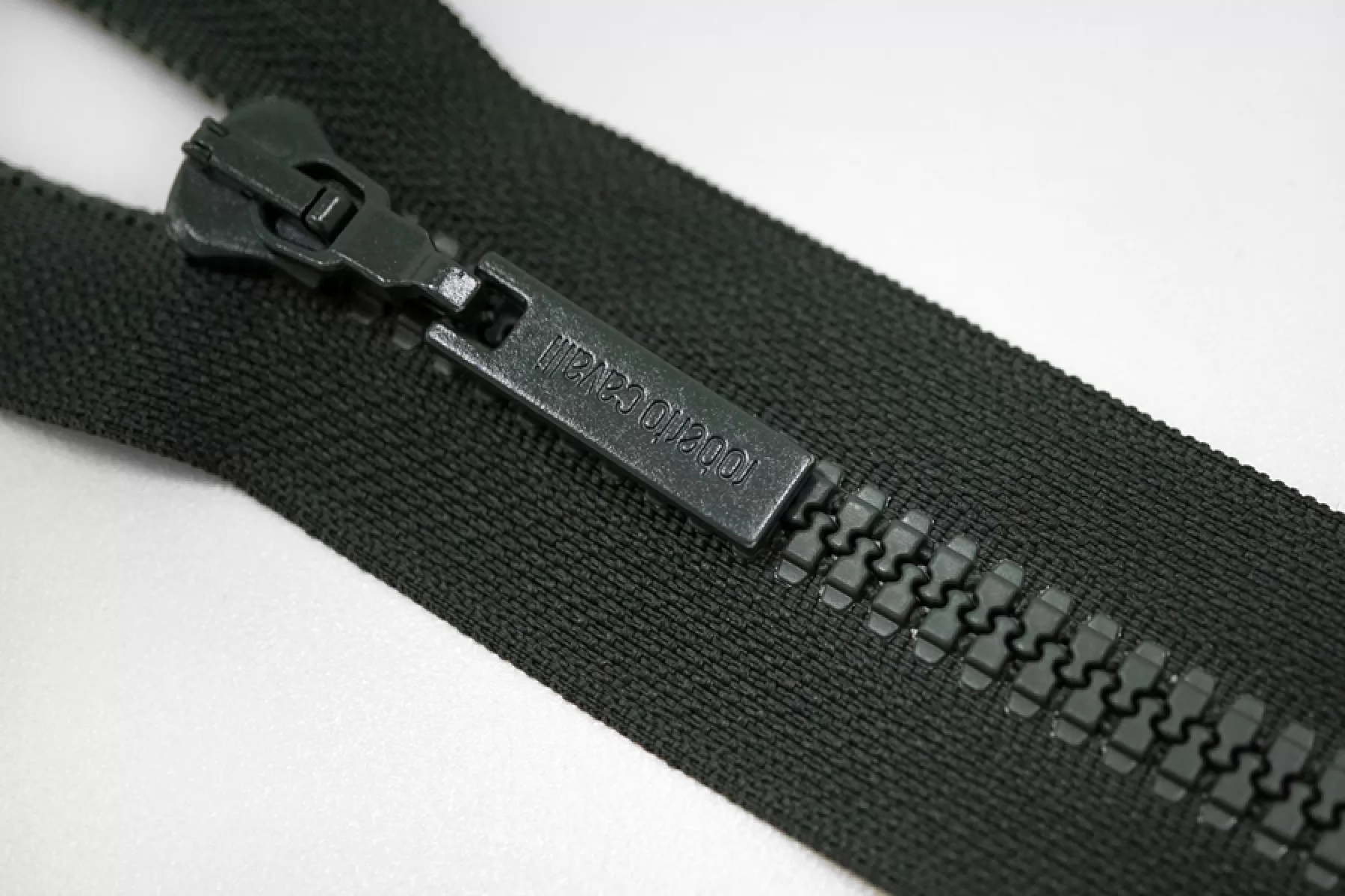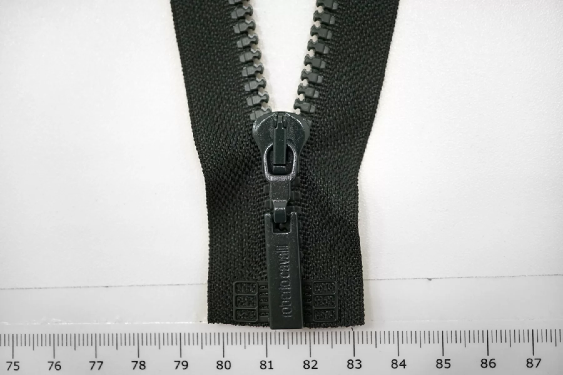 Молния тракторная пластиковая от "Lampo" & "Roberto Cavalli однозамковая, разъёмная, серо-зеленого цвета. Длина 58 см.