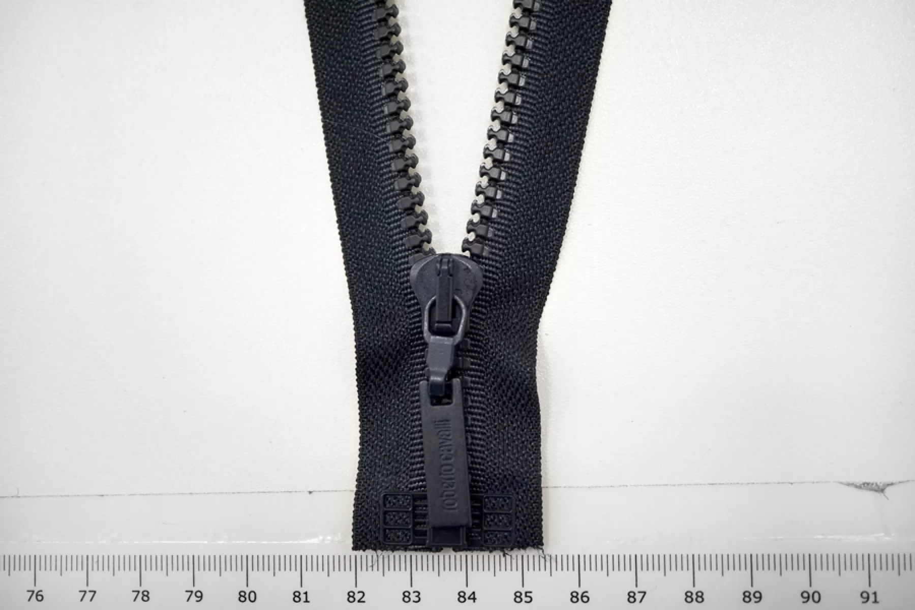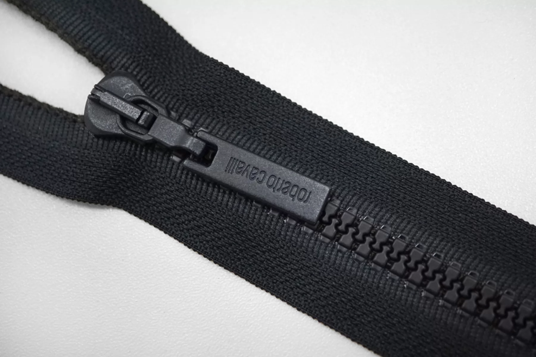 Молния тракторная пластиковая от "Lampo" & "Roberto Cavalli" однозамковая, разъёмная, темно-синего цвета. Длина 29 см.