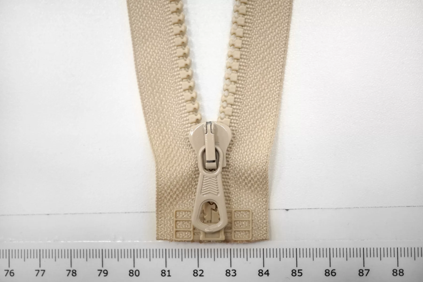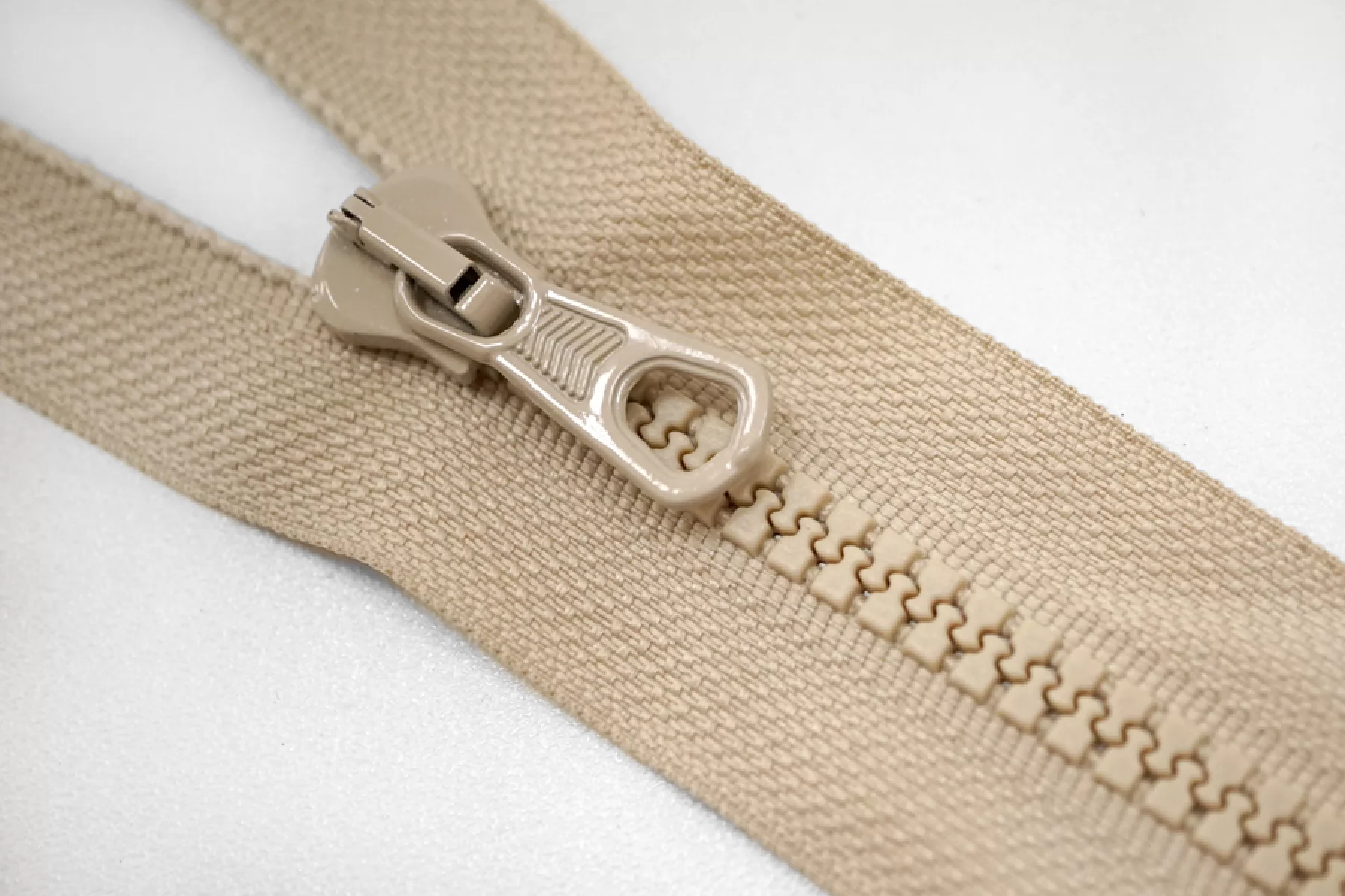 Молния тракторная пластиковая от "Lampo" разъёмная, однозамковая, бежевого цвета. Длина 43 см.